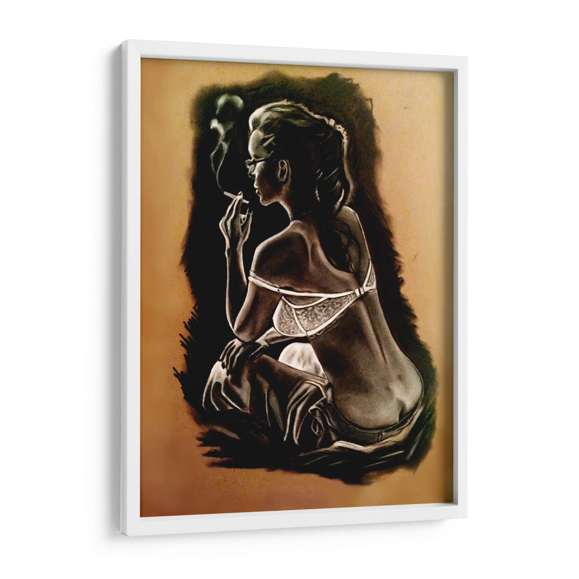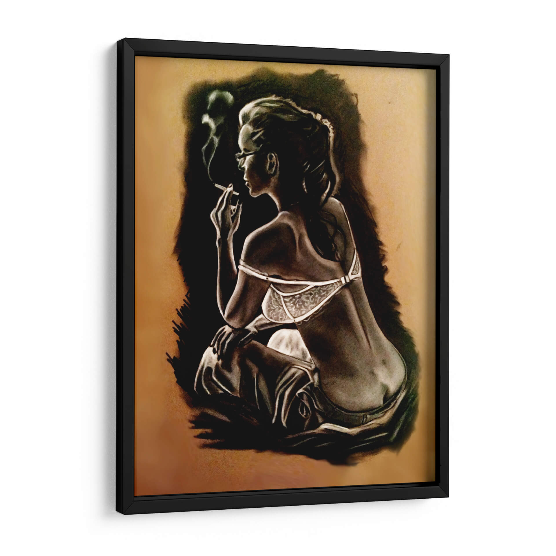 Sumérgete en la atmósfera íntima y cautivadora de "Smoking", una obra de arte contemporáneo que captura un momento de profunda introspección. Este cuadro decorativo presenta a una mujer en un instante de aparente soledad, envuelta en el suave humo de un cigarrillo. La paleta de colores, dominada por tonos tierra y contrastes de luz y sombra, crea una sensación de calidez y misterio. La detallada representación de la figura femenina, con su pose relajada y su mirada perdida, evoca una profunda conexión emocional y una narrativa sutil. El estilo artístico, que fusiona elementos realistas con un toque de dramatismo, hace de esta pieza un punto focal intrigante para cualquier espacio. Ideal para salones modernos, estudios o dormitorios que busquen añadir un toque de sofisticación y profundidad. "Smoking" no es solo una imagen, es una invitación a la reflexión y a la contemplación del arte como espejo del alma humana. Añade este cuadro decorativo a tu colección y transforma tu hogar en una galería personal de emociones y belleza. Una pieza que invita a la conversación y al disfrute estético.