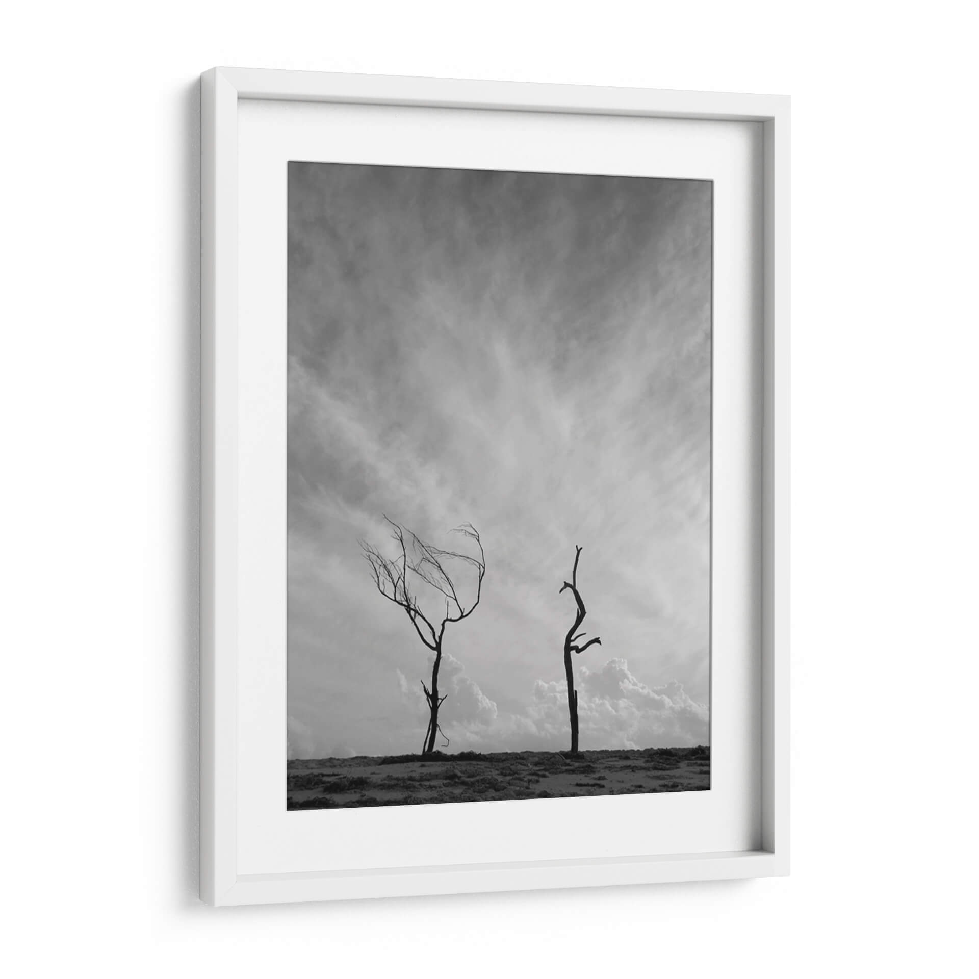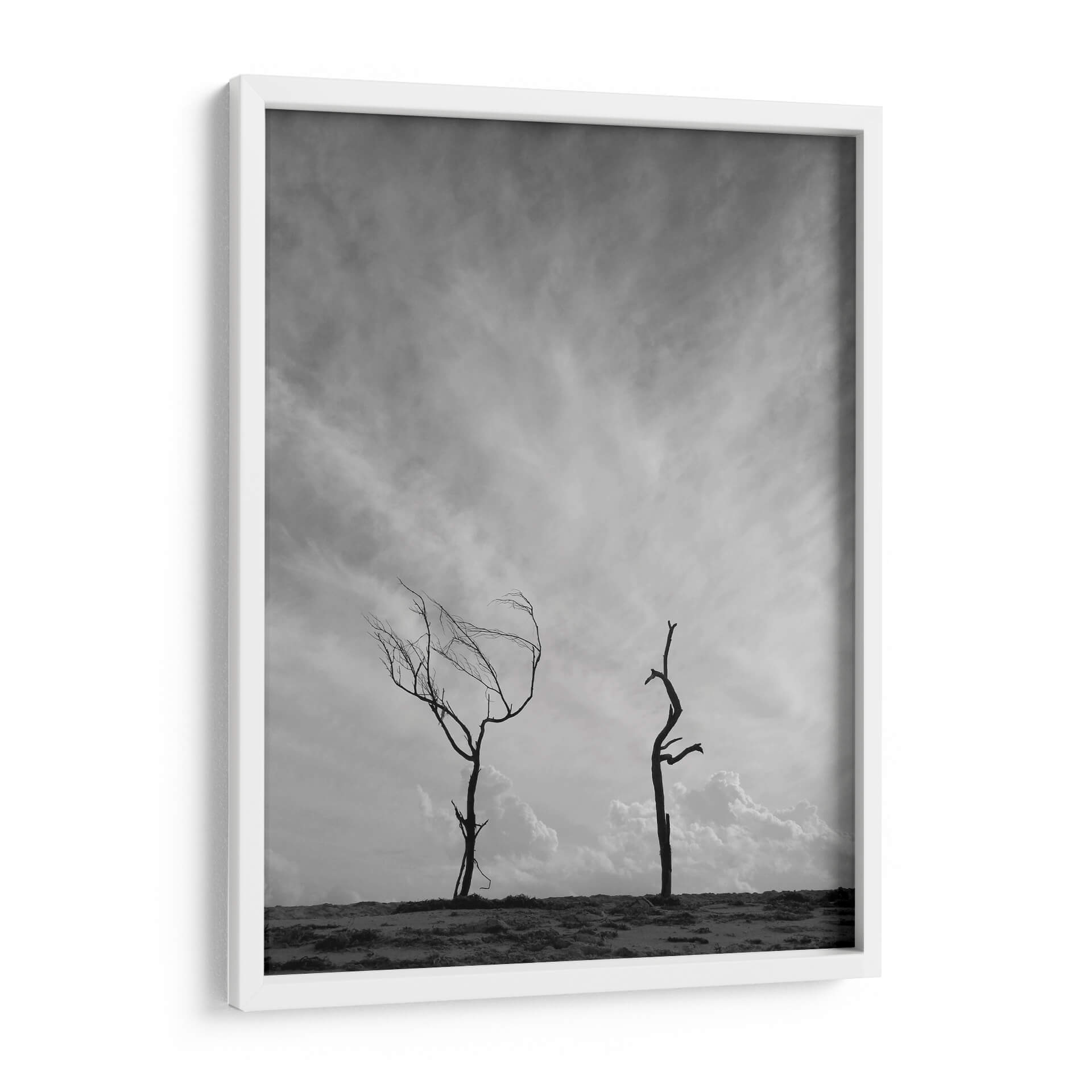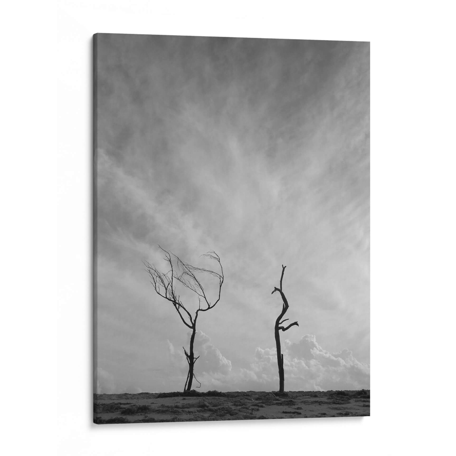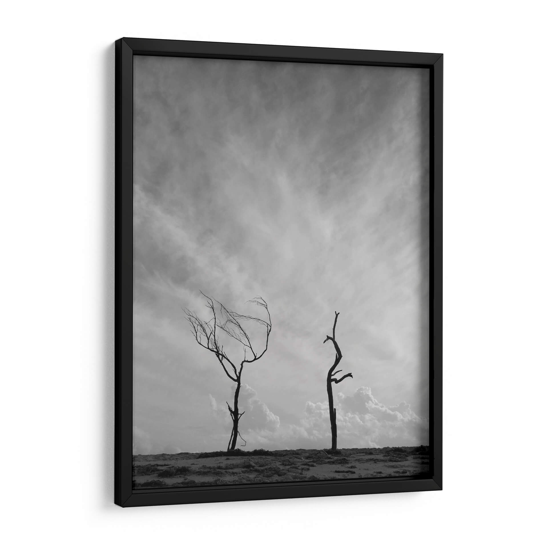 Sumérgete en la quietud y la introspección con "Soledad", una obra maestra del artista Hugo Segura. Este cuadro decorativo en blanco y negro captura la esencia de la desolación y la fortaleza a través de la imagen de dos árboles secos erguidos sobre un terreno árido, bajo un cielo cargado de nubes texturizadas. La paleta monocromática resalta la crudeza de la escena, creando una atmósfera de profunda reflexión y calma melancólica. La composición minimalista, con los árboles como protagonistas solitarios contra la inmensidad del cielo, invita a la contemplación y al diálogo interno. "Soledad" es más que una simple decoración de pared; es una invitación a conectar con las emociones más profundas, ideal para espacios que buscan un toque de serenidad y profundidad, como un estudio, una sala de estar íntima o un dormitorio. Transforma tu hogar en un santuario personal con este lienzo evocador que resonará con aquellos que aprecian la belleza sutil y la potencia de la simplicidad en el arte contemporáneo. Añade una pieza que inspire paz y permita la introspección diaria.