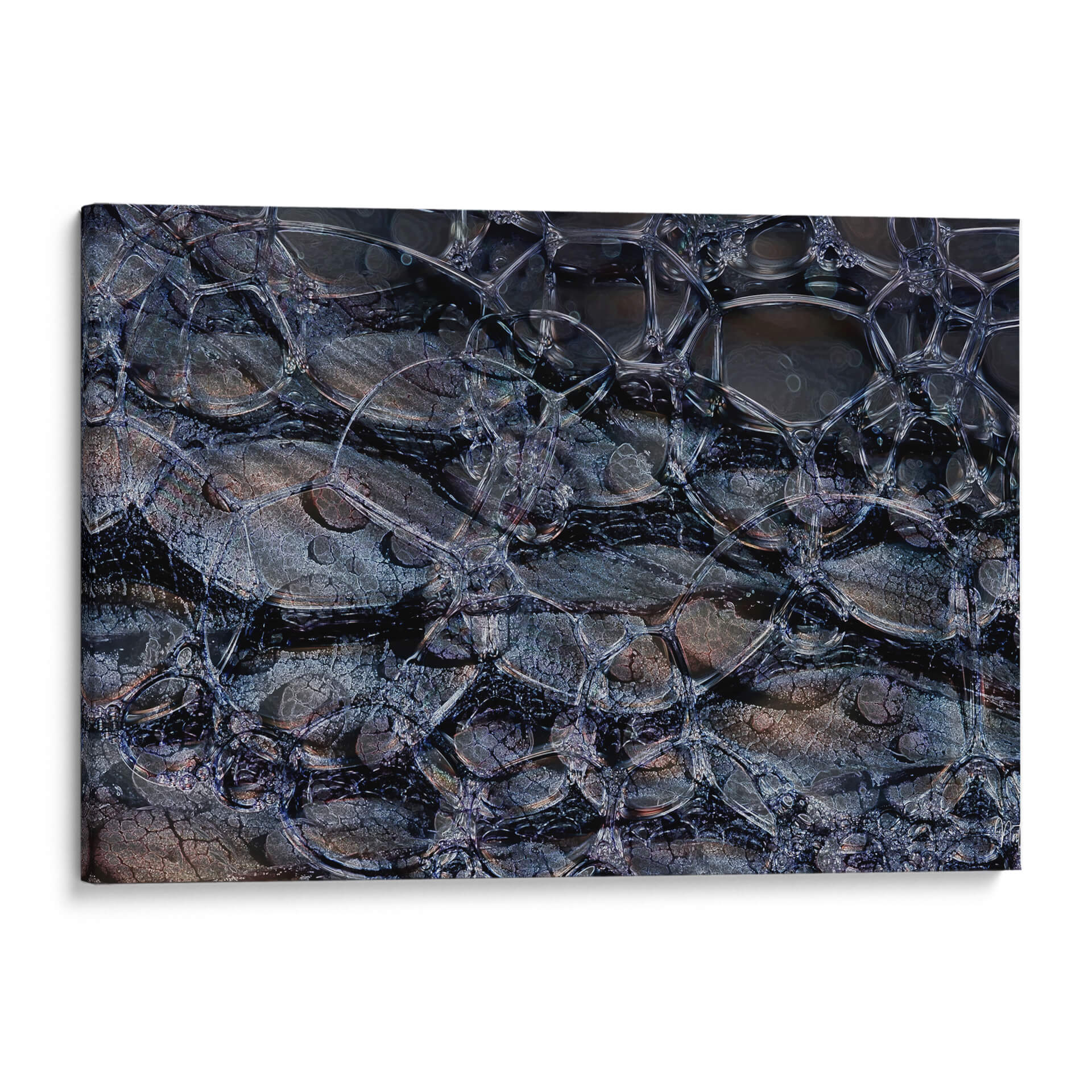 Sumérgete en la fascinante composición de "Synthetic", una obra de arte contemporáneo de Nathalie E Langner que evoca la complejidad y la belleza de las formas orgánicas. Este cuadro decorativo presenta una intrincada red de burbujas o células interconectadas, capturadas con un detalle excepcional. Los colores predominantes son tonos oscuros y profundos, como azules y grises, con sutiles toques de marrón y un brillo nacarado que añade profundidad y dinamismo a la pieza. La textura parece rica y estratificada, con elementos que recuerdan a superficies agrietadas o cristalinas, creando un contraste visual cautivador entre lo liso y lo áspero, lo transparente y lo opaco. "Synthetic" transmite una sensación de misterio y exploración microscópica, invitando a la contemplación y al descubrimiento de patrones ocultos. Su estilo abstracto y la atmósfera enigmática la convierten en una elección perfecta para espacios que buscan un toque de sofisticación moderna y un punto focal intrigante. Ideal para salones, estudios o cualquier ambiente que aprecie el arte que desafía la percepción y estimula la imaginación. Este cuadro decorativo es una pieza que, sin duda, generará conversación y admiración, aportando un aire de elegancia contemporánea a tu decoración.