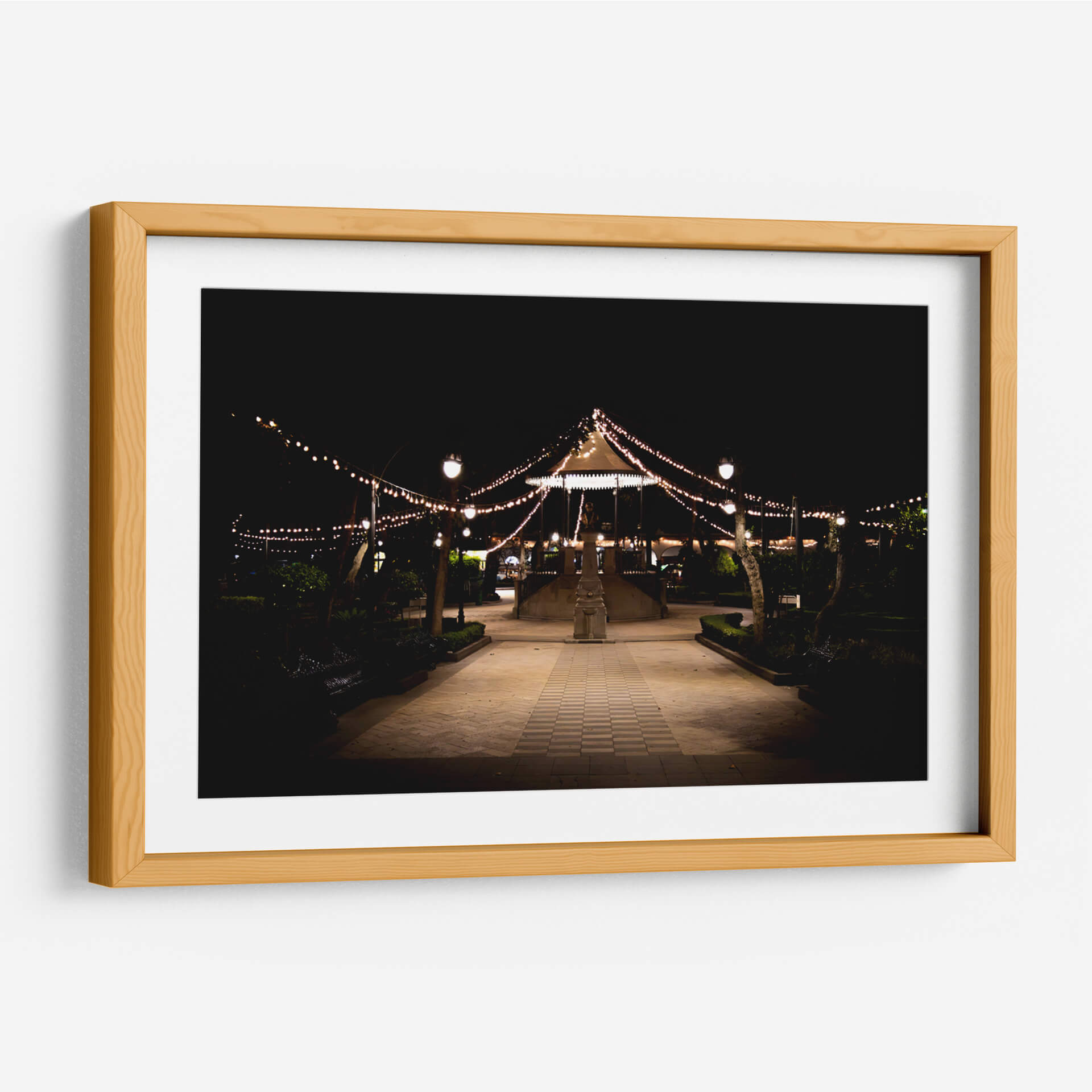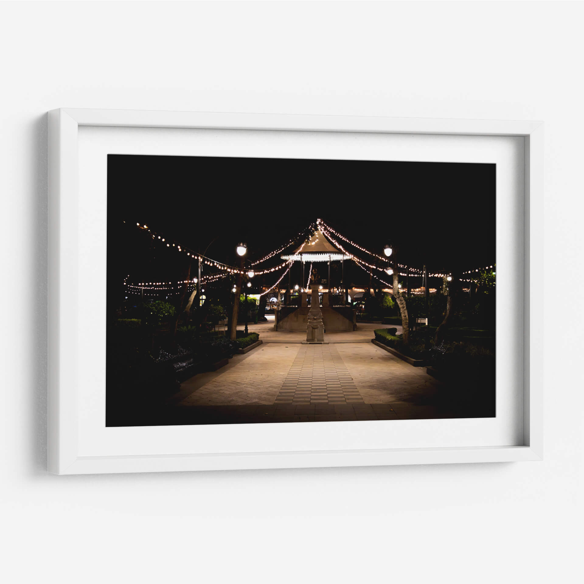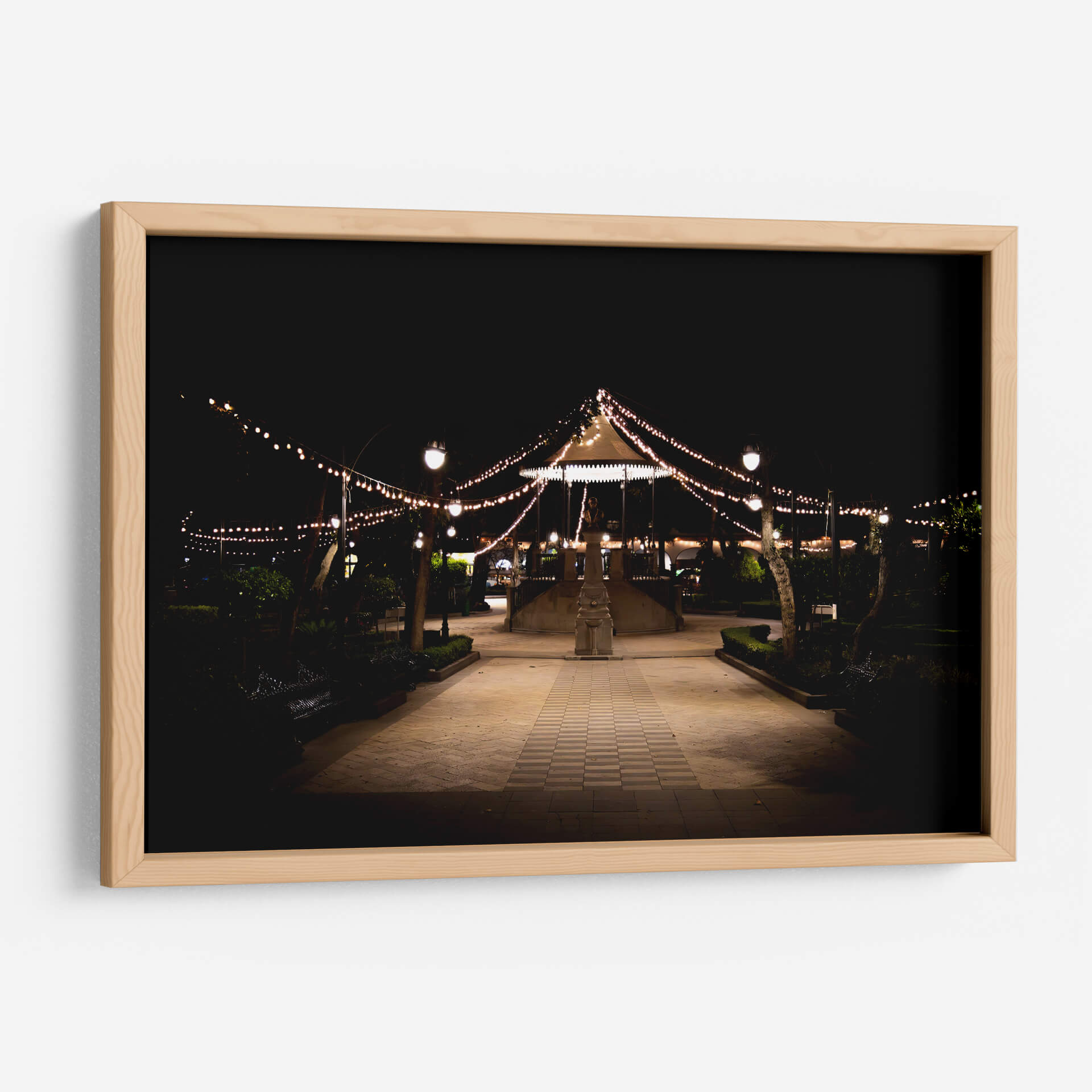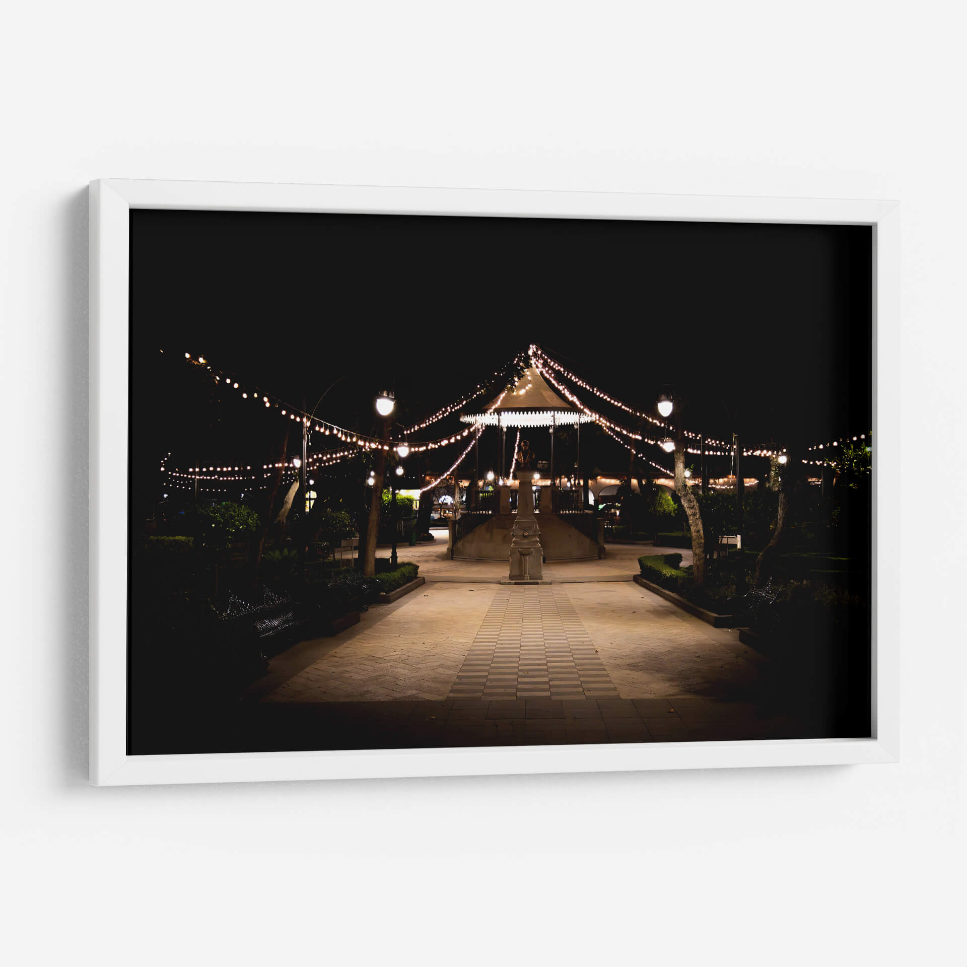 Transporta tus sentidos a una noche mágica con este cuadro decorativo "Tlalpan" de Alan050. La obra captura la serena belleza de un parque iluminado por la noche, con delicadas guirnaldas de luces que bañan el camino y un kiosco central en un ambiente de ensueño. Los tonos oscuros del cielo nocturno contrastan sutilmente con el cálido resplandor de las bombillas, creando una atmósfera íntima y acogedora. La composición, con el sendero que se adentra hacia el kiosco y la arquitectura sutilmente iluminada, invita a la contemplación y al paseo imaginario. Este cuadro es ideal para añadir un toque de elegancia y misterio a tu sala de estar, recibidor o incluso a un espacio de trabajo que busque inspiración. La fotografía, con su enfoque nítido y el juego de luces y sombras, evoca una sensación de paz y nostalgia, transportándote a un momento de tranquilidad urbana. "Tlalpan" es más que una simple decoración; es una invitación a revivir la magia de las noches estrelladas y la quietud de los espacios públicos bellamente iluminados. Perfecta para quienes buscan arte que hable de serenidad y momentos capturados en el tiempo.
