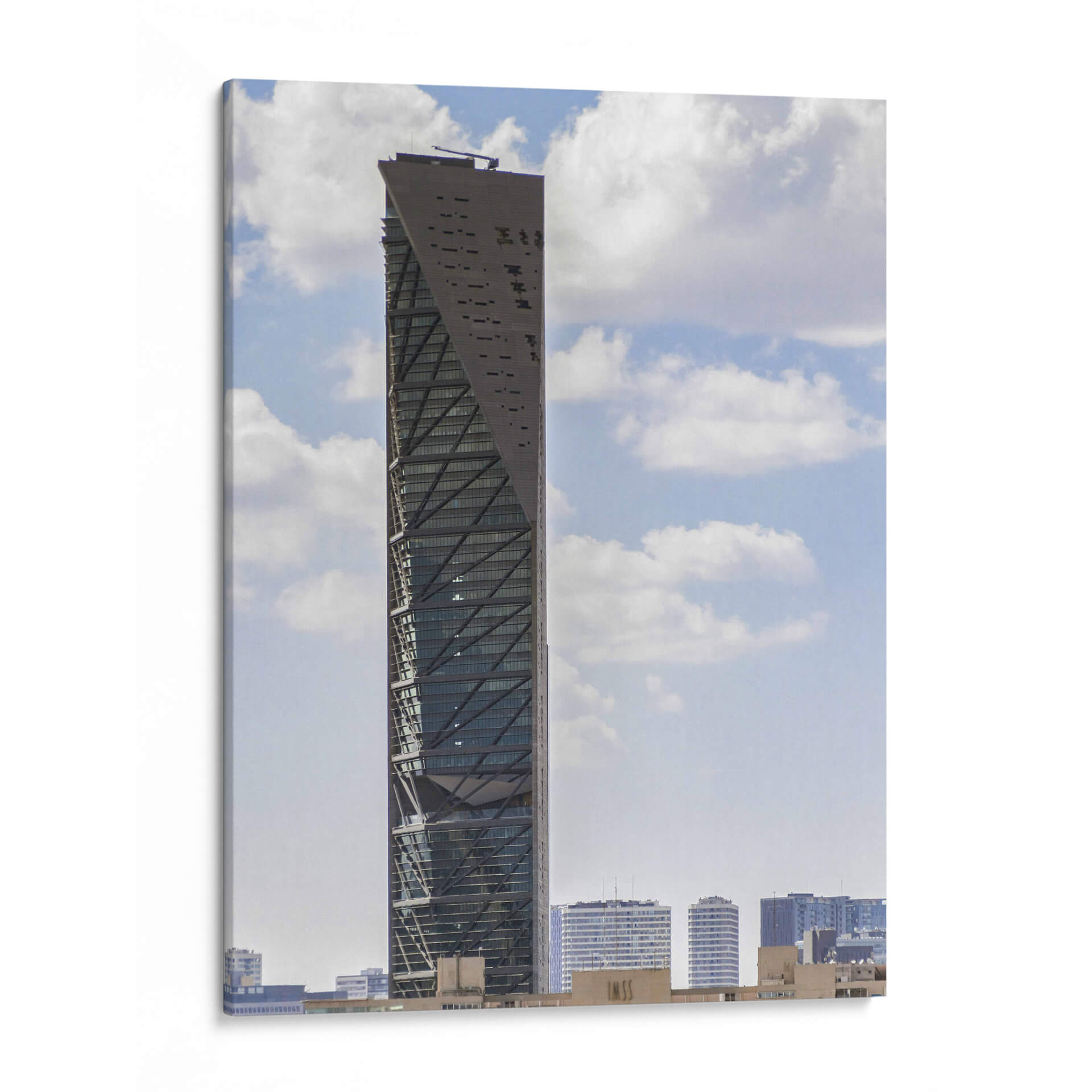 Embellece tu espacio con "Torre Reforma I", una cautivadora obra de Bernardo Miranda que captura la majestuosidad de la arquitectura moderna. Este cuadro decorativo presenta una imponente torre con un diseño vanguardista, envuelta por un cielo azul salpicado de nubes algodonosas. La paleta de colores se centra en tonos grises y metálicos del edificio, contrastando con el azul claro del cielo y el blanco etéreo de las nubes, creando una atmósfera de sofisticación y tranquilidad. La composición vertical y la perspectiva ligeramente angulada de la torre otorgan una sensación de altura y dinamismo, mientras que los detalles arquitectónicos y las líneas limpias sugieren precisión y modernidad. "Torre Reforma I" es ideal para añadir un toque de elegancia urbana y un punto focal de interés a tu sala de estar, estudio u oficina. Su diseño contemporáneo se integra perfectamente en interiores minimalistas, modernos o industriales, aportando una sensación de orden y ambición. Esta pieza es una invitación a contemplar la innovación y la belleza en la ingeniería urbana, convirtiendo tu pared en una ventana a la metrópolis.