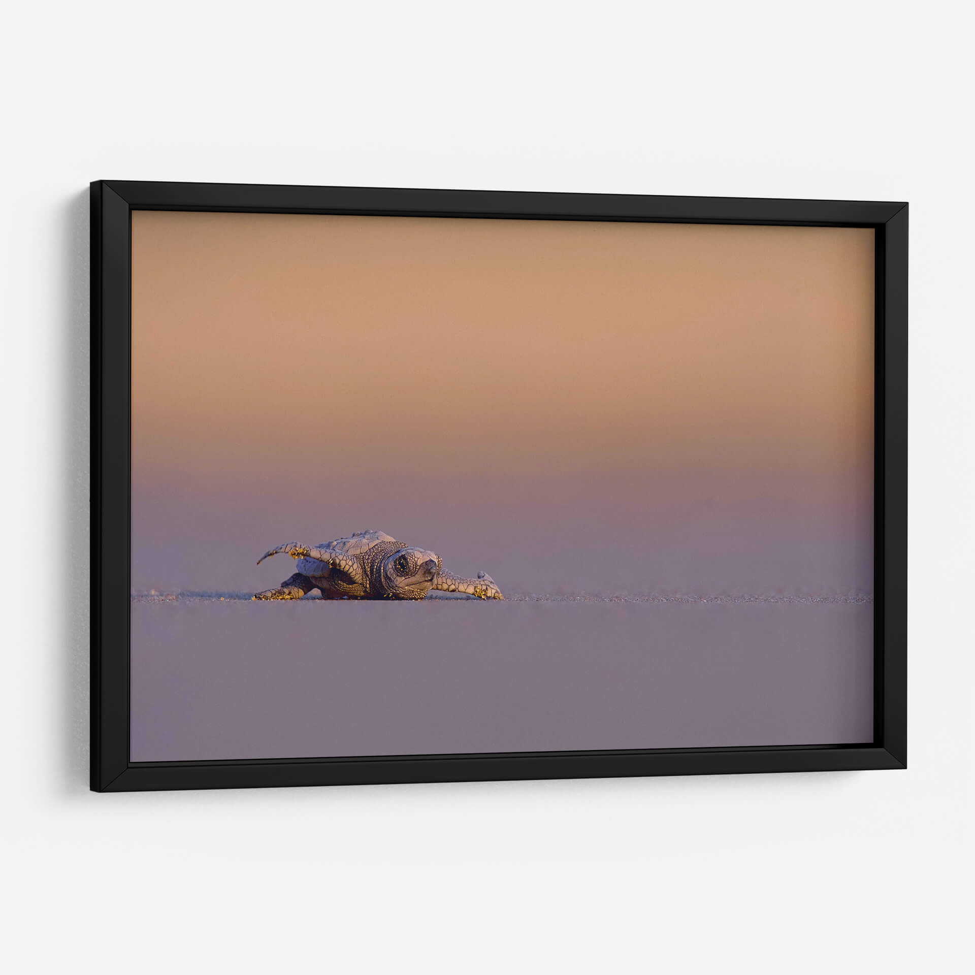 Emb acrcate en un viaje visual con nuestra obra de arte "Tortugita caminando", una pieza que captura la inocencia y la tenacidad de la vida. Este cuadro decorativo presenta una diminuta tortuga en su incipiente camino, un símbolo de perseverancia y de los primeros pasos en la gran aventura de la existencia. La fotografía, capturada con maestría por Cuauhtli.foto, se distingue por su delicada paleta de colores que transita de suaves tonos anaranjados en el horizonte a un sereno lila en el primer plano, creando una atmósfera de calma y esperanza. La composición minimalista, con la tortuguita como protagonista central y un vasto espacio de desenfoque que evoca la inmensidad, potencia el mensaje de resiliencia y futuro. Es la pieza perfecta para infundir serenidad en un dormitorio, añadir un toque inspirador a una oficina o convertirse en el punto focal tierno y conmovedor de cualquier sala de estar. Este cuadro no es solo una decoración, es una invitación a reflexionar sobre el coraje de avanzar, paso a paso, enfrentando el mundo con curiosidad y determinación. Ideal para amantes de la naturaleza y para quienes buscan un recordatorio diario de la belleza de los comienzos.