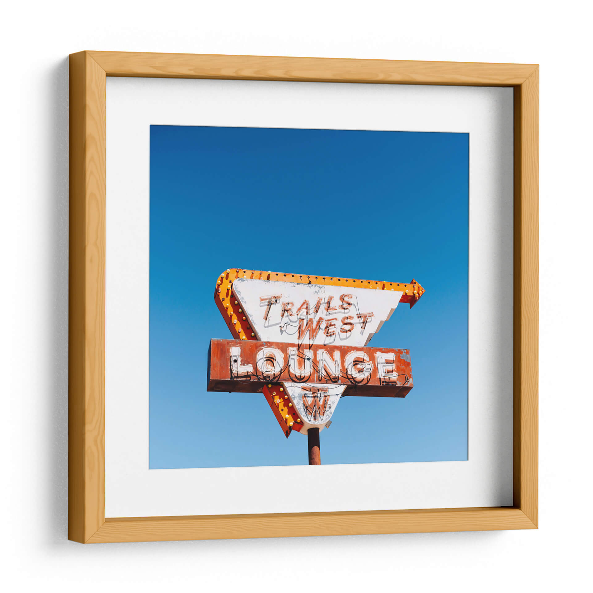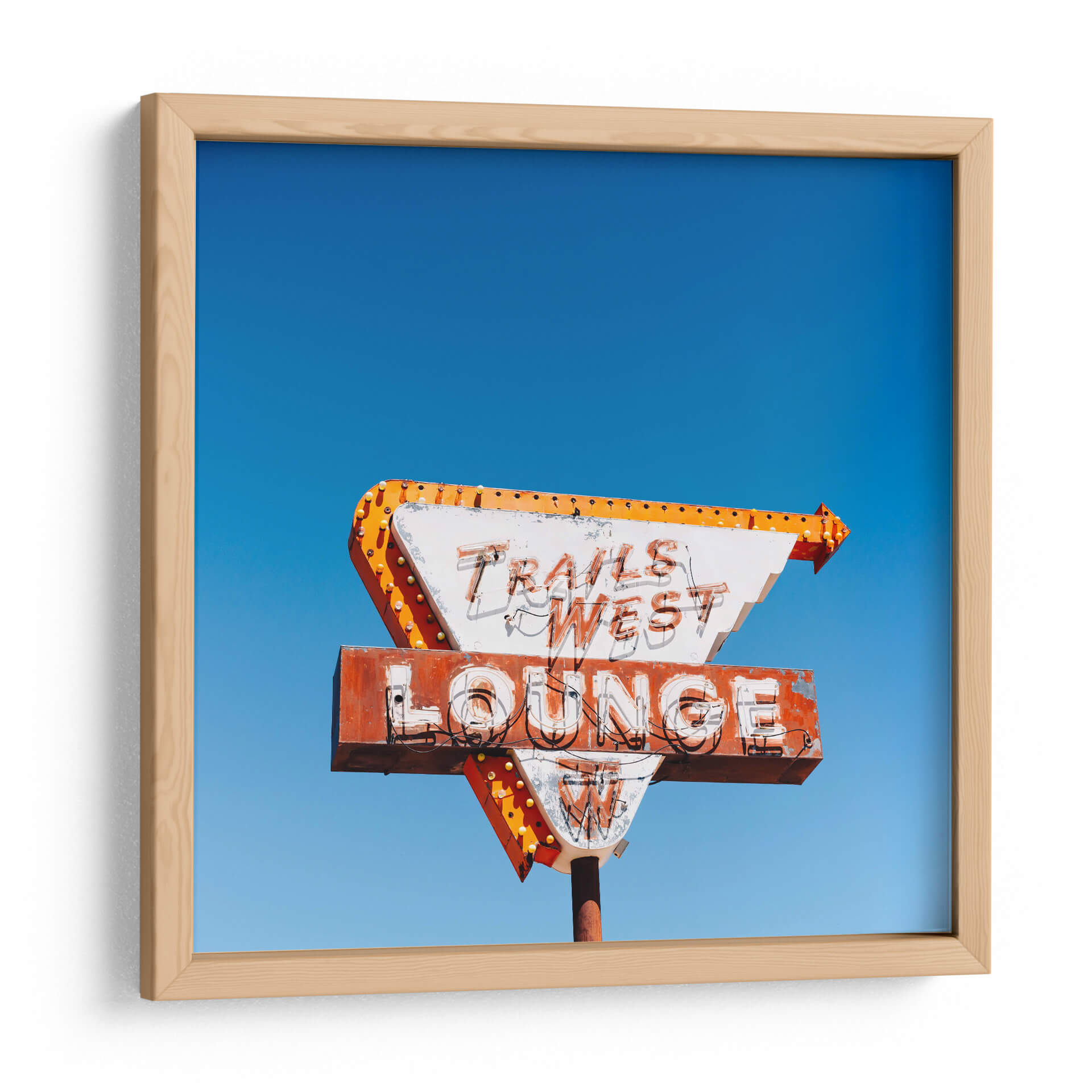 Sumérgete en la nostalgia y el encanto del viejo oeste con el cuadro decorativo "Trails West Lounge" de Bethany Young. Esta obra captura la esencia de un icónico letrero de neón, evocando imágenes de carreteras desiertas y establecimientos con historia. Los colores vibrantes del cielo azul profundo contrastan maravillosamente con los tonos cálidos y desgastados del letrero, creando una atmósfera única que combina lo retro con lo moderno. El letrero, con sus luces de neón parpadeantes y su tipografía audaz, no solo representa un lugar, sino una experiencia, un punto de encuentro para viajeros y soñadores. "Trails West Lounge" es perfecto para añadir un toque de carácter y personalidad a cualquier espacio, ya sea una sala de estar, un bar en casa o una oficina que busque inspiración. Su estilo fotográfico, con un enfoque nítido en el letrero contra el vasto cielo, genera una sensación de libertad y aventura. Este cuadro decorativo es ideal para quienes aprecian la estética vintage, los carteles luminosos y la narrativa visual que transporta a otras épocas y lugares. Incorpore un pedazo de la historia americana en su decoración.