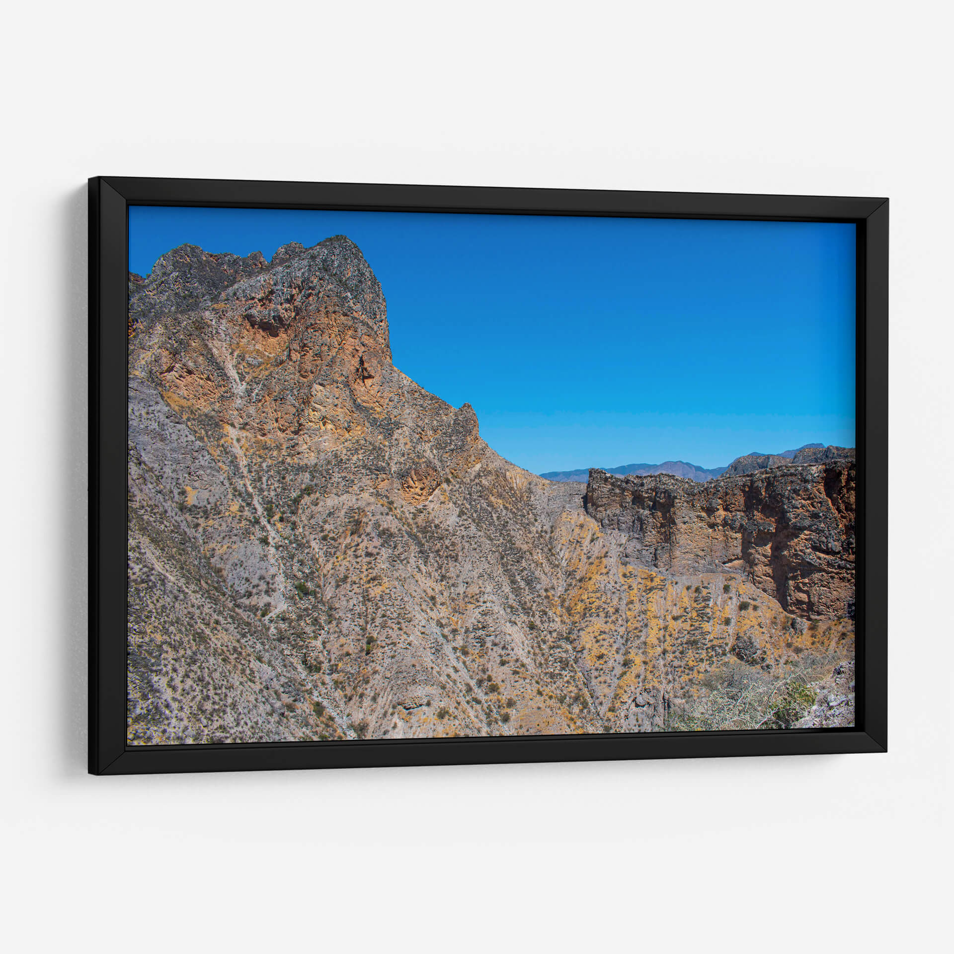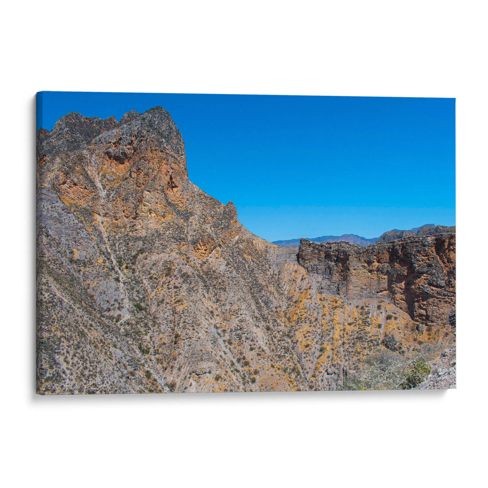 Sumérgete en la majestuosidad de "Travesía al Cañón del Paraíso Querétaro", una obra de arte que captura la grandiosidad y la belleza indómita de un paisaje icónico. Este cuadro decorativo te transporta directamente a las profundidades de un cañón, donde las imponentes formaciones rocosas se alzan bajo un cielo azul vibrante y despejado. Los tonos tierra, ocres y grises doman la composición, entrelazándose con pinceladas que sugieren la textura árida y la geología milenaria de la región. La luz juega un papel crucial, resaltando las sombras y los volúmenes de las paredes rocosas, creando un efecto de profundidad y realismo que invita a la contemplación. La vegetación escasa, pero tenaz, añade toques de vida y resistencia a la escena, recordándonos la fuerza de la naturaleza. Ideal para aquellos que buscan infundir en su hogar u oficina una sensación de aventura, conexión con la tierra y admiración por la belleza natural. Este cuadro es perfecto para salas de estar, estudios o cualquier espacio donde desees evocar una atmósfera de exploración y serenidad. Añade una pieza de arte que celebra la geografía espectacular y el espíritu de descubrimiento.