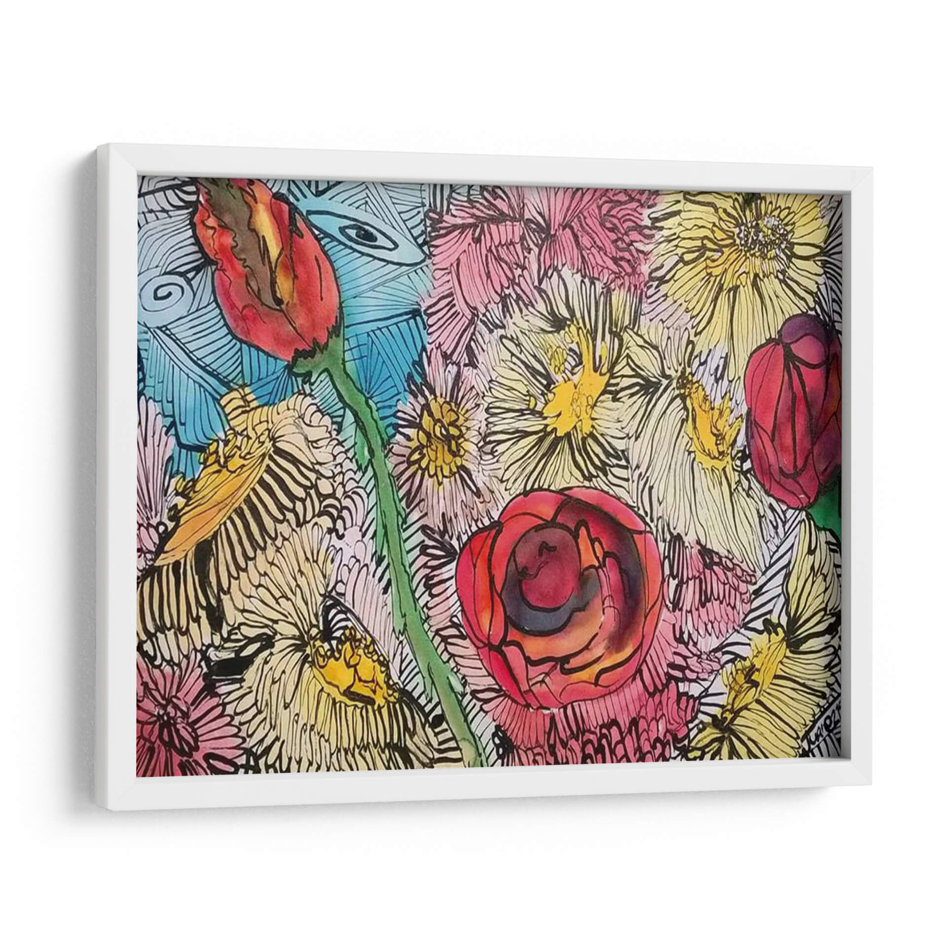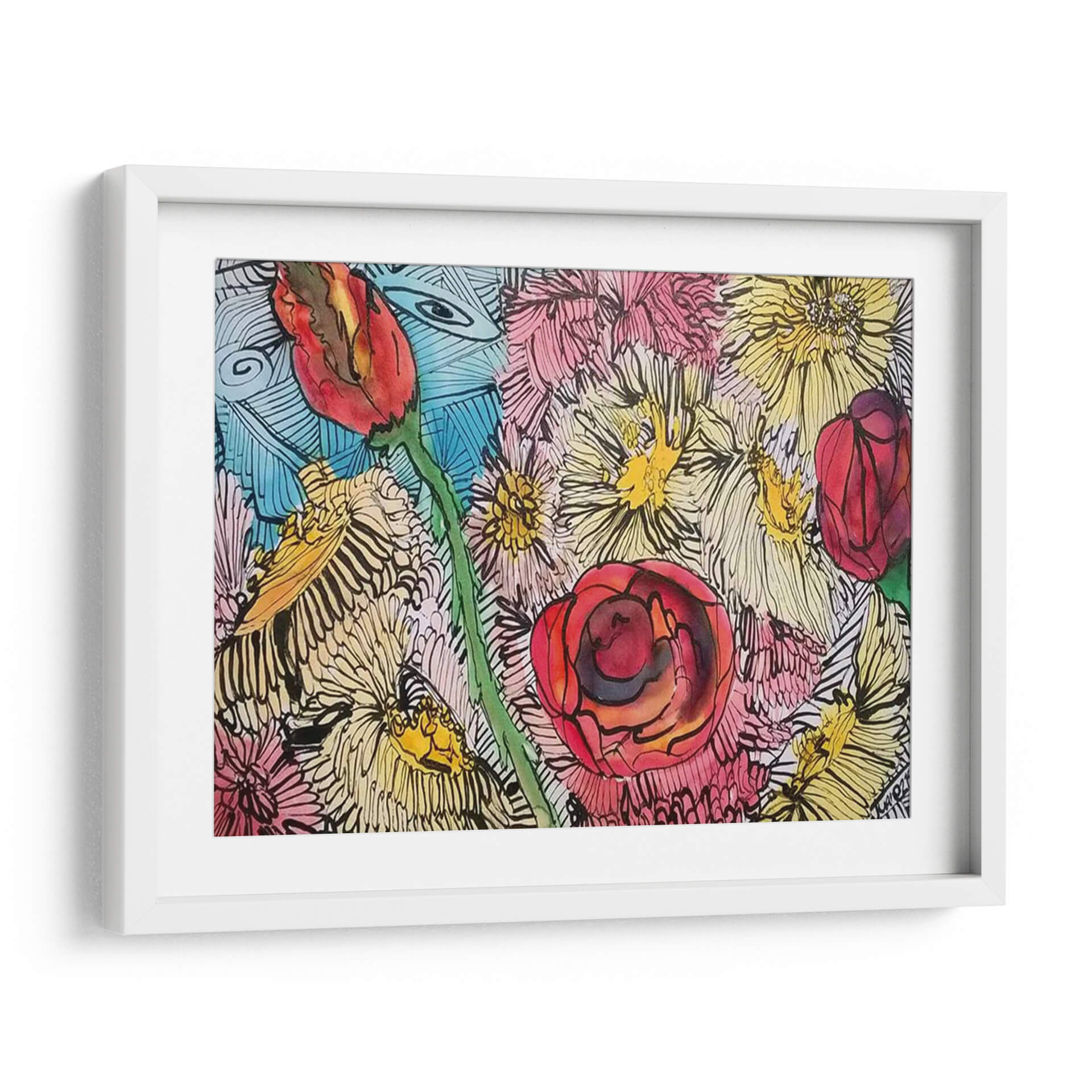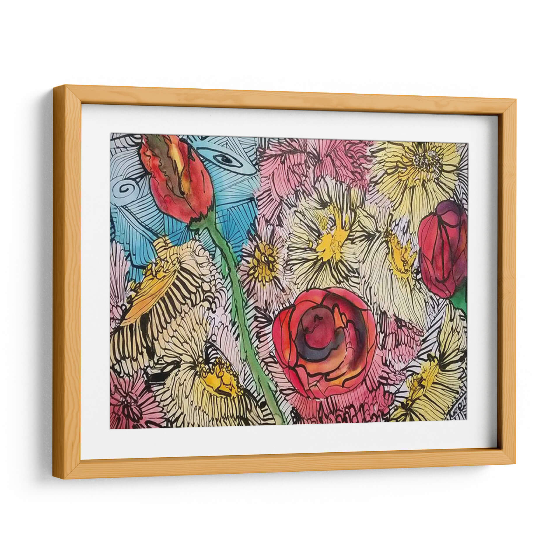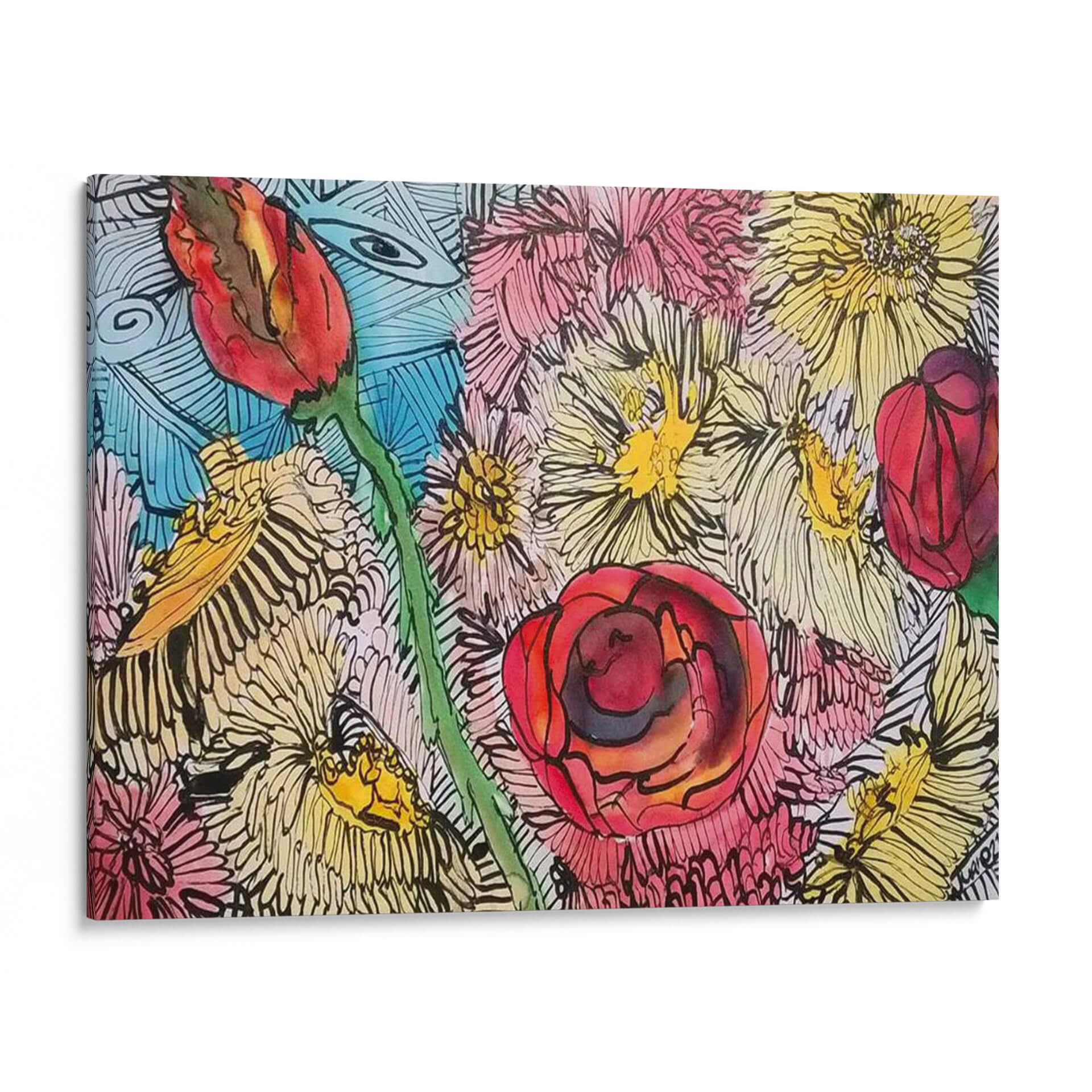 Sumérgete en la vibrante explosión floral de "Trinidades", una obra de arte contemporáneo del artista John Juárez. Este cautivador cuadro decorativo presenta un exuberante tapiz de flores en diversas etapas de floración, desde capullos tentadores hasta pétalos completamente desplegados. La paleta de colores es una celebración de la vida, con rojos intensos, amarillos luminosos, rosas delicados y un vibrante azul que sirve de telón de fondo, creando un contraste dinámico y lleno de energía. El estilo de Juárez combina trazos audaces y detallados con la fluidez de la acuarela, añadiendo profundidad y textura a la composición. Cada flor parece danzar sobre el lienzo, con un juego de líneas negras que definen y dan movimiento a las formas orgánicas. La atmósfera que emana es de alegría desbordante, vitalidad y una conexión profunda con la naturaleza, ideal para infundir optimismo y color en cualquier espacio. Este cuadro es perfecto para convertirse en el punto focal de una sala de estar moderna, añadir un toque de frescura a un comedor o insuflar vida a una oficina. "Trinidades" no es solo una decoración, es una experiencia visual que invita a la contemplación y al disfrute de la belleza efímera de las flores.