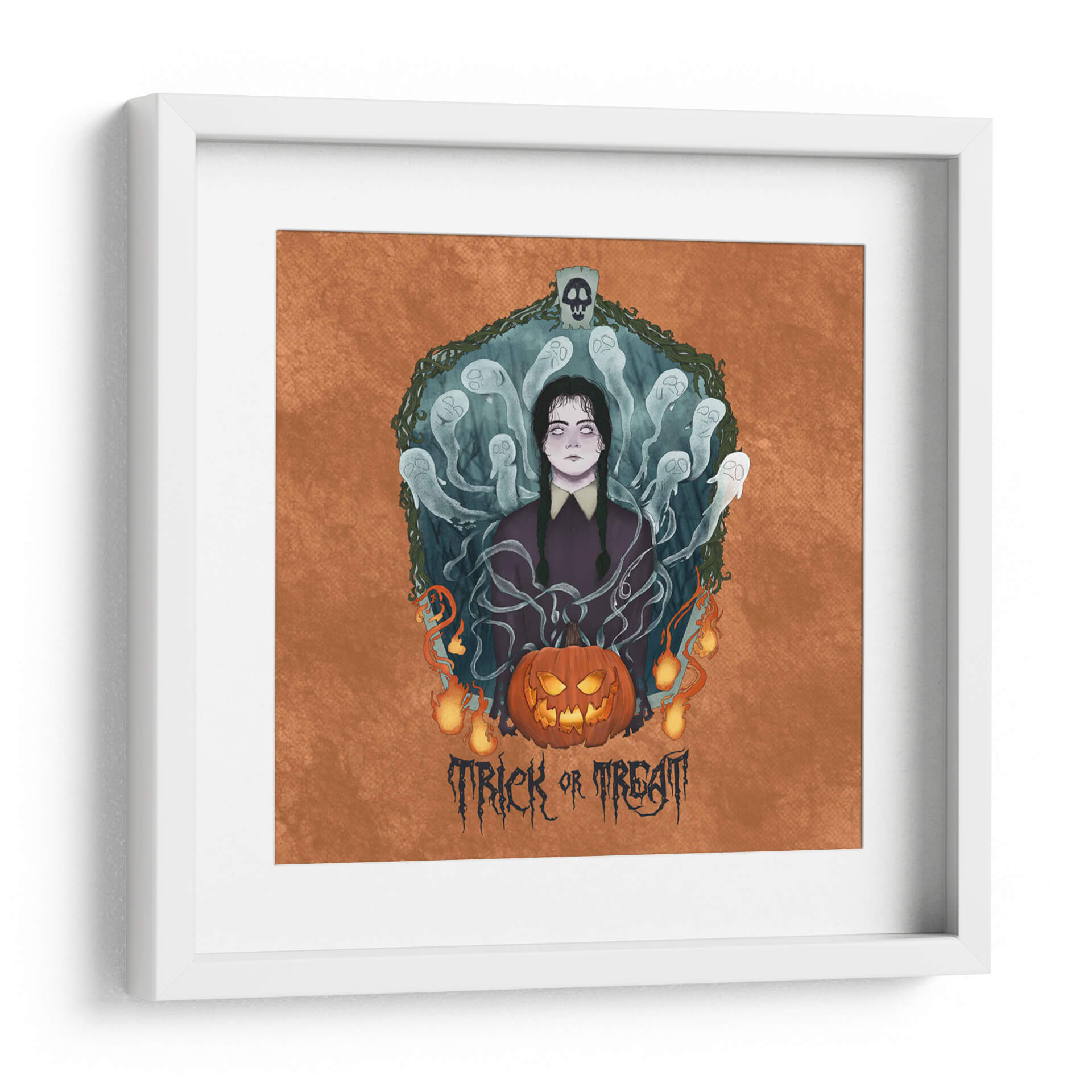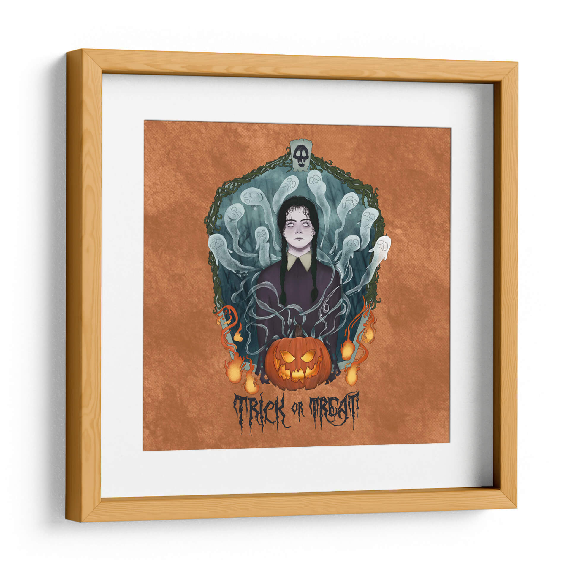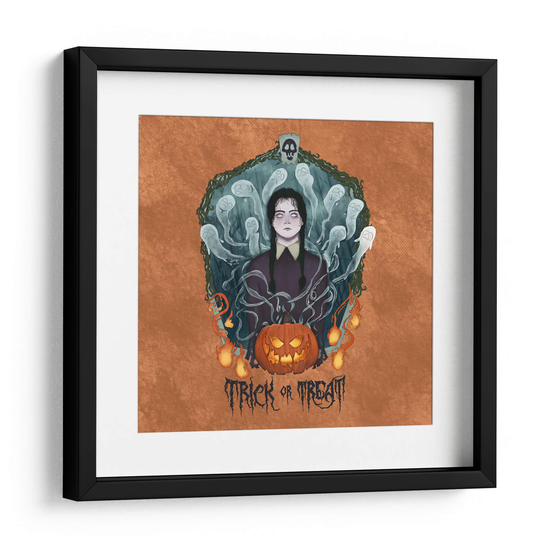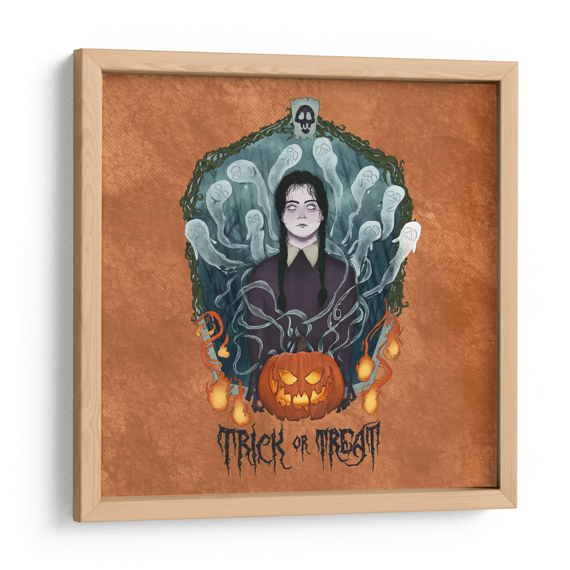 Sumérgete en la atmósfera gótica y misteriosa de "Truco o Trato Espeluznante", una obra de arte digital que captura la esencia de Halloween con un toque contemporáneo. Esta pieza presenta a una figura central con trenzas oscuras y una mirada penetrante, rodeada de fantasmas etéreos y llamas danzantes que evocan la dualidad entre lo lúdico y lo inquietante de la festividad. La paleta de colores, dominada por tonos tierra, grises fríos y toques de naranja y amarillo en las llamas, crea un ambiente sombrío pero cautivador. El estilo ilustrativo, con contornos definidos y un sombreado sutil, aporta profundidad y carácter a cada elemento, desde la calabaza tallada hasta las enredaderas que enmarcan la escena. Este cuadro decorativo es ideal para quienes buscan añadir un elemento dramático y temático a sus espacios, ya sea en una sala de estar, un estudio o incluso una habitación temática de Halloween. "Truco o Trato Espeluznante" no es solo una decoración, es una declaración de estilo que invita a la reflexión sobre lo macabro y lo fascinante, convirtiéndose en un punto focal que despertará conversaciones y admiración.