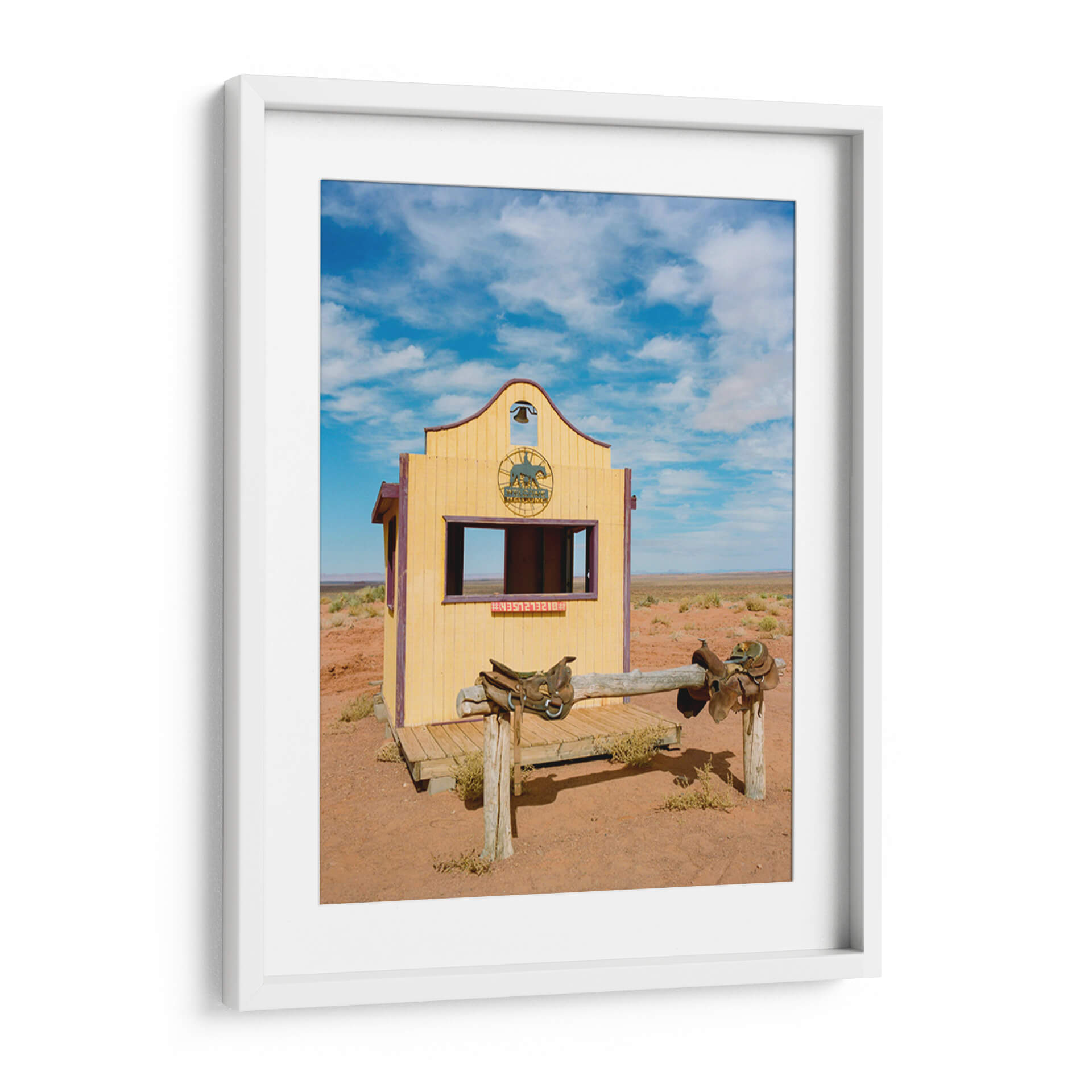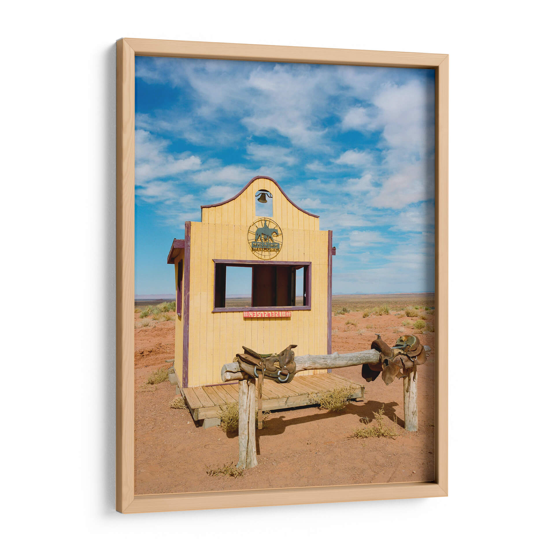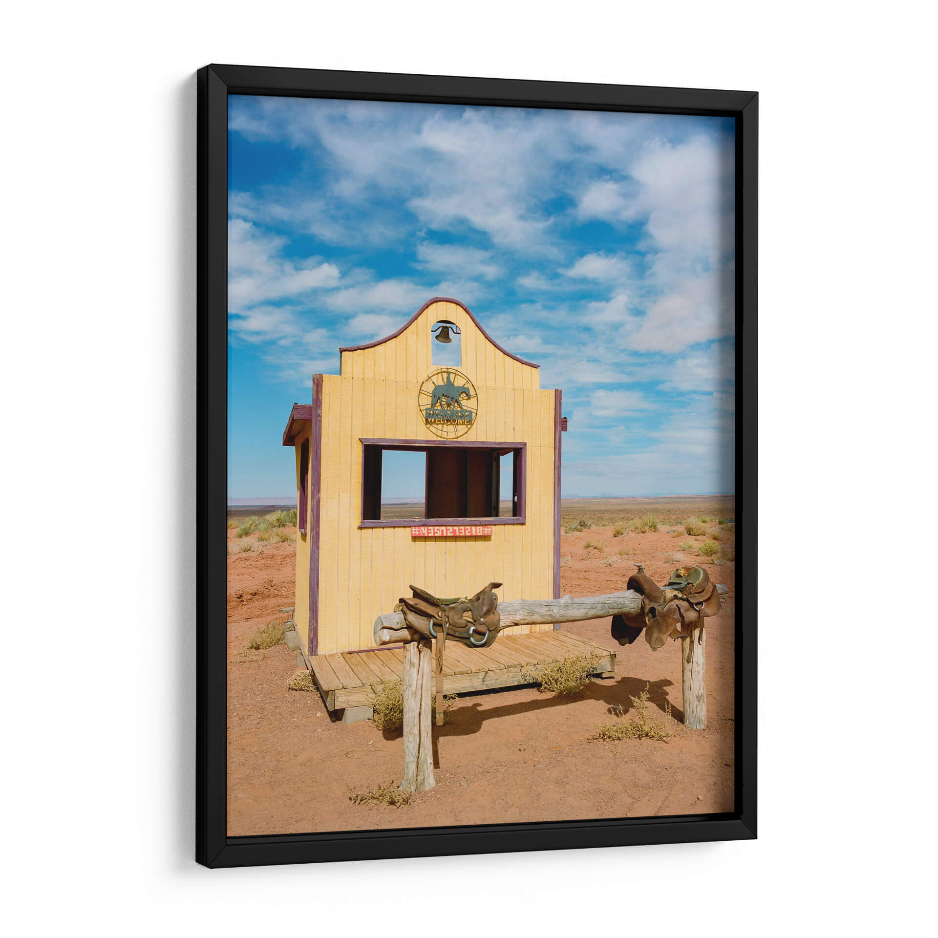 Transporta tu hogar a una época de pioneros y paisajes desérticos con el cuadro decorativo "Valle de los monumentos XX" de Bethany Young. Esta cautivadora obra de arte captura la esencia de la arquitectura rústica del oeste americano, con una caseta amarilla vibrante y desgastada que se alza solitaria bajo un cielo azul intenso salpicado de nubes algodonosas. La escena evoca una sensación de nostalgia y aventura, perfecta para aquellos que aprecian la estética del viejo oeste y la belleza austera de los paisajes áridos. Los detalles de las sillas de montar de cuero, apoyadas en un poste de madera rústico, añaden un toque auténtico y evocan historias de vaqueros y caminos polvorientos. La paleta de colores, dominada por el amarillo cálido de la caseta y los tonos tierra del desierto, crea una atmósfera acogedora y a la vez evocadora. Este cuadro decorativo es ideal para añadir carácter a una sala de estar, un estudio o incluso una oficina con temática rústica o inspirada en el suroeste. Su composición equilibrada y su temática única lo convierten en una pieza de conversación que transformará cualquier espacio en un rincón con personalidad y estilo, invitando a la imaginación a vagar por horizontes lejanos y aventuras pasadas. Añade un toque de historia y el espíritu indomable del oeste a tu decoración.