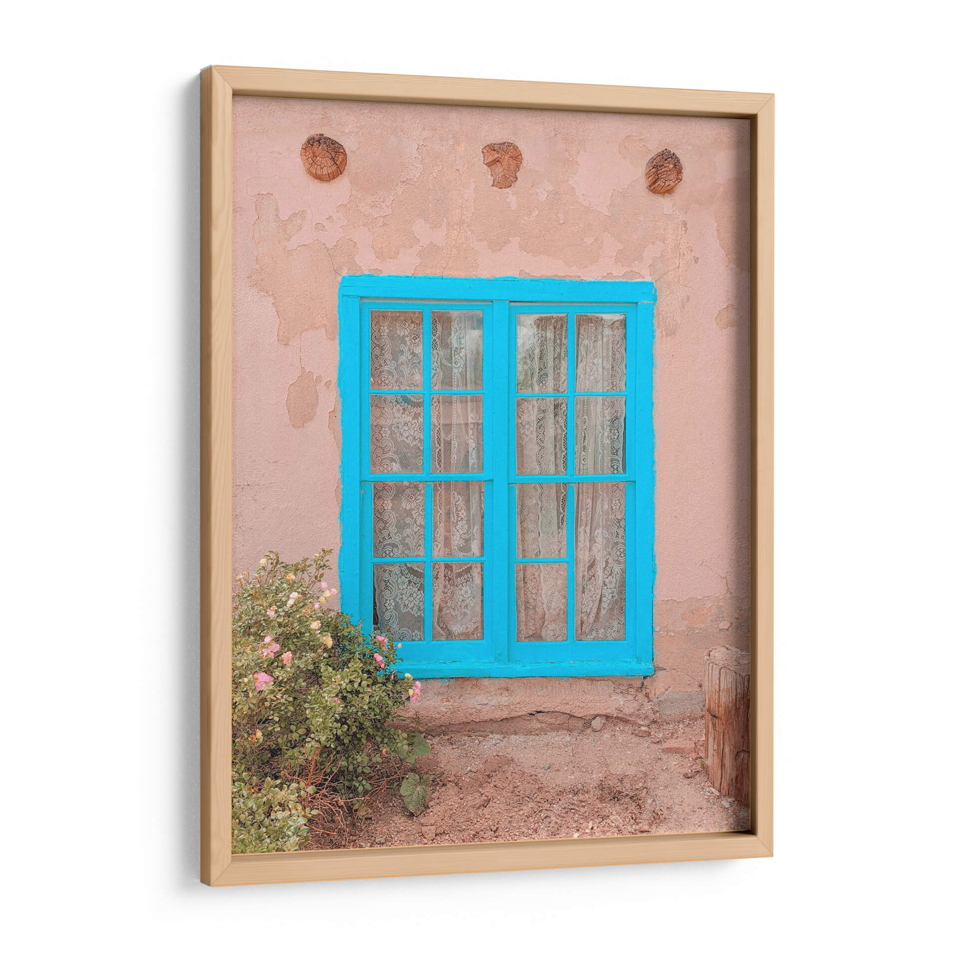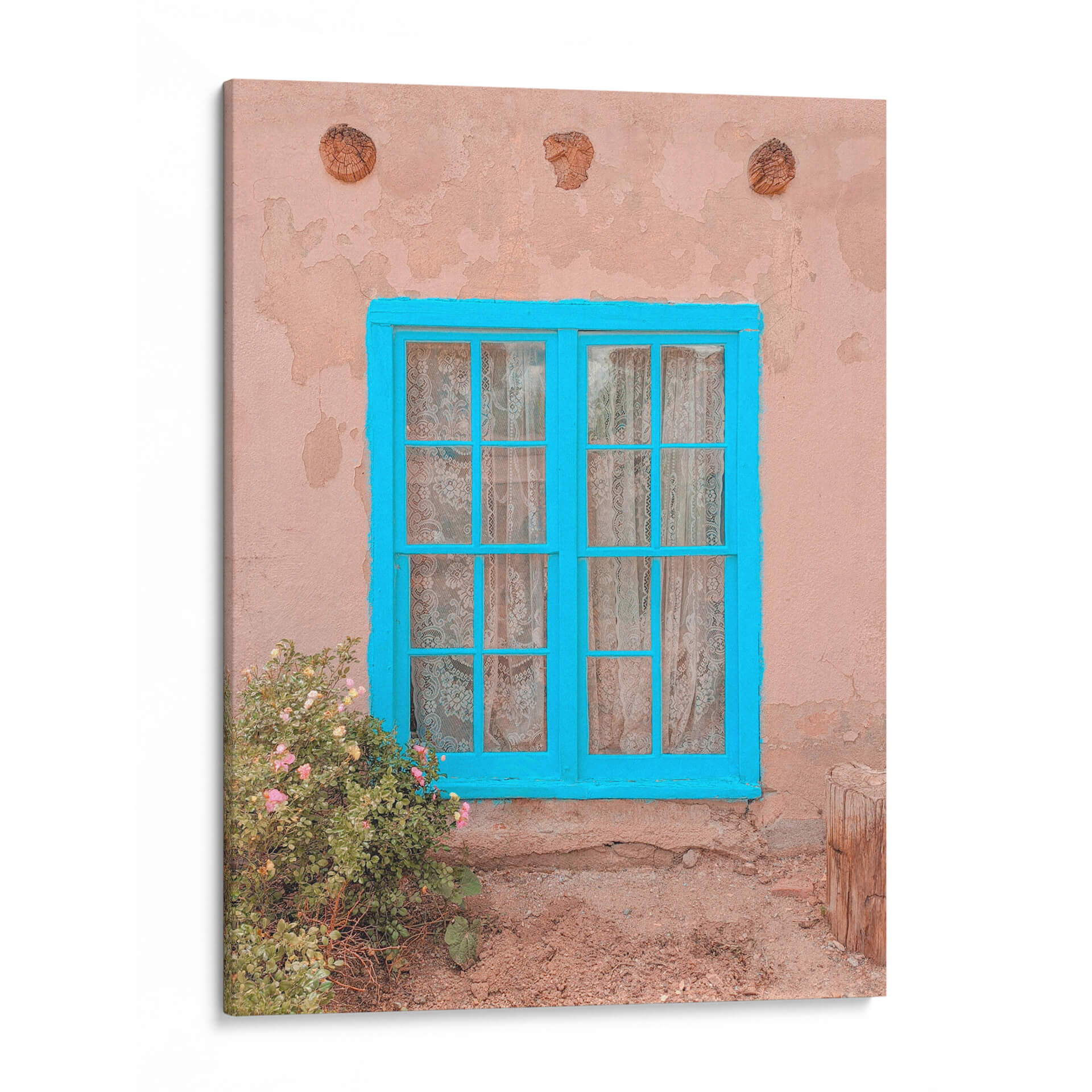 Adéntrate en la serena belleza de "Ventana Turquesa - Taos, Nuevo México", una cautivadora obra de Tom Windeknecht que captura la esencia de la arquitectura del suroeste. Este cuadro decorativo te transporta a un rincón tranquilo, donde una vibrante ventana de color turquesa resalta contra un muro de adobe en tonos tierra. Las delicadas cortinas de encaje que asoman desde el interior añaden un toque de misterio y calidez hogareña, invitando a imaginar las historias que guarda el espacio. Los detalles texturizados del muro y los elementos rústicos como las vigas de madera y la vegetación circundante, con sutiles toques de rosa y amarillo de las flores, crean una atmósfera de autenticidad y paz. La composición, centrada en la ventana, actúa como un portal visual, ofreciendo una perspectiva única y evocadora. Ideal para añadir un toque de color y serenidad a cualquier sala de estar, dormitorio o estudio, esta pieza es perfecta para quienes buscan arte que combine la riqueza cultural con la estética contemporánea. Su paleta de colores, dominada por el contraste entre el turquesa brillante y los cálidos tonos del adobe, la convierte en un punto focal versátil y atractivo para diversos estilos decorativos, desde el bohemio hasta el moderno rústico. Deja que "Ventana Turquesa" infunda tu hogar con la magia del Nuevo México.