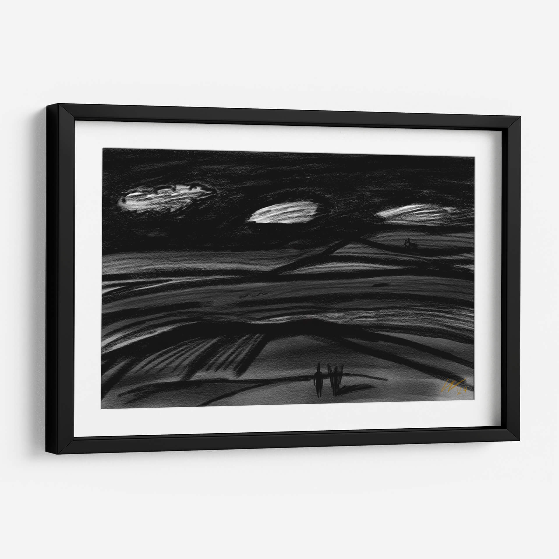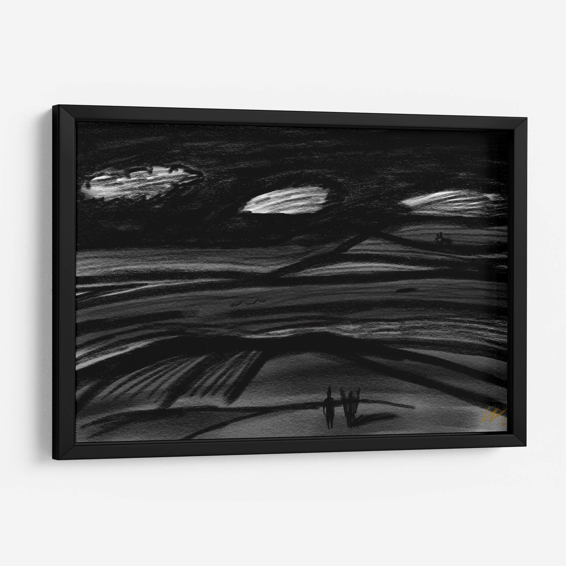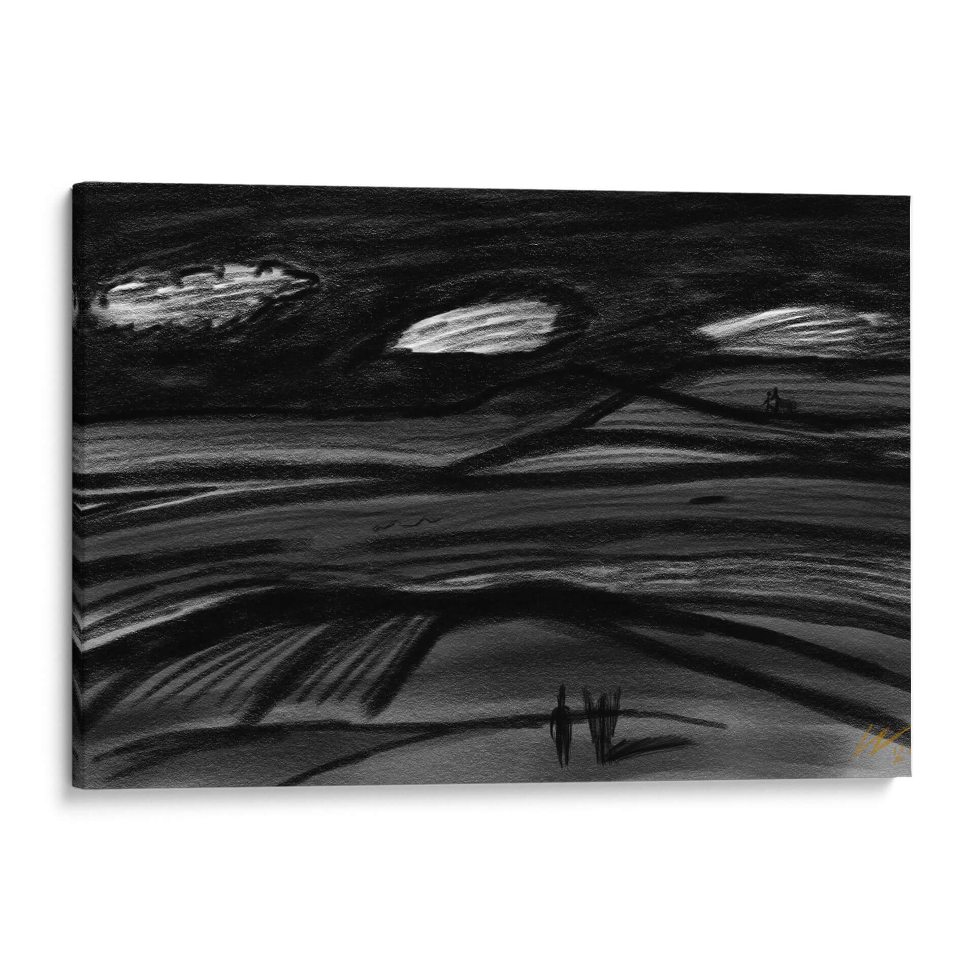 Sumérgete en la atmósfera evocadora de "Viaje por el Destino", una obra de arte contemporáneo que captura la esencia de la travesía y la contemplación. Este cuadro decorativo, con su paleta predominantemente en blanco y negro, evoca una sensación de misterio y reflexión, ideal para espacios que buscan un toque de sofisticación y profundidad. Las pinceladas audaces y el estilo expresionista sugieren un paisaje onírico o una escena abstracta que invita a la interpretación personal. Las líneas onduladas y los contrastes de luz y sombra crean un dinamismo sutil, mientras que las figuras minimalistas en el horizonte añaden un elemento humano, sugiriendo un viaje, ya sea físico o interior. "Viaje por el Destino" es perfecto para salas de estar modernas, oficinas creativas o cualquier rincón que necesite un punto focal que inspire diálogo y serenidad. Su diseño atemporal y su calidad artística lo convierten en una adición valiosa a cualquier colección de arte, transformando tu pared en un portal a la imaginación. Descubre la belleza del viaje y la exploración en esta pieza única.