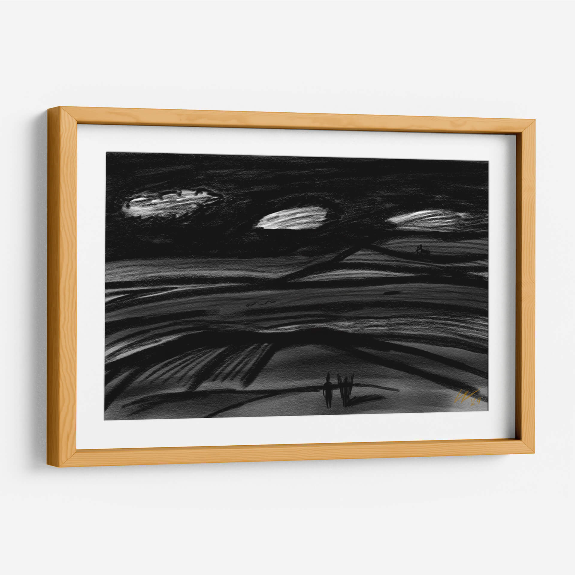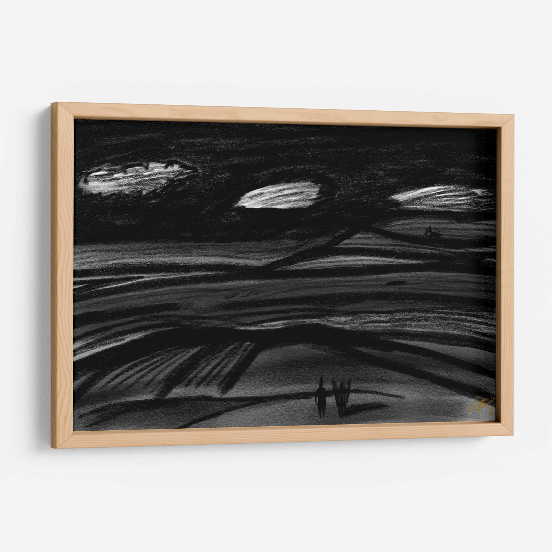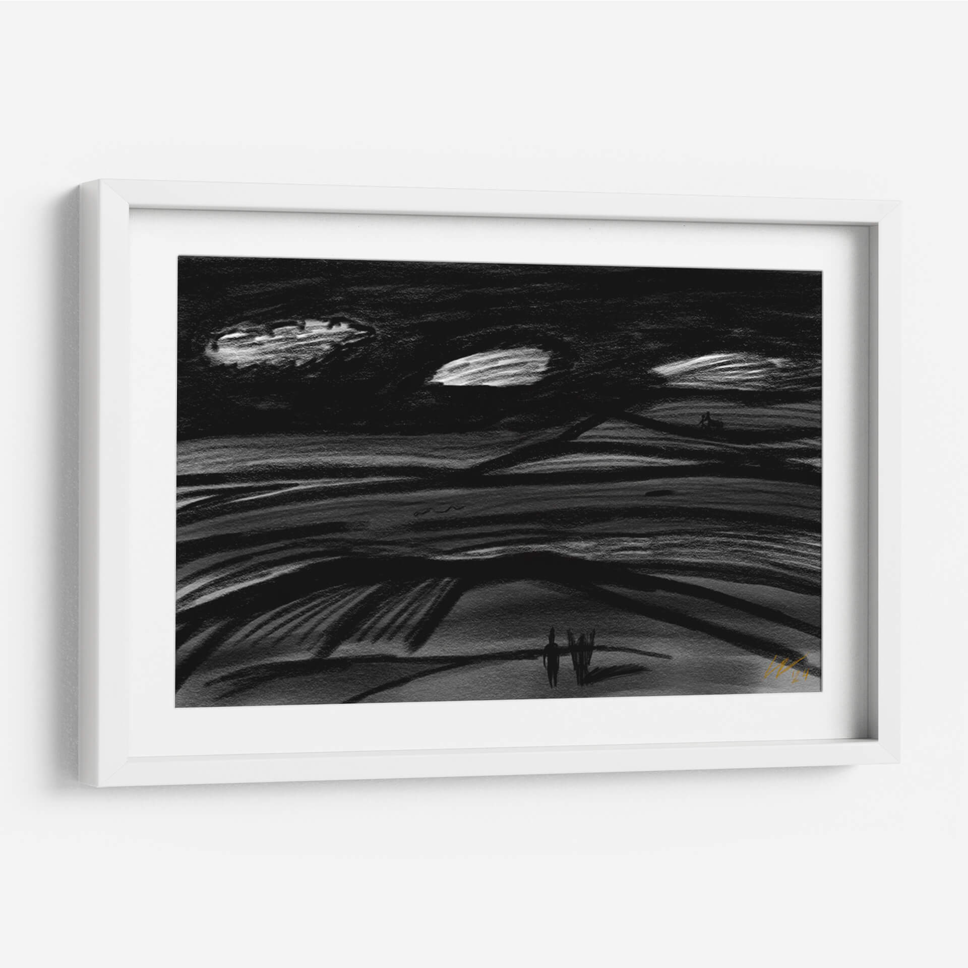 Sumérgete en la atmósfera evocadora de "Viaje por el Destino", una obra de arte contemporáneo que captura la esencia de la travesía y la contemplación. Este cuadro decorativo, con su paleta predominantemente en blanco y negro, evoca una sensación de misterio y reflexión, ideal para espacios que buscan un toque de sofisticación y profundidad. Las pinceladas audaces y el estilo expresionista sugieren un paisaje onírico o una escena abstracta que invita a la interpretación personal. Las líneas onduladas y los contrastes de luz y sombra crean un dinamismo sutil, mientras que las figuras minimalistas en el horizonte añaden un elemento humano, sugiriendo un viaje, ya sea físico o interior. "Viaje por el Destino" es perfecto para salas de estar modernas, oficinas creativas o cualquier rincón que necesite un punto focal que inspire diálogo y serenidad. Su diseño atemporal y su calidad artística lo convierten en una adición valiosa a cualquier colección de arte, transformando tu pared en un portal a la imaginación. Descubre la belleza del viaje y la exploración en esta pieza única.