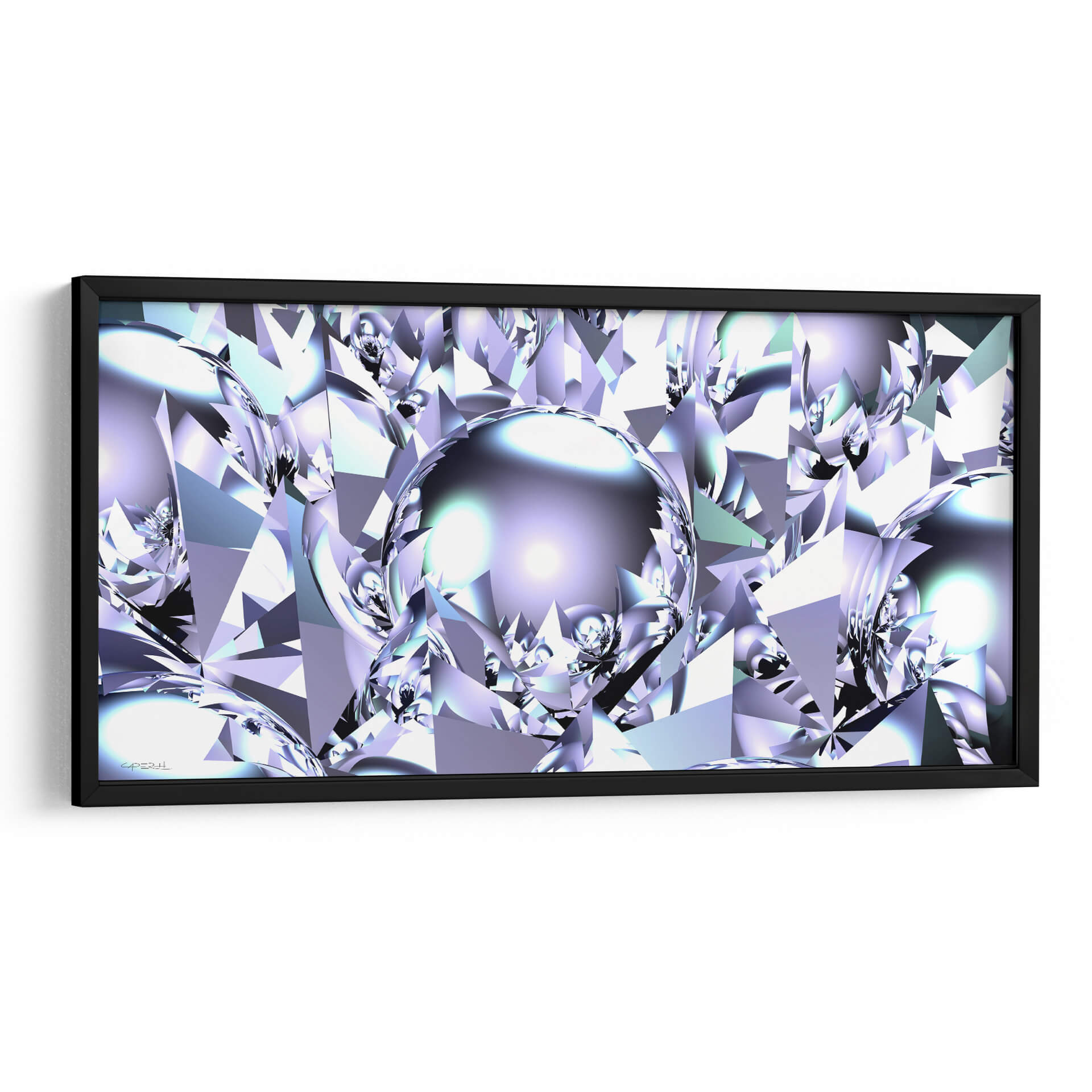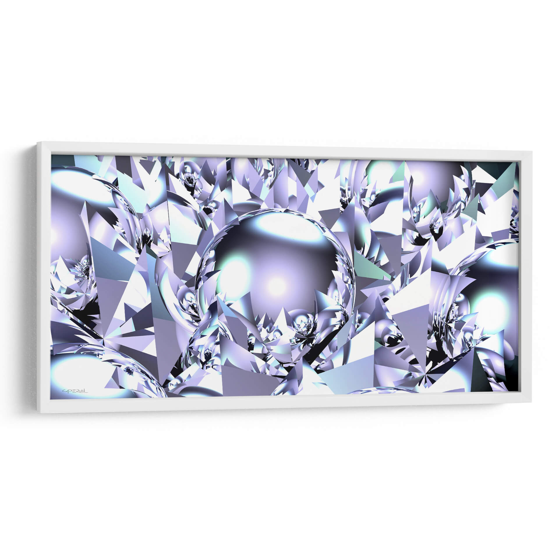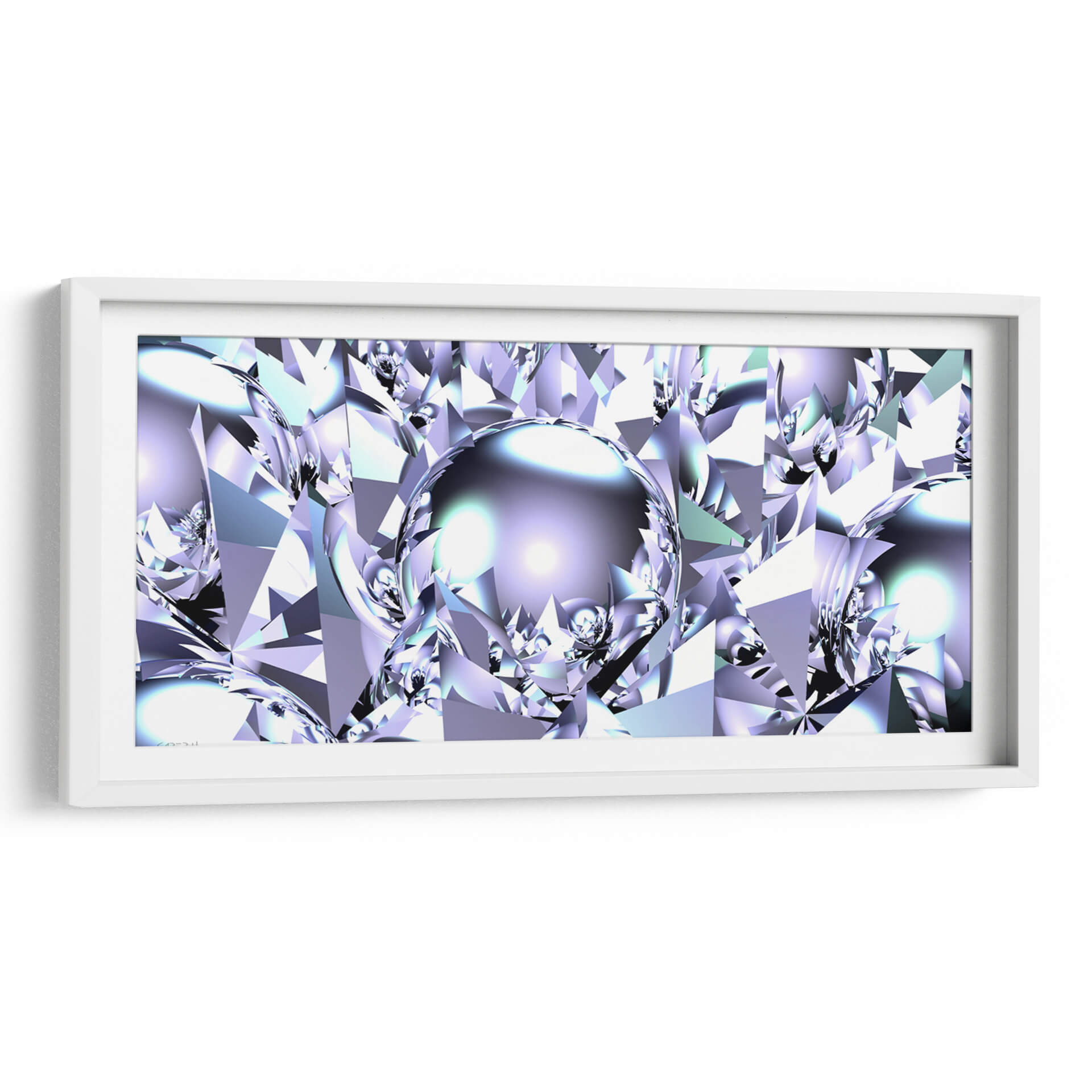 Sumérgete en la brillantez futurista de 'Virutas de Aluminio', una obra de arte digital que redefine la abstracción geométrica. Este cuadro decorativo presenta una intrincada red de formas facetadas que recuerdan a cristales o gemas talladas, bañadas en una paleta de colores fríos que va desde el blanco puro y el plateado metálico hasta sutiles tonos de lavanda y azul hielo. El centro de la composición está dominado por una esfera reflectante, que actúa como un espejo del intrincado mundo que la rodea, añadiendo profundidad y un toque de misterio. La interacción de luces y sombras, junto con el brillo metálico, confiere a la pieza una calidad casi etérea y tecnológica. "Virutas de Aluminio" es una elección audaz para espacios que buscan un toque de sofisticación moderna y vanguardista. Ideal para oficinas ejecutivas, salas de estar contemporáneas o cualquier rincón donde desees proyectar innovación y elegancia. Su diseño abstracto y su rica textura visual lo convierten en un punto focal cautivador, capaz de inspirar conversaciones y admiración. Transforma tu entorno con este cuadro decorativo que evoca la precisión, la pureza y el dinamismo del futuro, capturado en una obra de arte que desafía la percepción y estimula la imaginación, creando un ambiente de lujo y vanguardia.