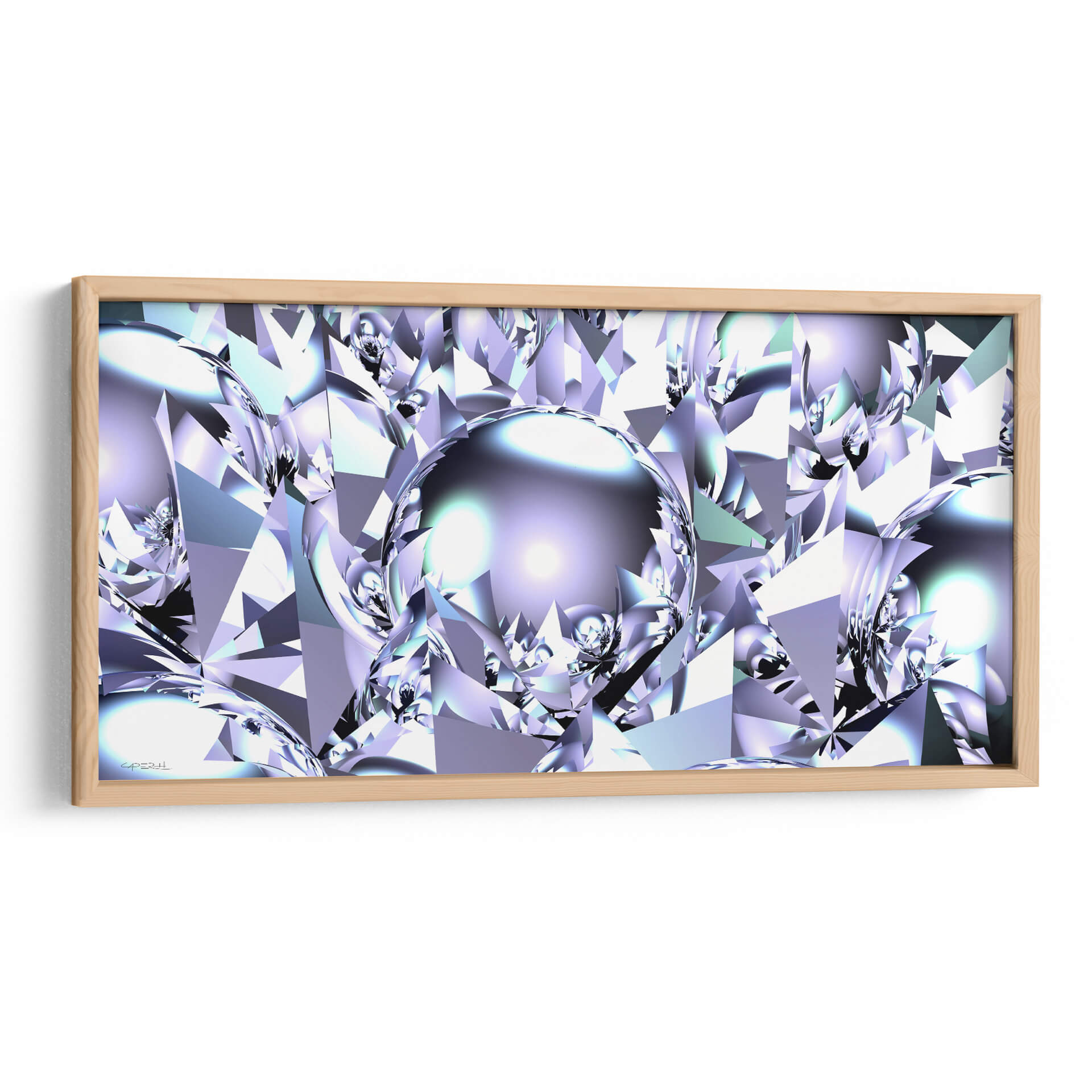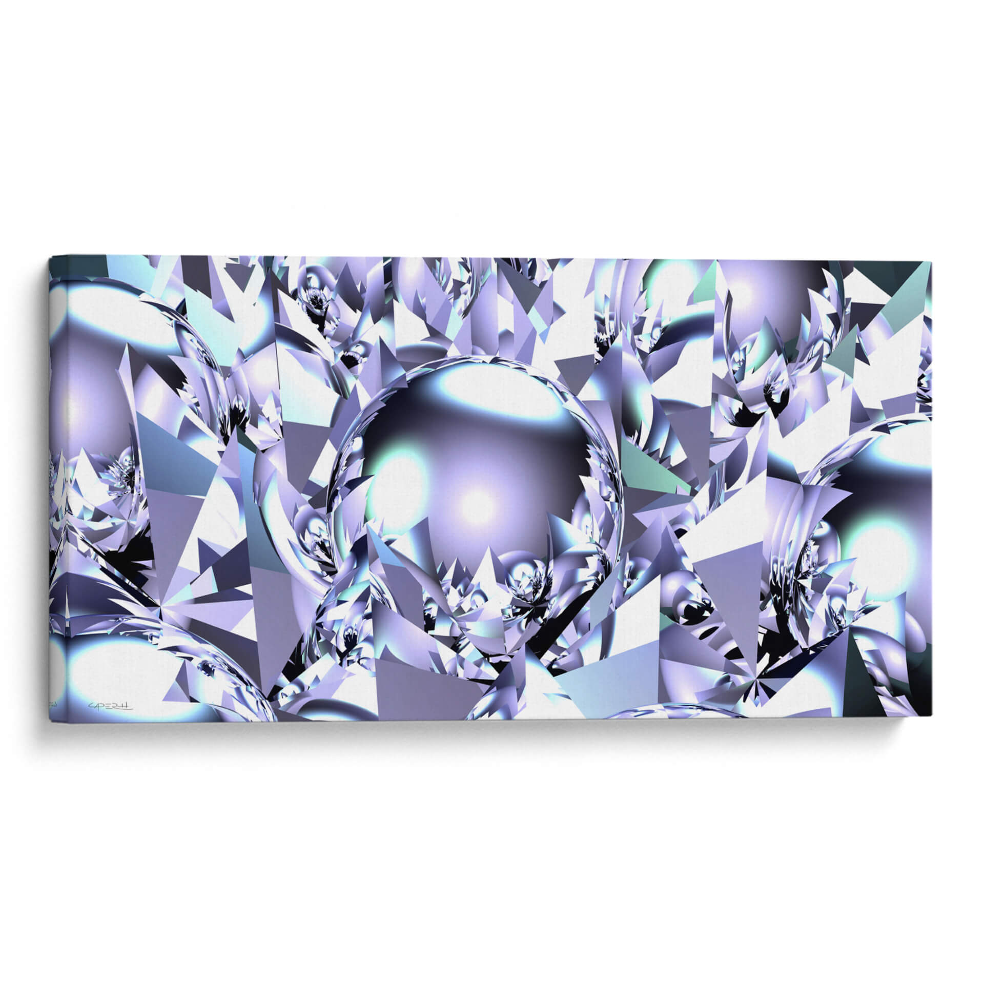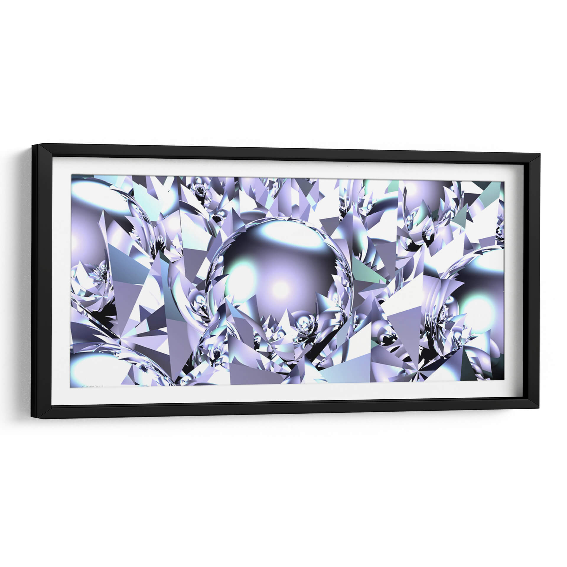 Sumérgete en la brillantez futurista de 'Virutas de Aluminio', una obra de arte digital que redefine la abstracción geométrica. Este cuadro decorativo presenta una intrincada red de formas facetadas que recuerdan a cristales o gemas talladas, bañadas en una paleta de colores fríos que va desde el blanco puro y el plateado metálico hasta sutiles tonos de lavanda y azul hielo. El centro de la composición está dominado por una esfera reflectante, que actúa como un espejo del intrincado mundo que la rodea, añadiendo profundidad y un toque de misterio. La interacción de luces y sombras, junto con el brillo metálico, confiere a la pieza una calidad casi etérea y tecnológica. "Virutas de Aluminio" es una elección audaz para espacios que buscan un toque de sofisticación moderna y vanguardista. Ideal para oficinas ejecutivas, salas de estar contemporáneas o cualquier rincón donde desees proyectar innovación y elegancia. Su diseño abstracto y su rica textura visual lo convierten en un punto focal cautivador, capaz de inspirar conversaciones y admiración. Transforma tu entorno con este cuadro decorativo que evoca la precisión, la pureza y el dinamismo del futuro, capturado en una obra de arte que desafía la percepción y estimula la imaginación, creando un ambiente de lujo y vanguardia.