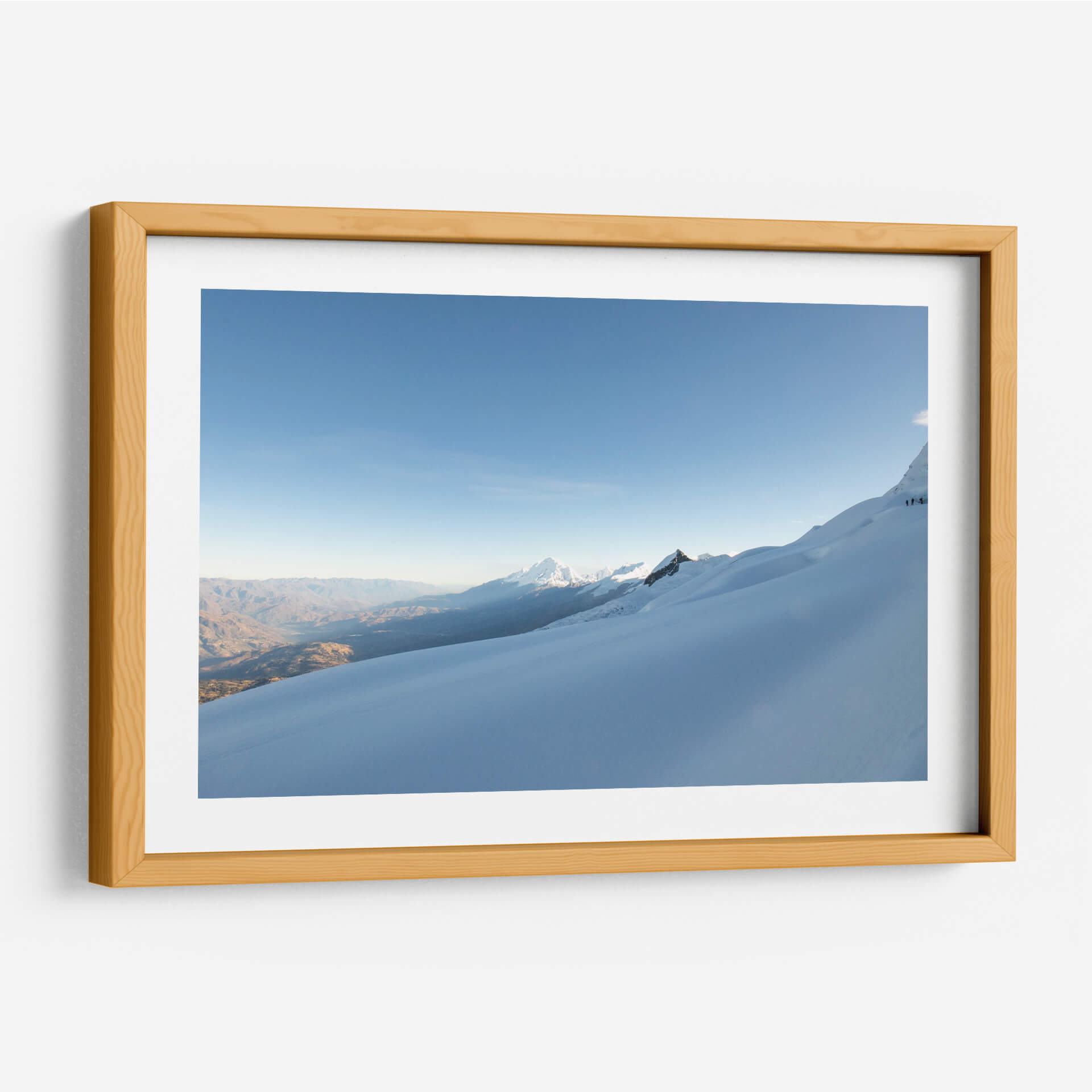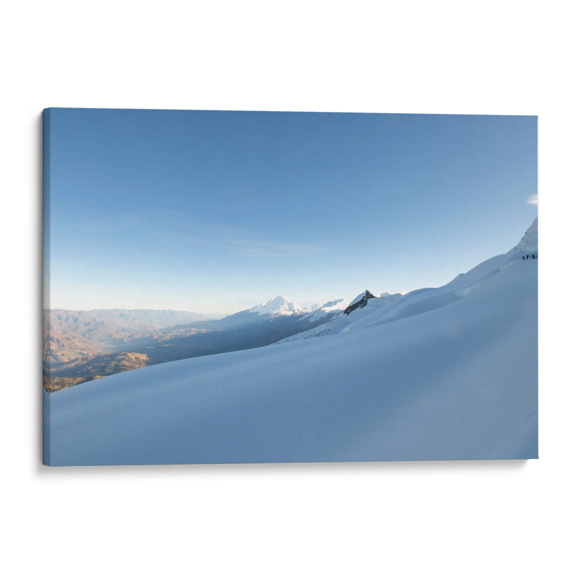 Sumérgete en la majestuosidad de la cordillera andina con 'Vista al Huascarán', una obra de arte que captura la imponente belleza de las alturas nevadas. El artista Luis Martínez nos transporta a un paisaje sereno y sublime, donde las cumbres heladas se alzan contra un cielo azul despejado, creando una atmósfera de paz y grandeza. La composición visual se centra en la vastedad de las montañas y la pureza del blanco invernal, contrastando con las texturas y tonos más cálidos de los valles distantes que se vislumbran al amanecer. Los sutiles degradados de azul en el cielo y el juego de luces y sombras sobre la nieve invitan a la contemplación, evocando una sensación de exploración y aventura. Este cuadro decorativo es perfecto para aquellos que buscan infundir en su hogar u oficina una sensación de tranquilidad, conexión con la naturaleza y la grandiosidad del mundo natural. Ideal para salones, dormitorios o despachos que aspiren a un toque de elegancia y serenidad paisajística, 'Vista al Huascarán' es una invitación a soñar con horizontes infinitos y la pureza del aire de montaña.