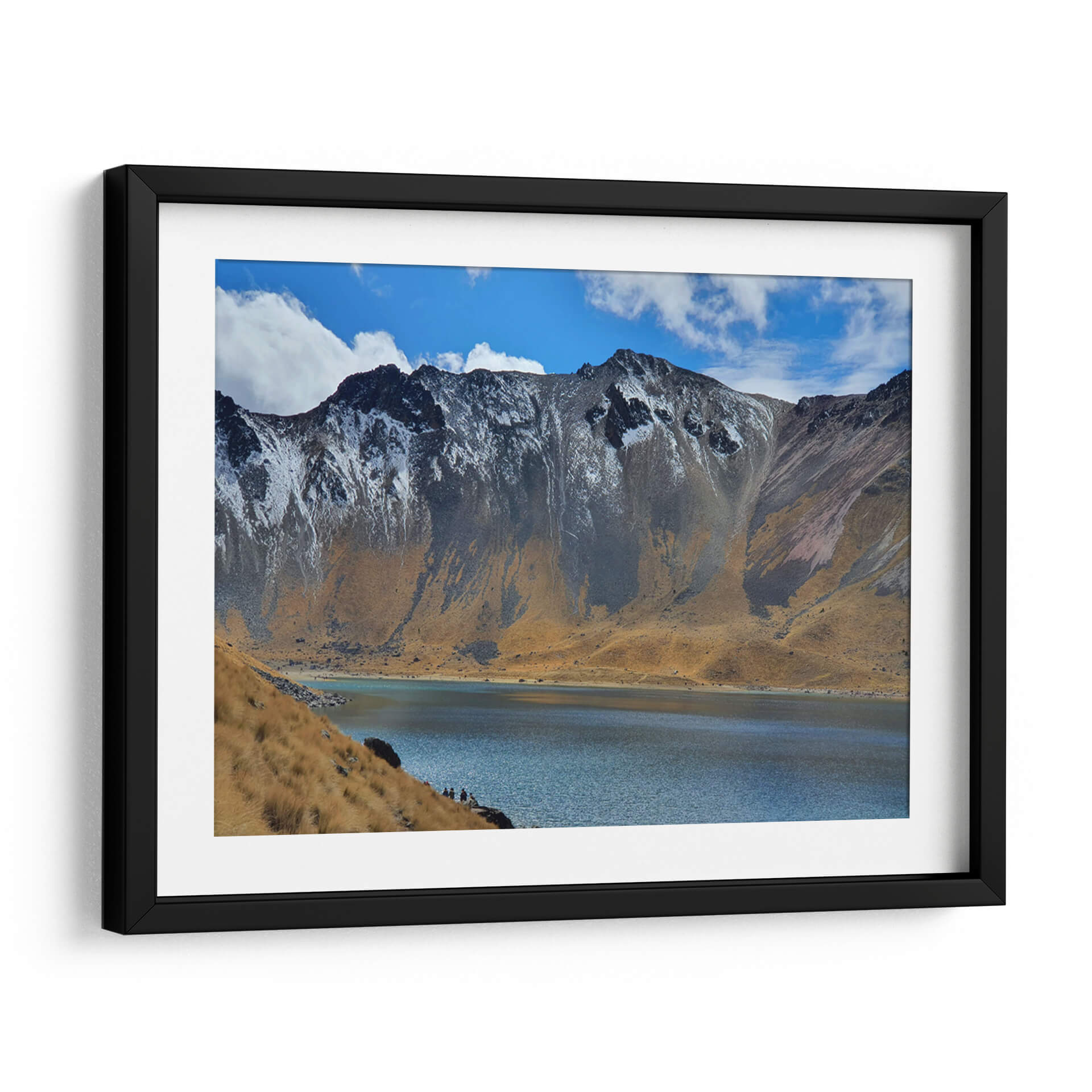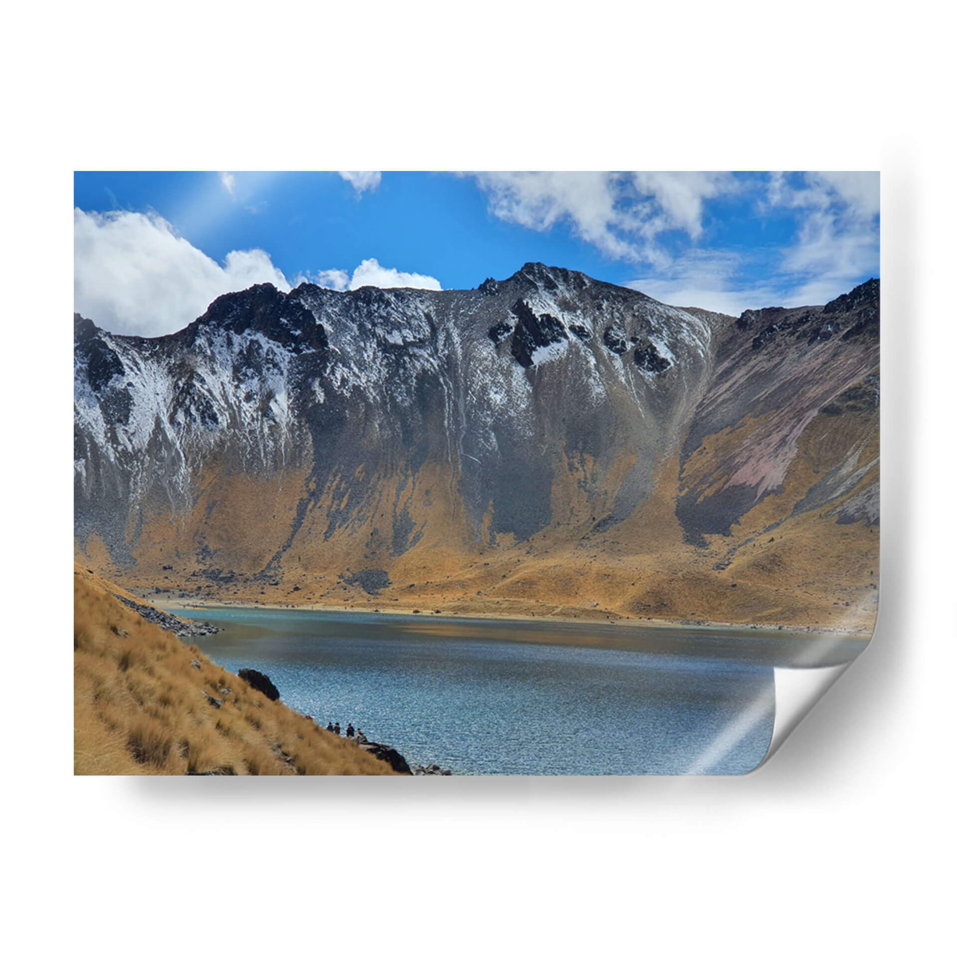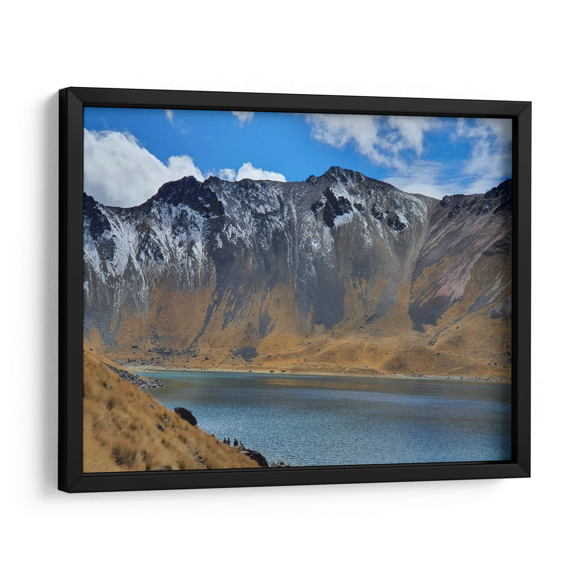 Sumérgete en la majestuosidad del volcán Xinantécatl con esta cautivadora obra de arte, "Vista interior del cráter del volcán Xinantécatl", del aclamado artista Salvador Gallardo. Esta pieza transporta al espectador a la imponente belleza de un paisaje volcánico, capturando la serenidad de un lago cristalino que se extiende a los pies de imponentes montañas. La paleta de colores, dominada por los tonos ocres de la tierra, el azul profundo del agua y el cielo, y los sutiles toques de nieve en las cumbres, crea una atmósfera de tranquilidad y asombro. La composición, que enfatiza la escala del paisaje y la presencia de pequeñas figuras humanas en la orilla, invita a la contemplación y a la reflexión sobre la grandeza de la naturaleza. Este cuadro decorativo es ideal para aquellos que buscan infundir a sus espacios una sensación de paz, aventura y conexión con el entorno natural. Perfecto para salas de estar, estudios u oficinas, este lienzo transformará cualquier ambiente en un santuario de calma y belleza escénica, añadiendo un toque distintivo y evocador a tu decoración.