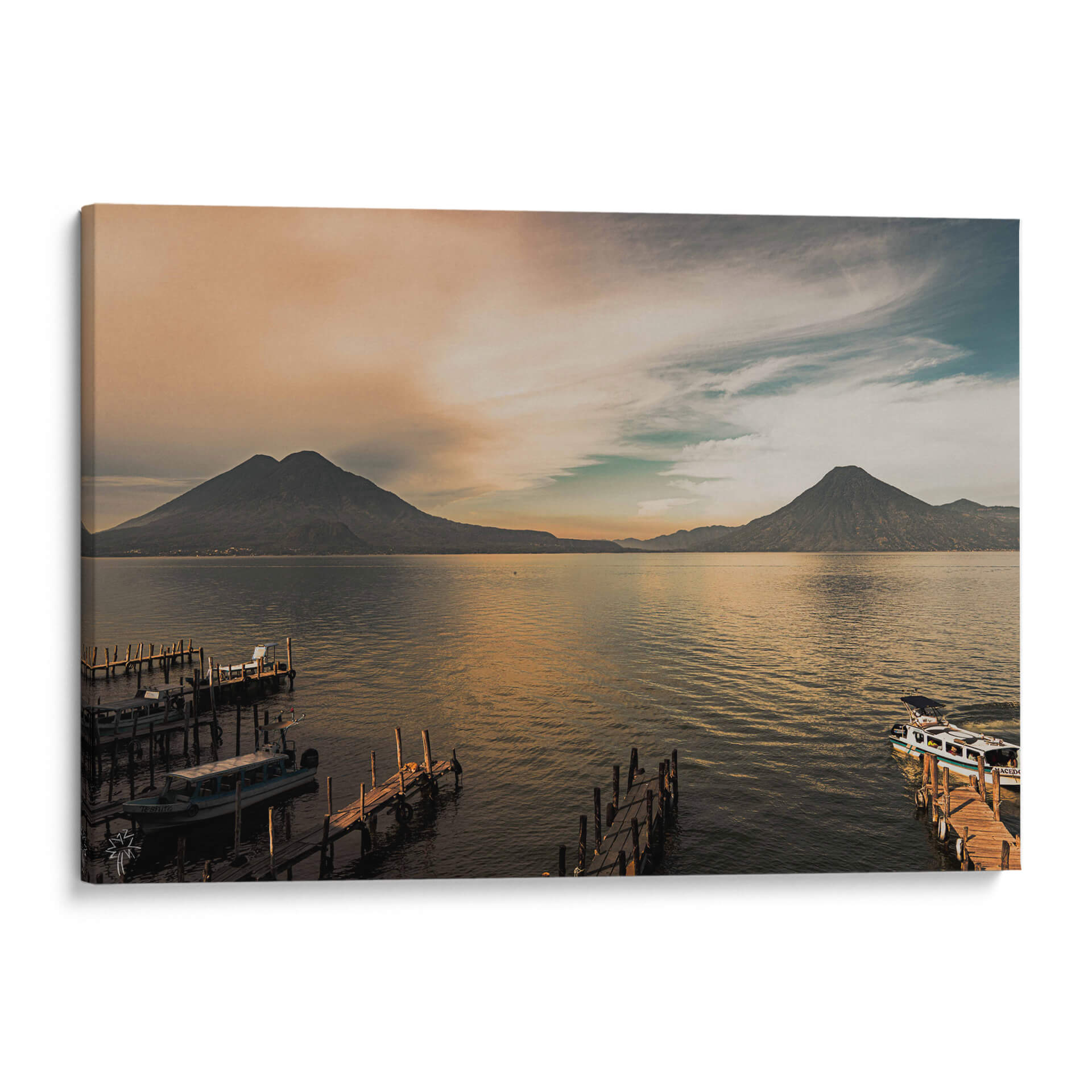 Sumérgete en la majestuosidad del paisaje con 'VOLCANES QUE SUEÑAN', una obra de arte de Zuriel Halal que captura la serena imponencia de dos volcanes reflejados en un lago tranquilo. La paleta de colores, dominada por tonos cálidos y terrosos en el cielo y las montañas, contrasta sutilmente con los azules profundos y los dorados del agua, creando una atmósfera de paz y contemplación. Los muelles de madera que se adentran en el lago añaden un toque de realismo y nos invitan a imaginar la tranquilidad de un atardecer en este paraje natural. Esta pieza fotográfica, con su composición panorámica y su juego de luces, es ideal para espacios que buscan transmitir calma y conexión con la naturaleza, como salones, dormitorios o estudios. Transforma tu hogar en un santuario de paz y belleza con este cuadro decorativo, una ventana a un mundo donde los volcanes parecen soñar en perfecta armonía con el entorno. Es una adición perfecta para quienes buscan arte de paisaje que evoque serenidad y asombro.