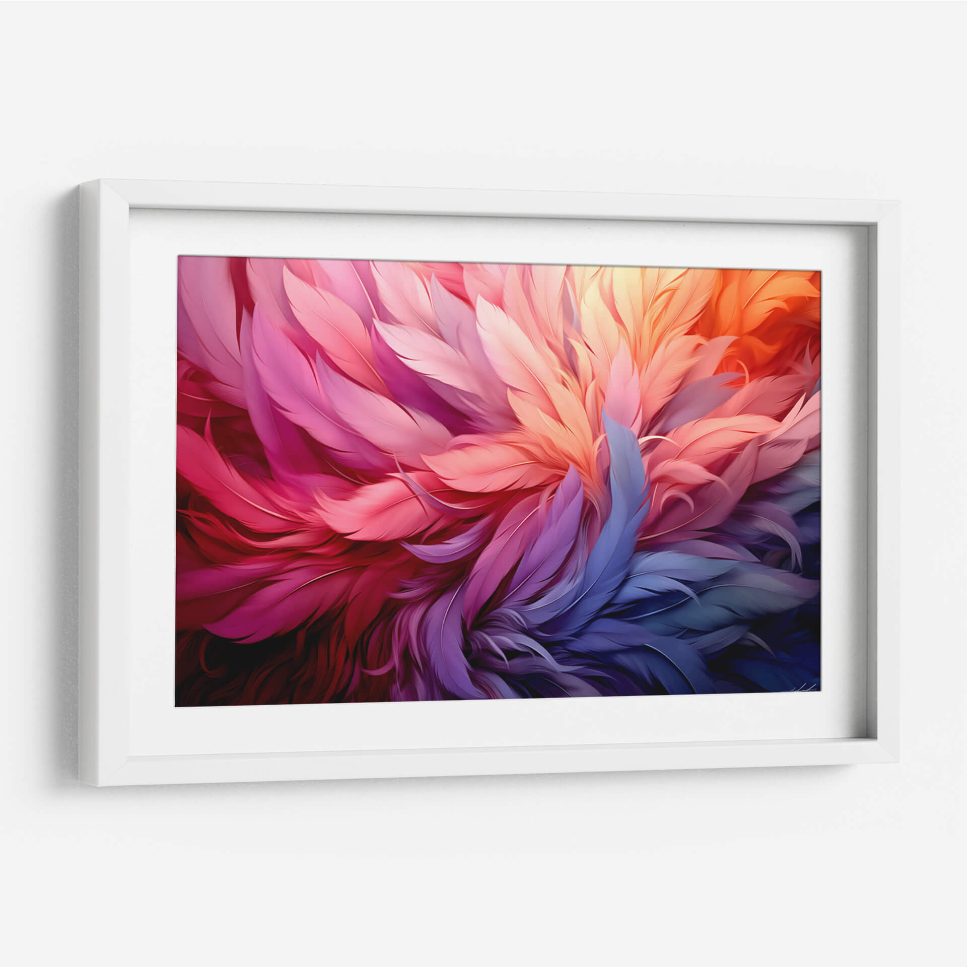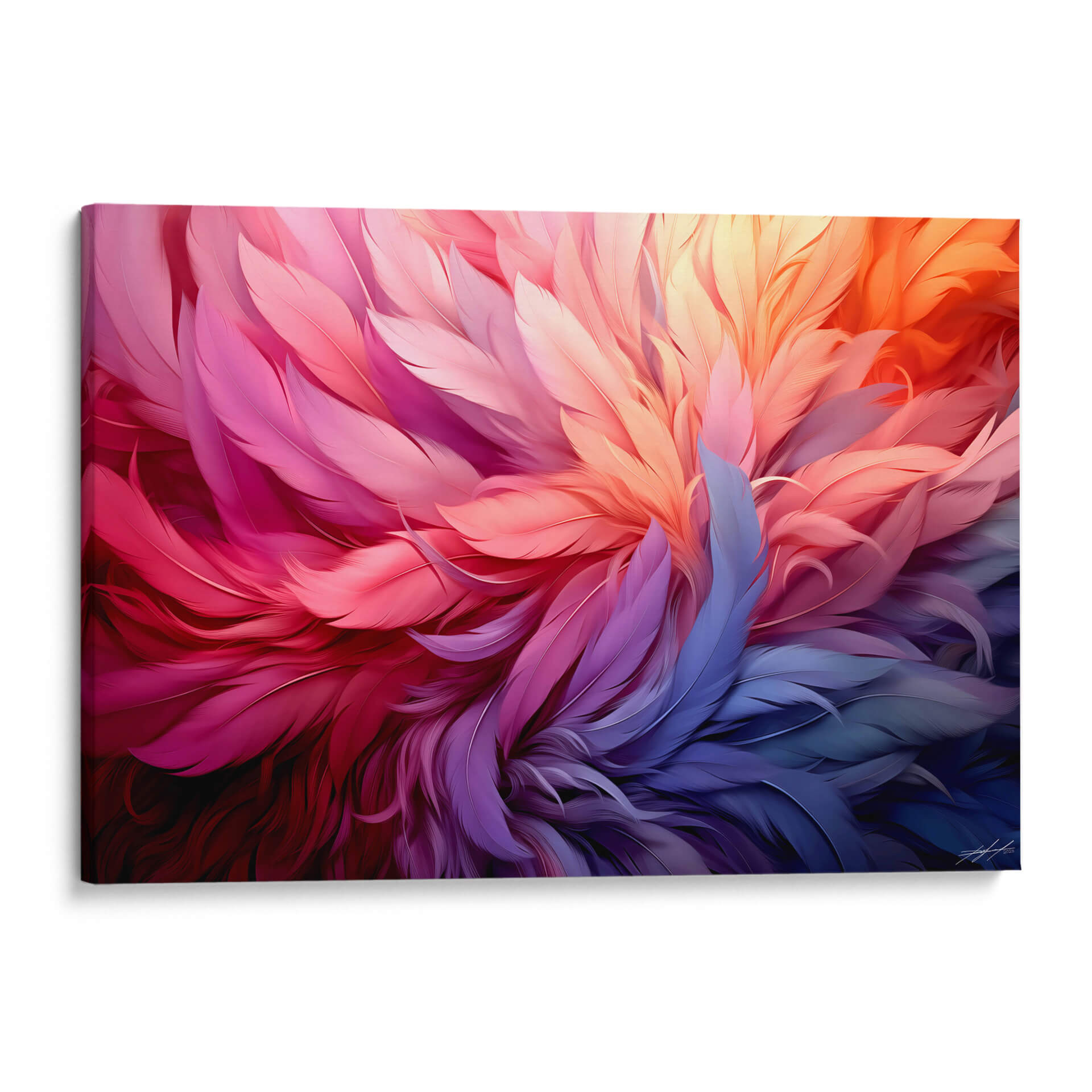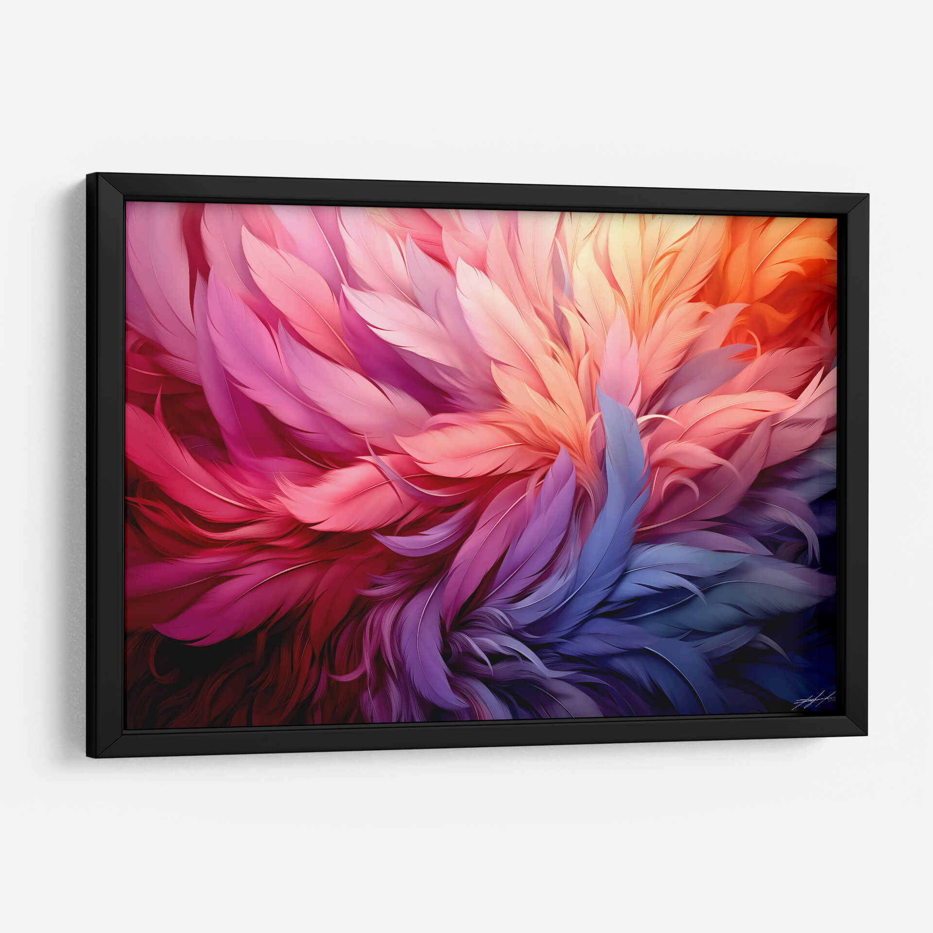 Sumérgete en la belleza etérea de "Vuela Conmigo - 11", una obra de arte digital que captura la delicadeza y la fluidez de las plumas en un torbellino de color. Esta pieza evoca una sensación de ligereza y movimiento, invitando a la contemplación y a la evasión. La paleta de colores es un vibrante degradado que transita desde intensos rosas y fucsias hasta suaves melocotones y naranjas cálidos en la parte superior, contrastando armoniosamente con profundos azules púrpuras y añiles en la parte inferior. La composición se centra en la exuberancia de las plumas, entrelazándose y superponiéndose para crear una textura visual rica y dinámica. El estilo, aunque inspirado en elementos naturales, posee una cualidad casi onírica, propia del arte digital contemporáneo, que añade un toque de misterio y sofisticación. "Vuela Conmigo - 11" es ideal para añadir un acento de color y energía a cualquier espacio, ya sea una sala de estar moderna, un dormitorio acogedor o una oficina que busque inspiración. Este cuadro decorativo se convierte en un punto focal que atrae la mirada y estimula la imaginación, ofreciendo una experiencia visual cautivadora y transformadora para tu hogar u oficina, un verdadero tesoro para los amantes del arte abstracto y vibrante.