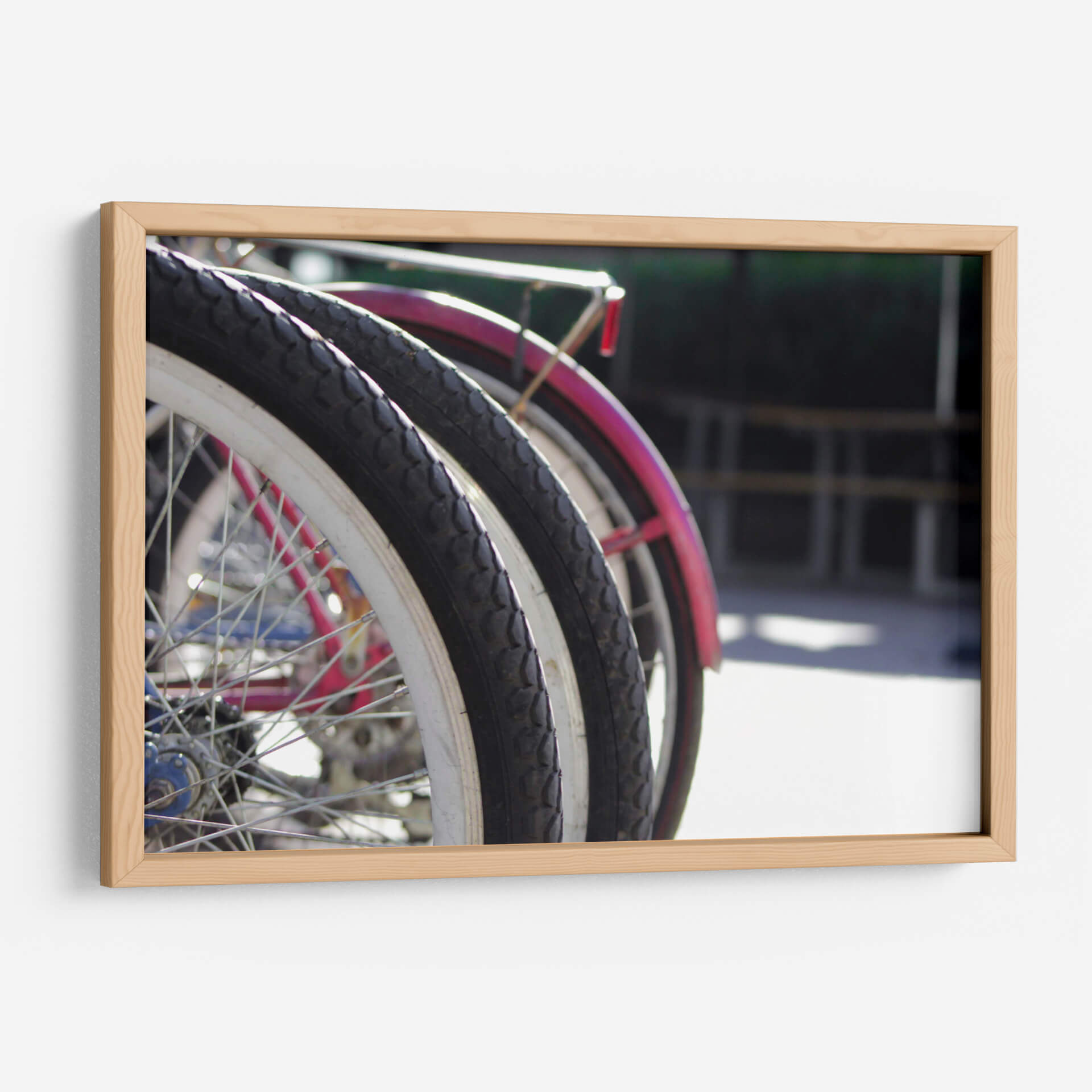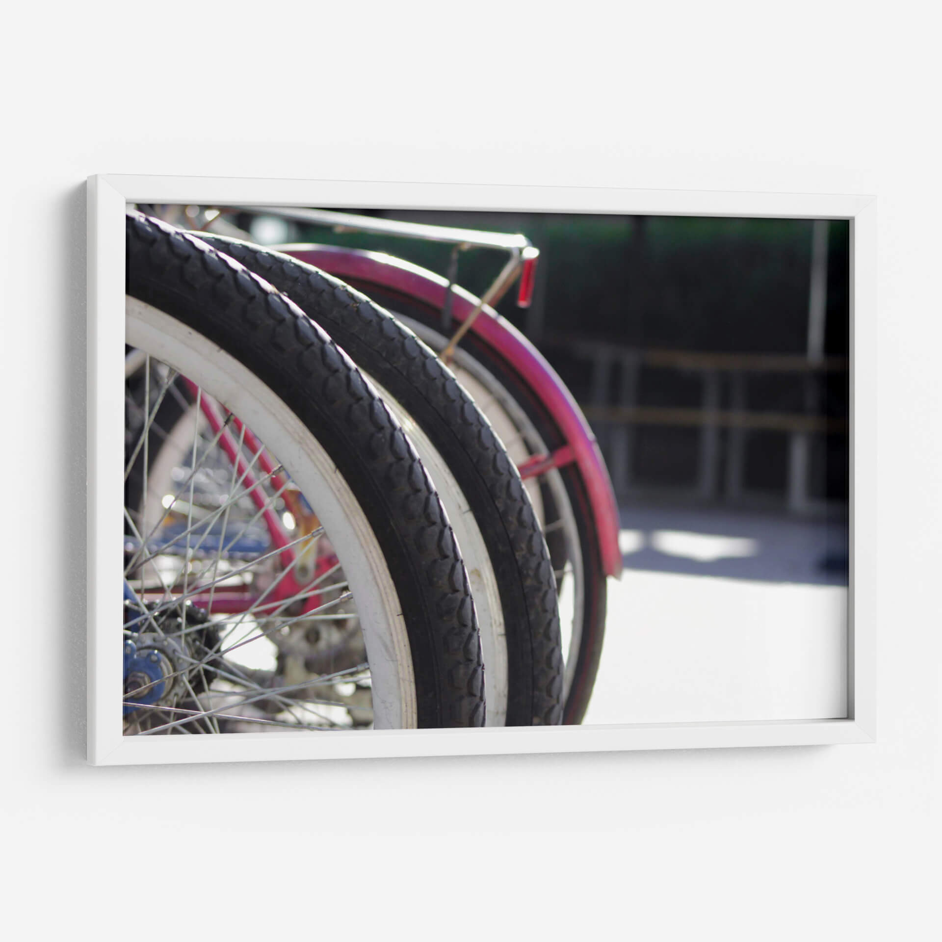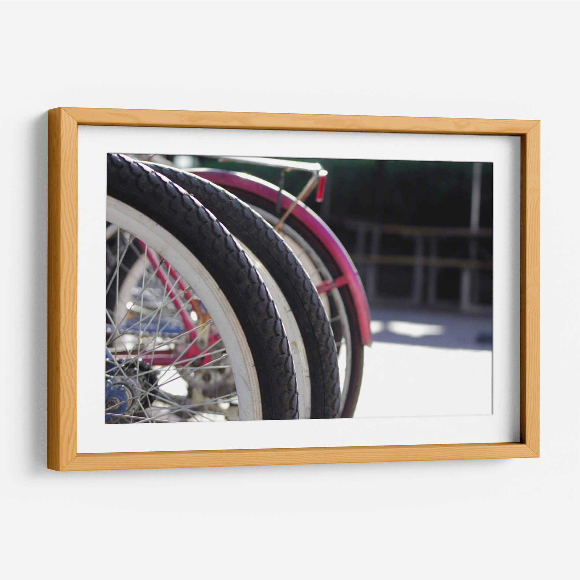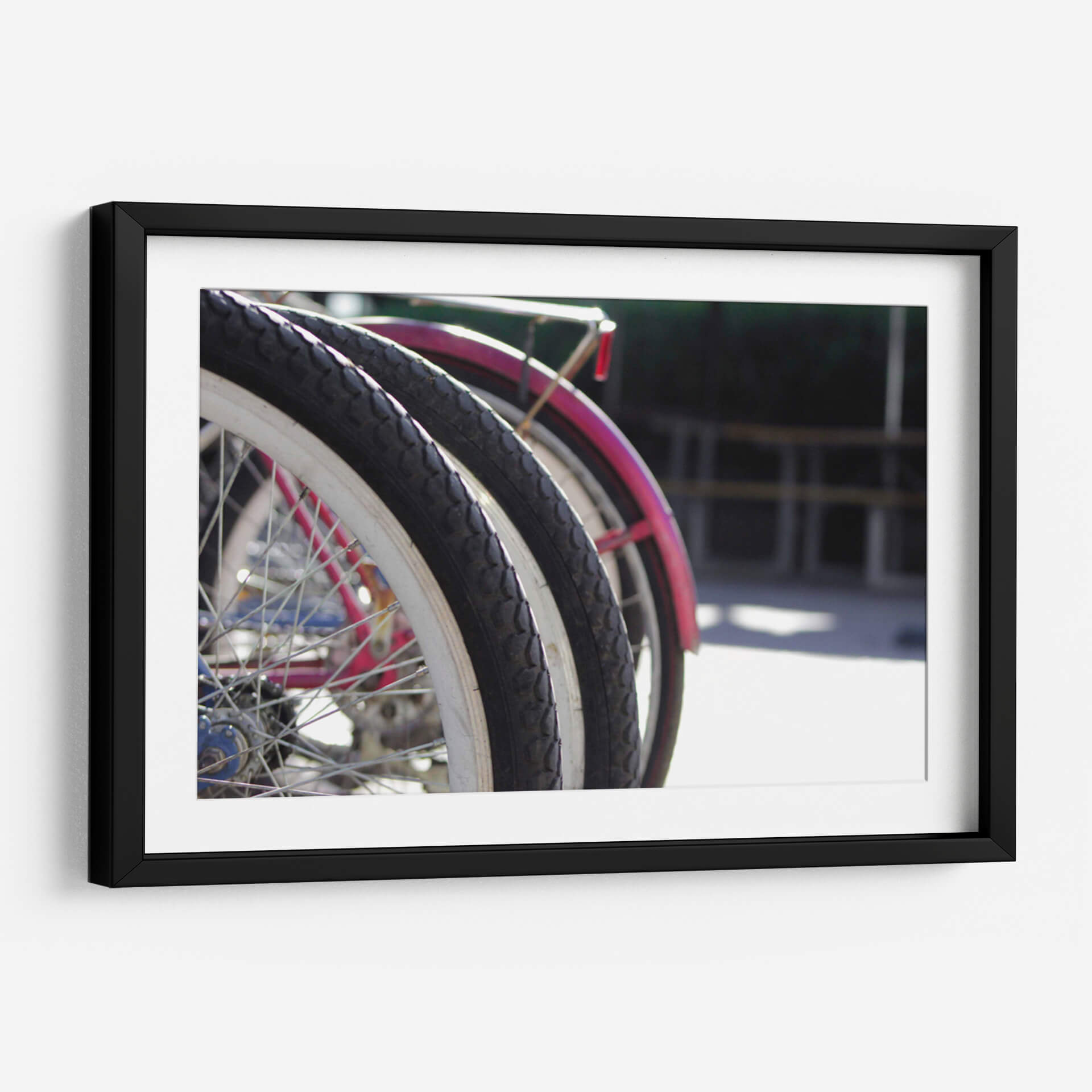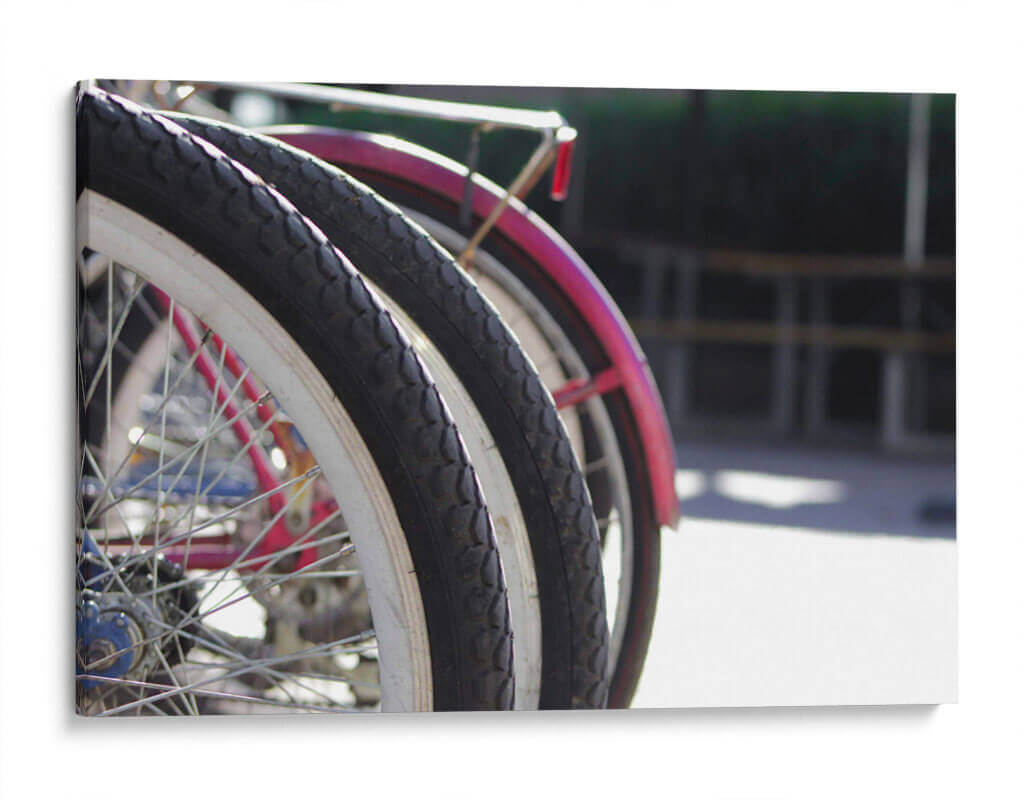 Captura la esencia del movimiento y la nostalgia urbana con "Bicicletas", una obra de arte contemporáneo de Arturo Sánchez. Este cuadro decorativo se centra en un primer plano de las ruedas de dos bicicletas, invitando a la reflexión sobre el viaje y la aventura cotidiana. La composición destaca por su enfoque detallado en los neumáticos negros, los radios plateados que se entrelazan y los sutiles toques de color rosa en los guardabarros, creando un contraste visual interesante. La iluminación suave y el fondo desenfocado, con tonos oscuros y sombras marcadas, añaden profundidad y un aire de misterio, sugiriendo un momento capturado en el tiempo. Ideal para espacios que buscan un toque de personalidad y un guiño a la vida al aire libre, esta pieza se integra perfectamente en decoraciones modernas, industriales o vintage. "Bicicletas" no es solo una imagen, es una invitación a revivir recuerdos o a soñar con nuevas exploraciones. Añade un toque distintivo y contemporáneo a tu hogar u oficina con este cuadro decorativo único, que combina estética y narrativa de forma magistral.