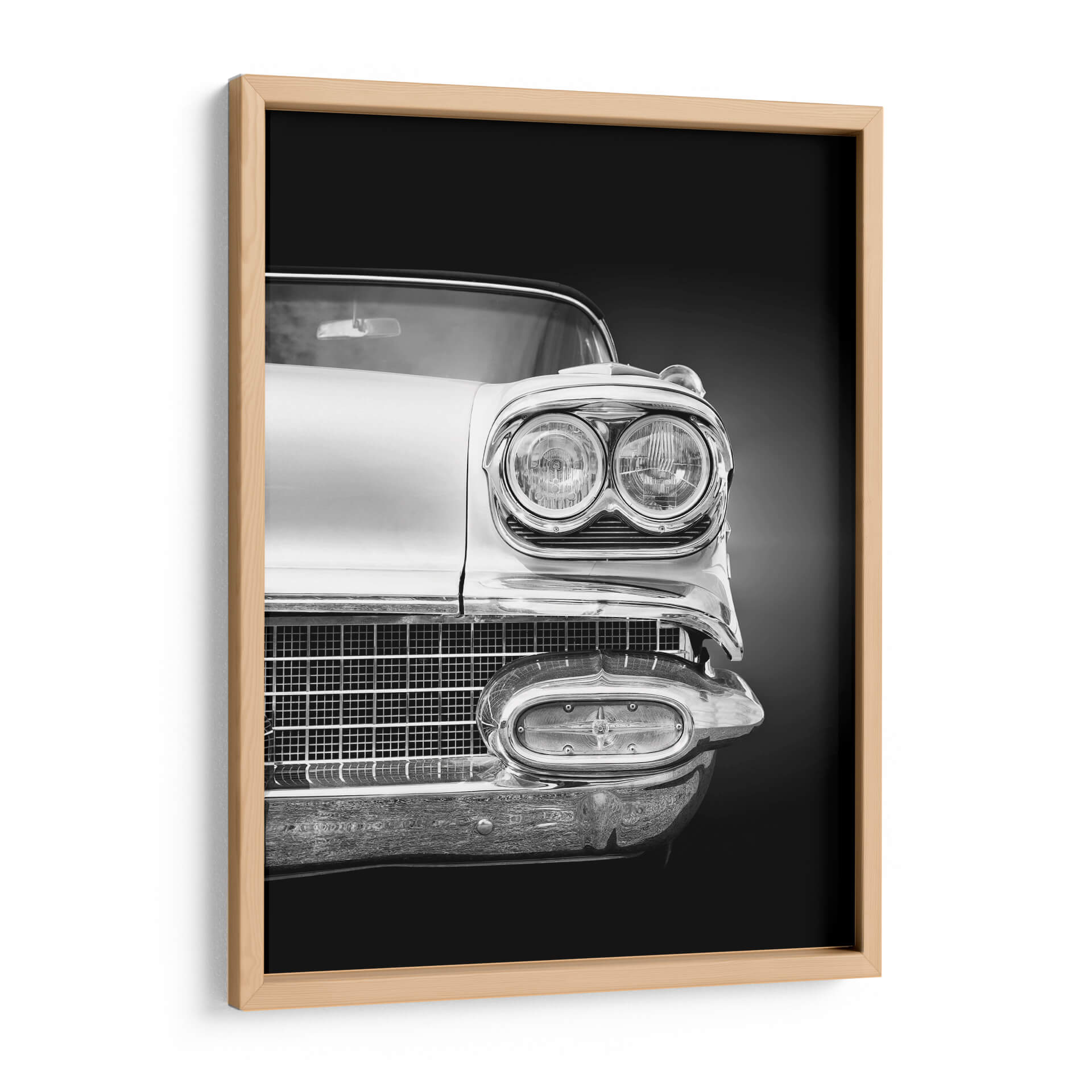 Este cuadro decorativo en blanco y negro captura la esencia icónica del Coche Clásico Americano Bonneville 1958 Convertible II, una obra maestra del artista Beate Gube. La imagen se centra en la impactante parrilla cromada y los faros dobles de este legendario vehículo, evocando una sensación de nostalgia y admiración por la ingeniería automotriz de mediados de siglo. La paleta monocromática, con profundos contrastes entre luces y sombras, resalta las curvas elegantes y los detalles intrincados del coche, confiriéndole una presencia atemporal y sofisticada. Es la pieza ideal para añadir un toque de elegancia vintage y un punto de conversación a cualquier sala de estar, estudio o garaje temático. La composición audaz y el primer plano del vehículo lo convierten en un elemento focal que atrae la mirada y despierta el interés, perfecto para amantes de los automóviles clásicos y entusiastas del diseño retro. Este cuadro decorativo no solo embellece el espacio, sino que también rinde homenaje a una era dorada de la automoción, fusionando arte y nostalgia de manera impecable para crear un ambiente lleno de carácter y estilo. Su versatilidad lo hace adecuado para una variedad de decoraciones, desde lo moderno hasta lo industrial, aportando siempre un aire de distinción y buen gusto. Un verdadero tributo a la maestría de Beate Gube y a la leyenda del Bonneville 1958.