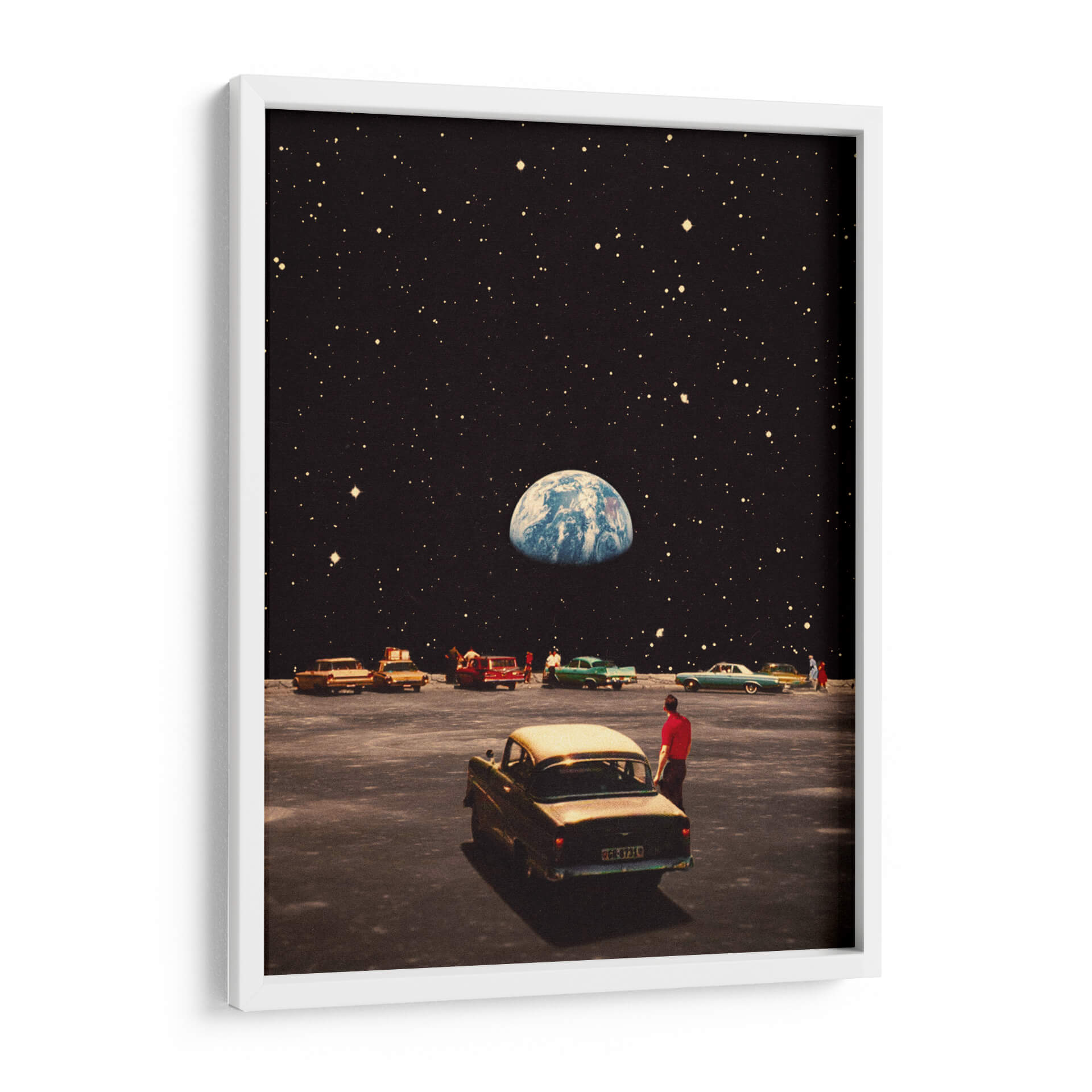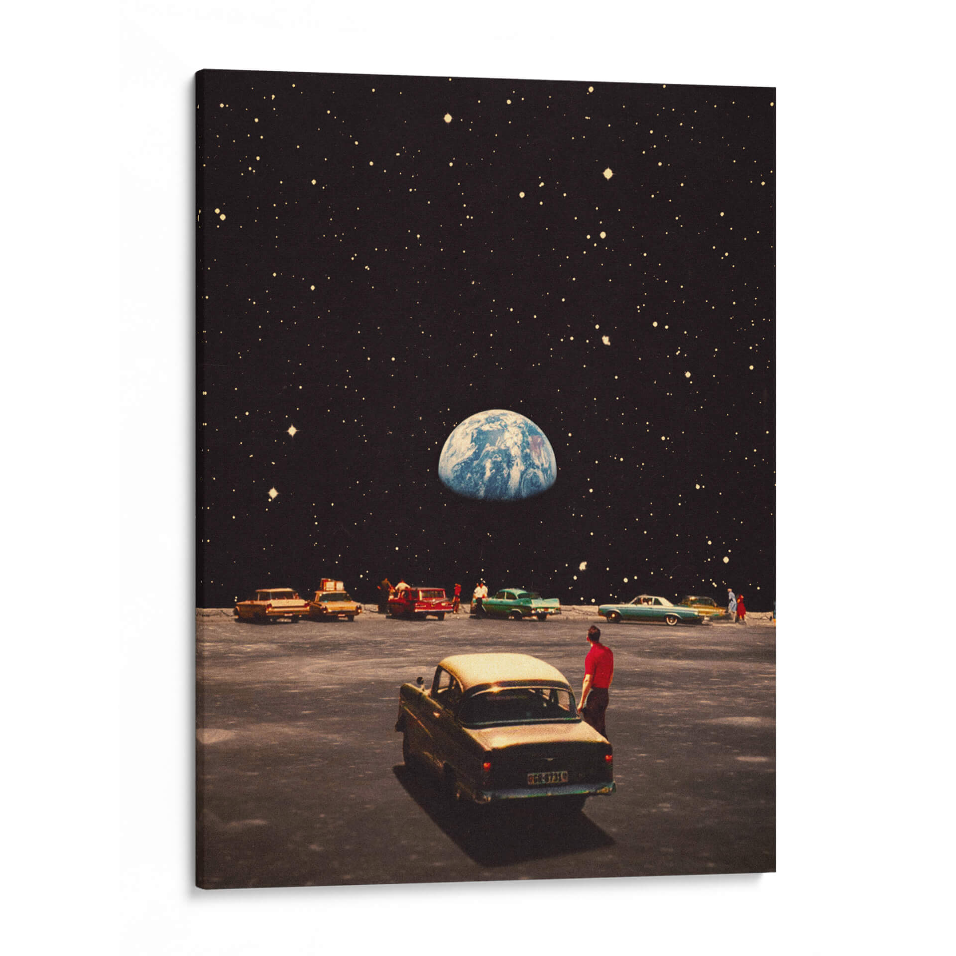 Sumérgete en la fascinante obra "Extrañando el hogar" de Taudalpoi, un cuadro decorativo que te transportará a un paisaje onírico y evocador. La pieza presenta una escena surrealista donde varios coches clásicos se encuentran estacionados bajo un cielo estrellado, con la Tierra flotando majestuosamente en la distancia. La paleta de colores, dominada por los tonos oscuros del espacio y los terrosos del paisaje lunar, crea una atmósfera de misterio y melancolía. Las figuras humanas, pequeñas ante la inmensidad del cosmos, añaden un toque de reflexión sobre nuestra conexión con el universo y el concepto de pertenencia. Este cuadro decorativo es perfecto para quienes buscan una pieza de arte contemporáneo que invite a la contemplación y añada un toque de originalidad a sus espacios. Ideal para salones, estudios u oficinas, "Extrañando el hogar" stimula la imaginación y genera conversación, convirtiéndose en un punto focal único que invita a soñar despierto. Su estilo retrofuturista, que combina elementos de épocas pasadas con una visión espacial, lo hace destacar en cualquier decoración moderna o ecléctica. Permite que esta obra te lleve en un viaje visual y emocional, explorando temas de nostalgia, aventura y la búsqueda de nuestro lugar en el cosmos.