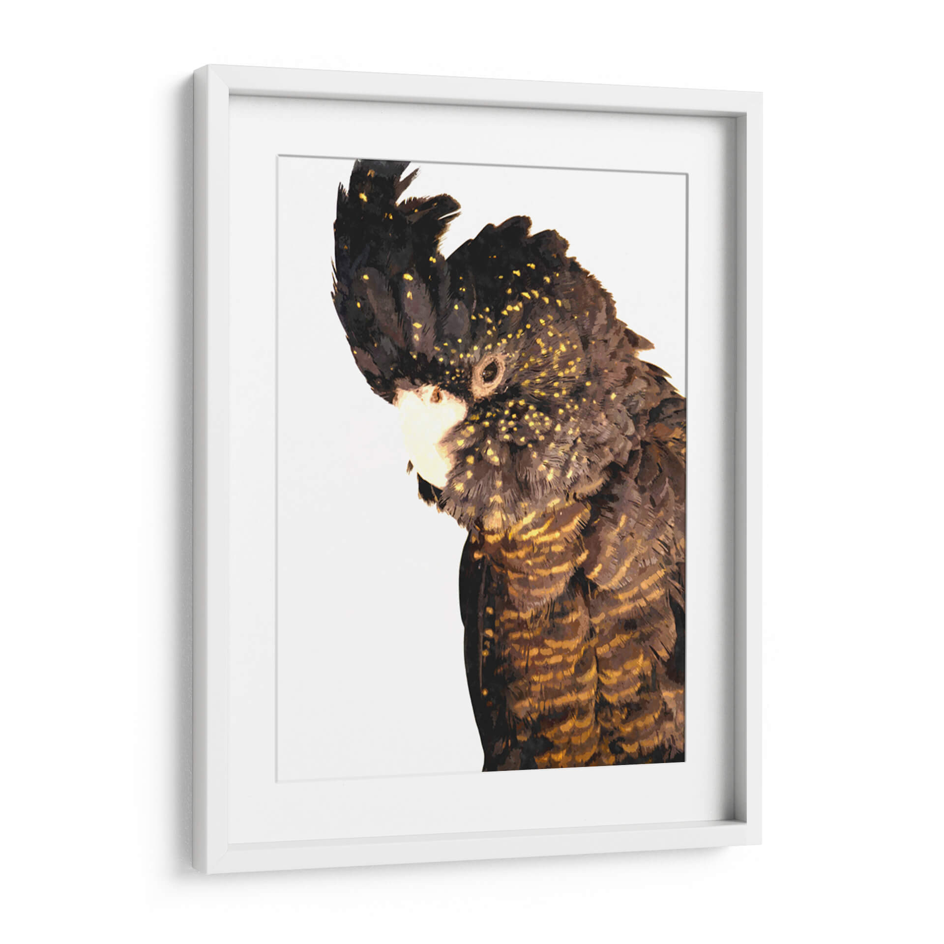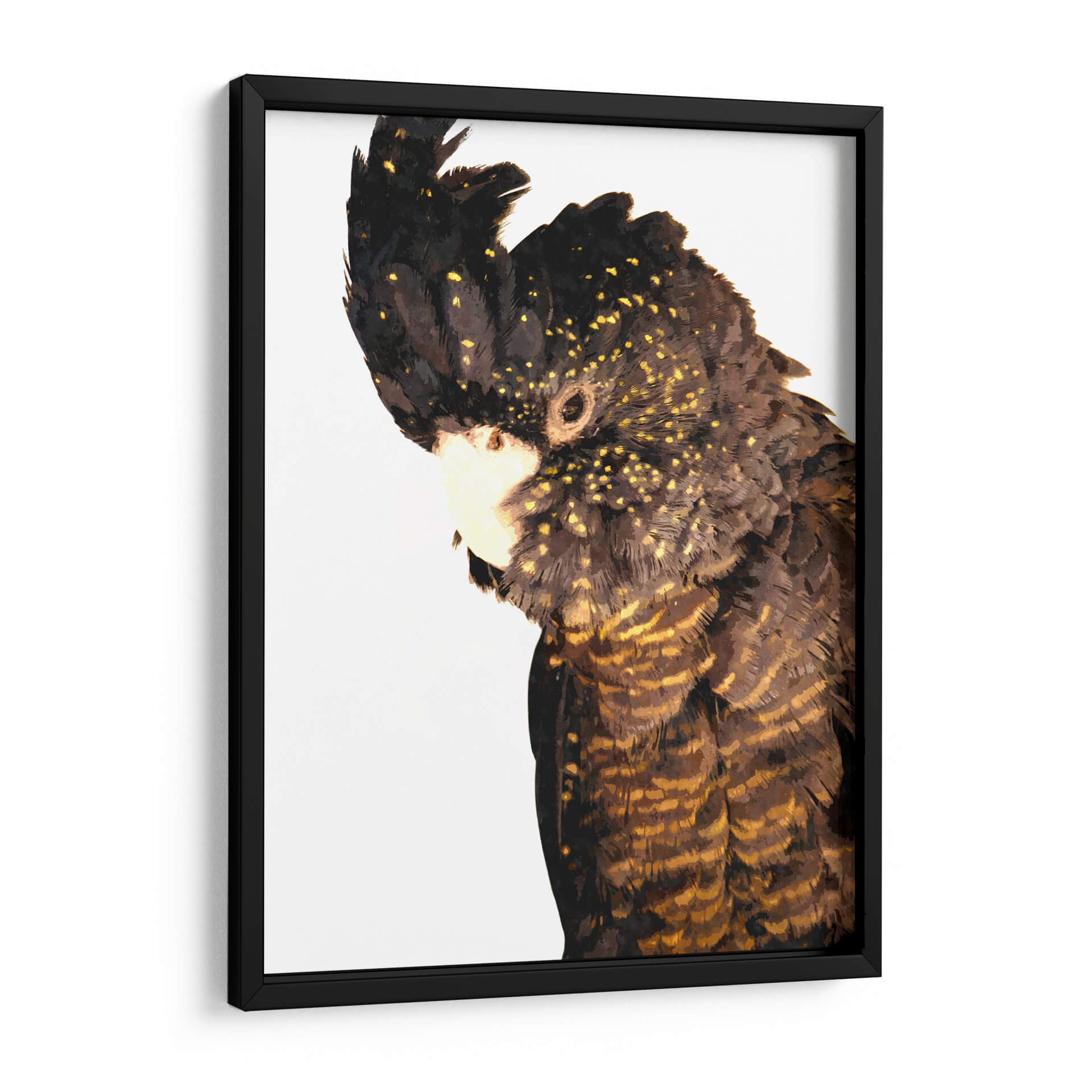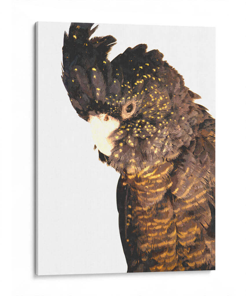 Sumérgete en la majestuosidad de la naturaleza con este cautivador cuadro decorativo de cacatúa. La obra, titulada 'Cacatúa' y creada por el artista Alemi, captura la esencia de esta magnífica ave con un realismo impresionante y un toque artístico contemporáneo. La paleta de colores, dominada por oscuros tonos marrones y negros salpicados de vibrantes destellos dorados, crea un contraste fascinante que atrae la mirada. Cada pluma está detallada con maestría, evocando una sensación de textura y profundidad que invita a la contemplación. La composición, centrada en el perfil de la cacatúa, le otorga una presencia imponente y a la vez serena. Este cuadro decorativo es ideal para añadir un toque de elegancia exótica y un punto focal intrigante a cualquier espacio, ya sea una sala de estar moderna, un estudio o una oficina. La atmósfera que irradia es una mezcla de poder silencioso y belleza salvaje, perfecta para aquellos que aprecian la fauna y el arte con carácter. Añade esta pieza única a tu colección y deja que la sofisticación natural de la cacatúa transforme tu entorno.