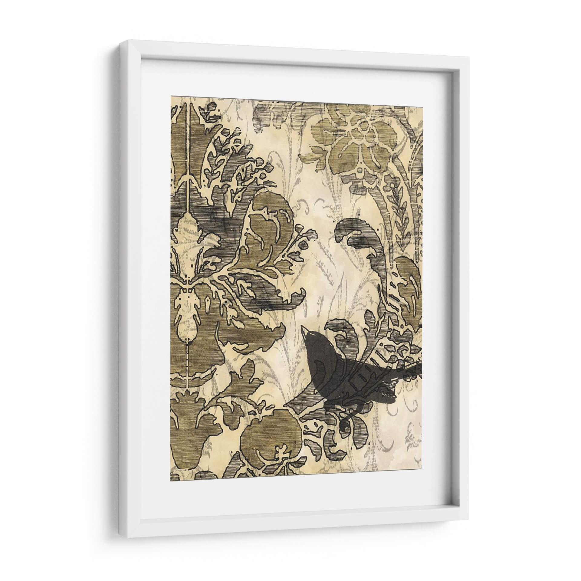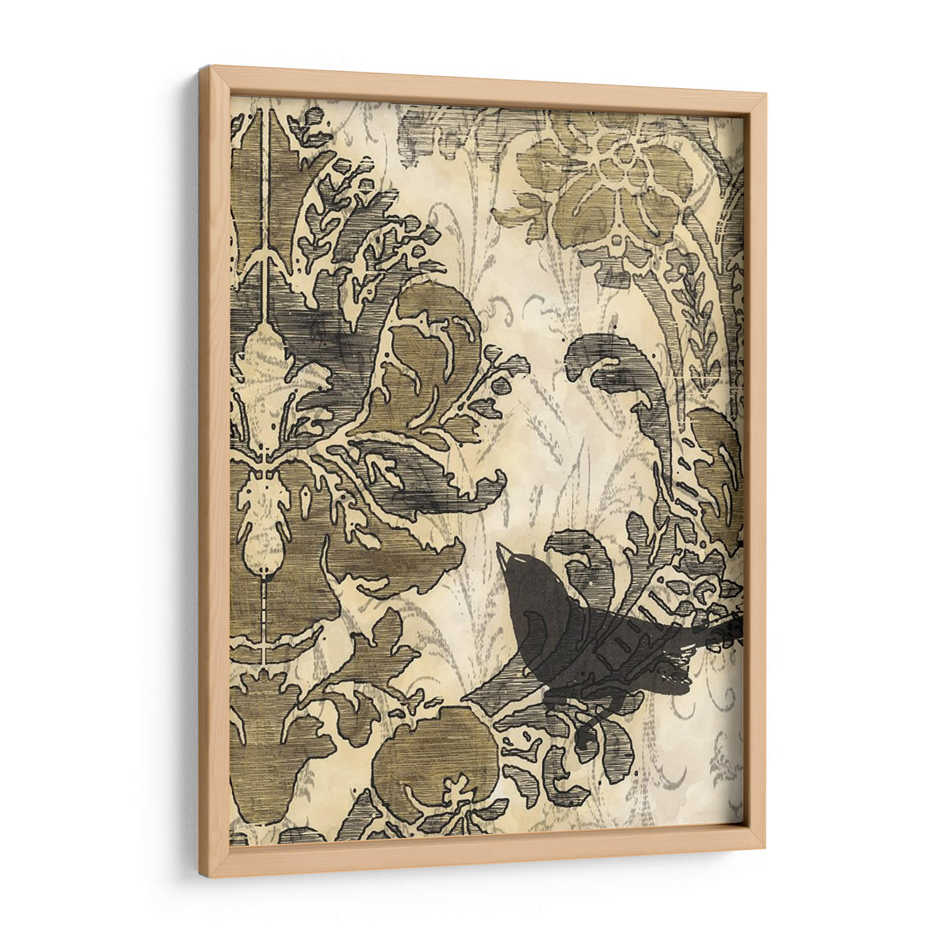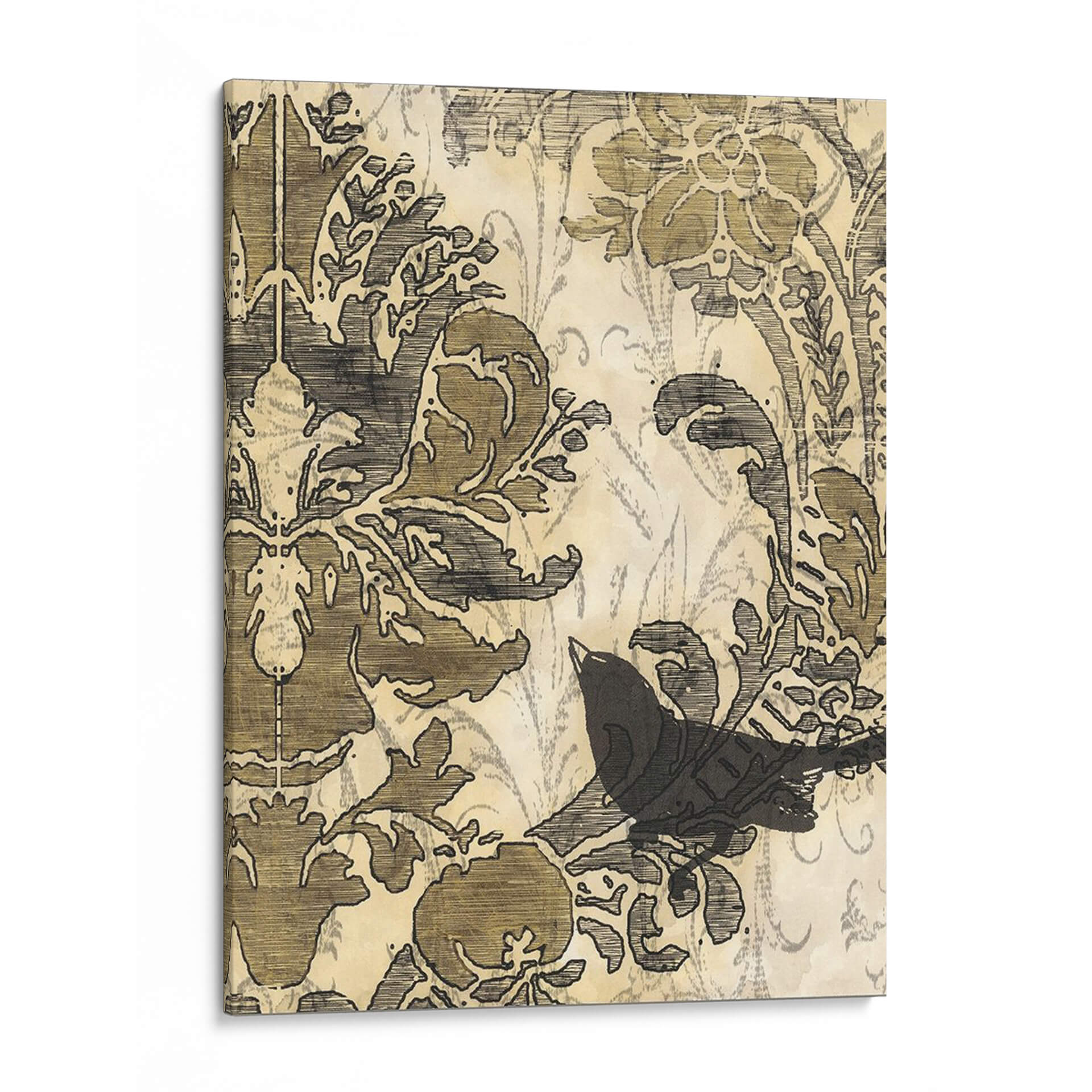 Sumérgete en la elegancia atemporal de "Damasco Songbird I", una obra de arte que evoca serenidad y sofisticación. Este cuadro decorativo, obra de la talentosa June Erica Vess, presenta un exquisito diseño que combina elementos botánicos y un delicado pájaro en silueta. La paleta de colores, dominada por tonos tierra, ocres y detalles en negro, crea una atmósfera de calma y distinción, perfecta para añadir un toque de clase a cualquier espacio. Los intrincados patrones damascos de fondo, ejecutados con un estilo que recuerda a un grabado antiguo o una acuarela sutil, contrastan maravillosamente con la audacia del pájaro oscuro posado entre la vegetación estilizada. La composición es equilibrada, guiando la mirada a través de la pieza y permitiendo apreciar tanto el detalle de los elementos florales como la figura central del ave. Ideal para salones, dormitorios o estudios que buscan un acento de naturaleza y arte clásico con un giro contemporáneo. "Damasco Songbird I" es más que una simple decoración; es una invitación a la contemplación y un reflejo de buen gusto, ideal para quienes aprecian el arte detallado y la armonía cromática en su entorno.