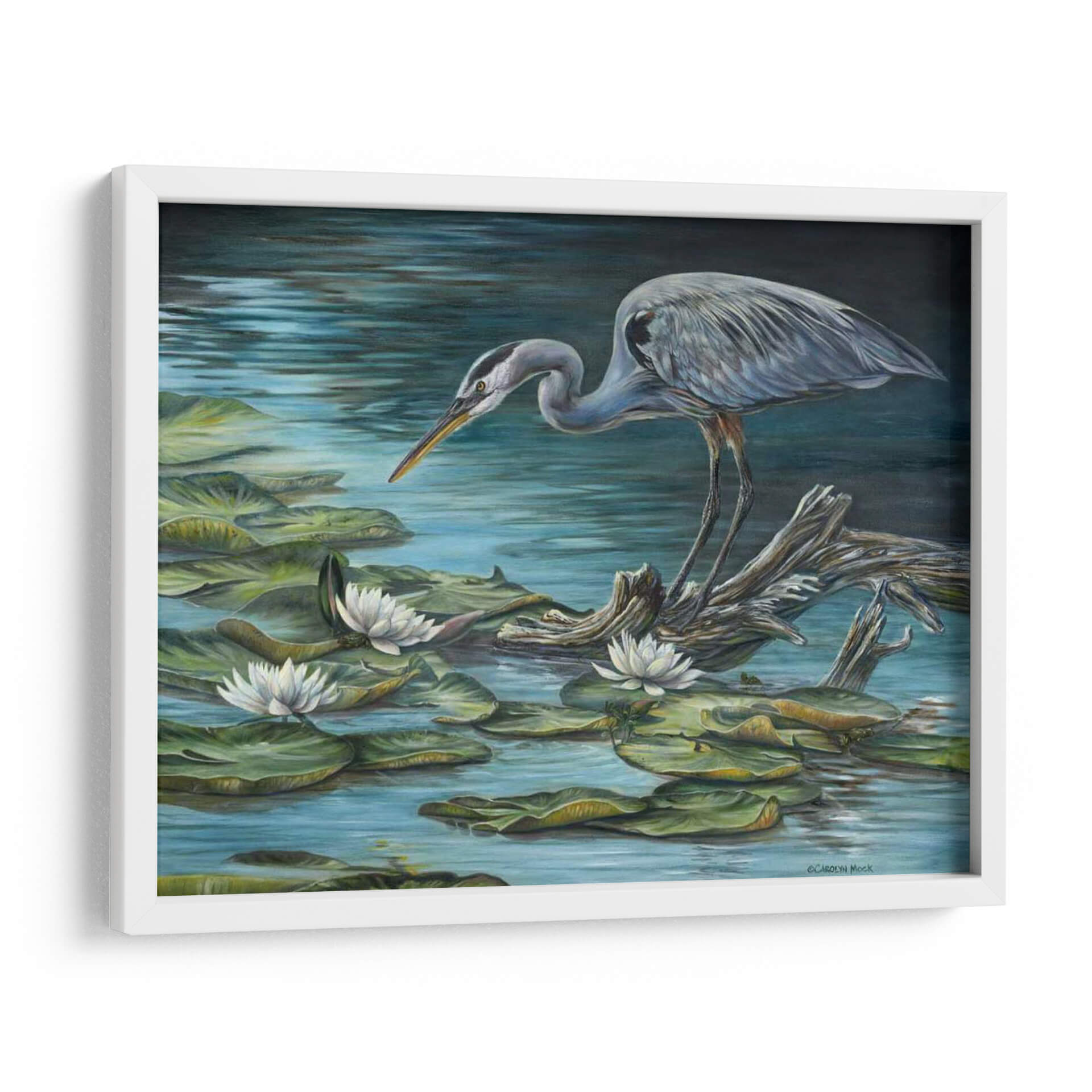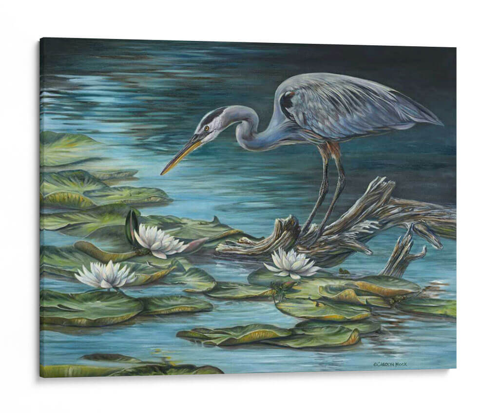 Captura la serenidad de la naturaleza en tu hogar con "Heron Haven", una obra de arte que evoca paz y tranquilidad. Este cuadro decorativo presenta una garza real posada elegantemente sobre un tronco a la deriva, rodeada de lirios acuáticos florecientes en un estanque sereno. Los tonos azules profundos del agua contrastan maravillosamente con los verdes exuberantes de las hojas de nenúfar y el blanco puro de las flores, creando una atmósfera de calma y contemplación. La detallada pincelada del artista Carolyn Mock da vida a las plumas de la garza y a las texturas del agua, invitando al espectador a sumergirse en esta escena natural. Este impresionante cuadro es ideal para cualquier espacio que busque un toque de naturaleza y serenidad, como dormitorios, salas de estar o estudios. Transforma tu ambiente con la belleza atemporal de la vida silvestre y la delicadeza de este paisaje acuático. Añade una pieza que hable de calma y conexión con el entorno natural.