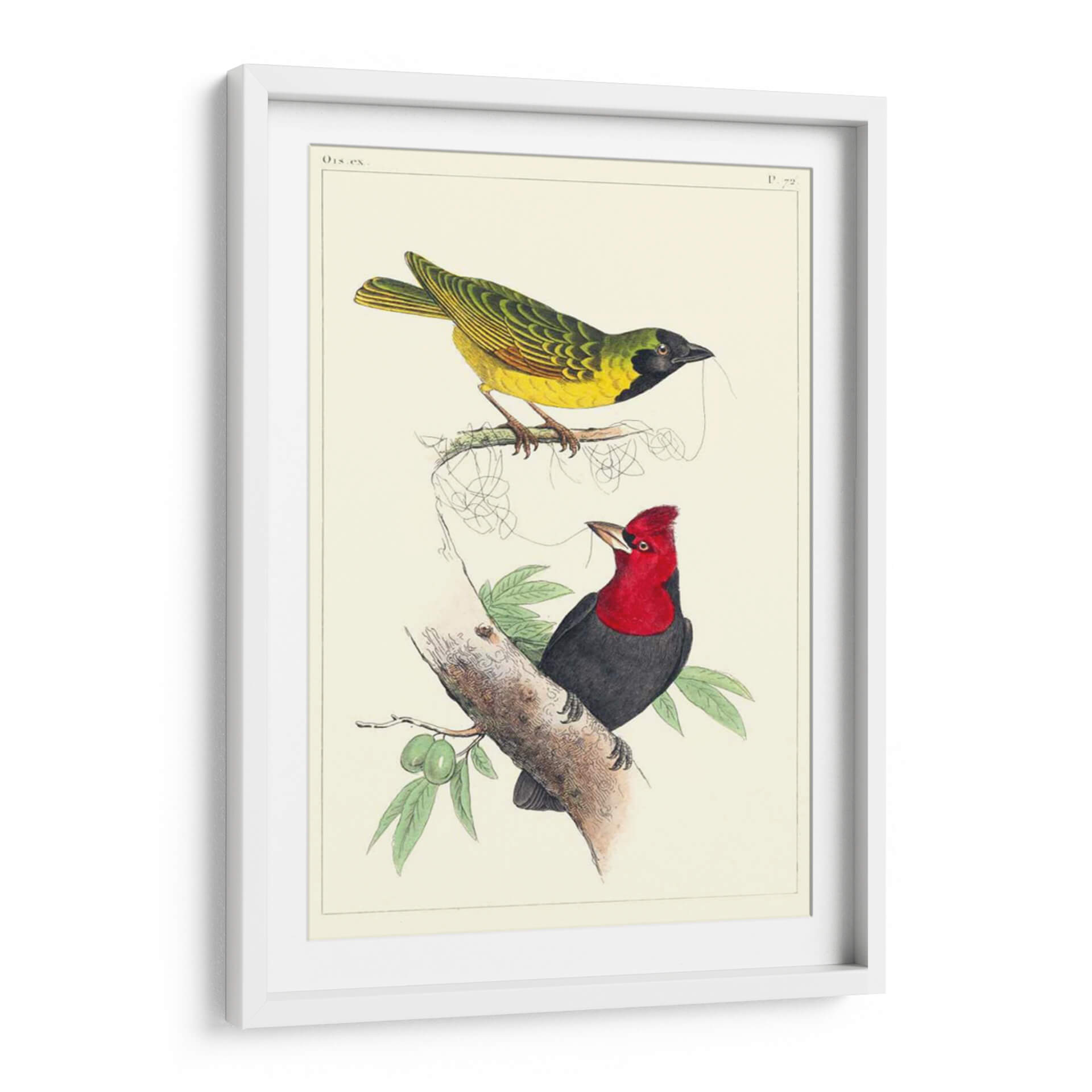 Embellece tu hogar con la elegancia atemporal de "Lemaire Birds II", una obra de arte que captura la belleza de la naturaleza con un detalle exquisito. Este cuadro decorativo presenta dos aves en un entorno natural, una con plumaje vibrante en tonos verdes y amarillos, y la otra con un llamativo contraste de cabeza roja y cuerpo oscuro. La delicada ilustración evoca una sensación de calma y admiración por el mundo natural, con trazos precisos que resaltan la textura de las plumas y la corteza del árbol. La paleta de colores suaves, dominada por verdes, amarillos y rojos intensos, junto con el fondo neutro, crea una atmósfera serena y sofisticada. El estilo de ilustración clásica, reminiscentes de estudios ornitológicos, aporta un toque de refinamiento y conocimiento. Este cuadro es perfecto para quienes buscan añadir un elemento de la naturaleza y la belleza orgánica a sus espacios, ya sea en una sala de estar, un estudio o un dormitorio. Su diseño detallado y su temática de aves lo convierten en una pieza versátil que complementa decoraciones tanto clásicas como contemporáneas, aportando vida y color a cualquier pared.