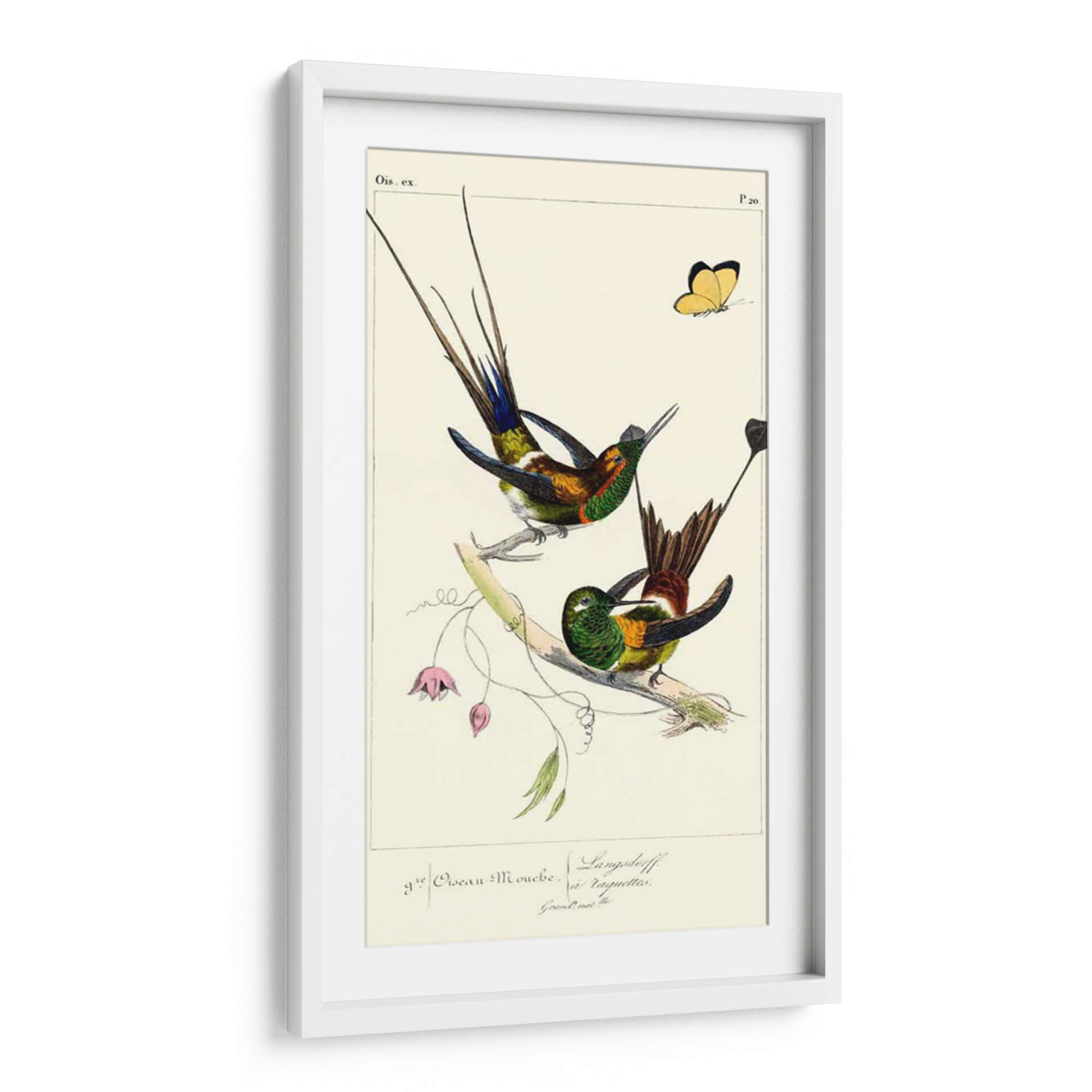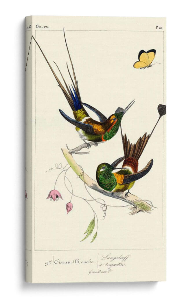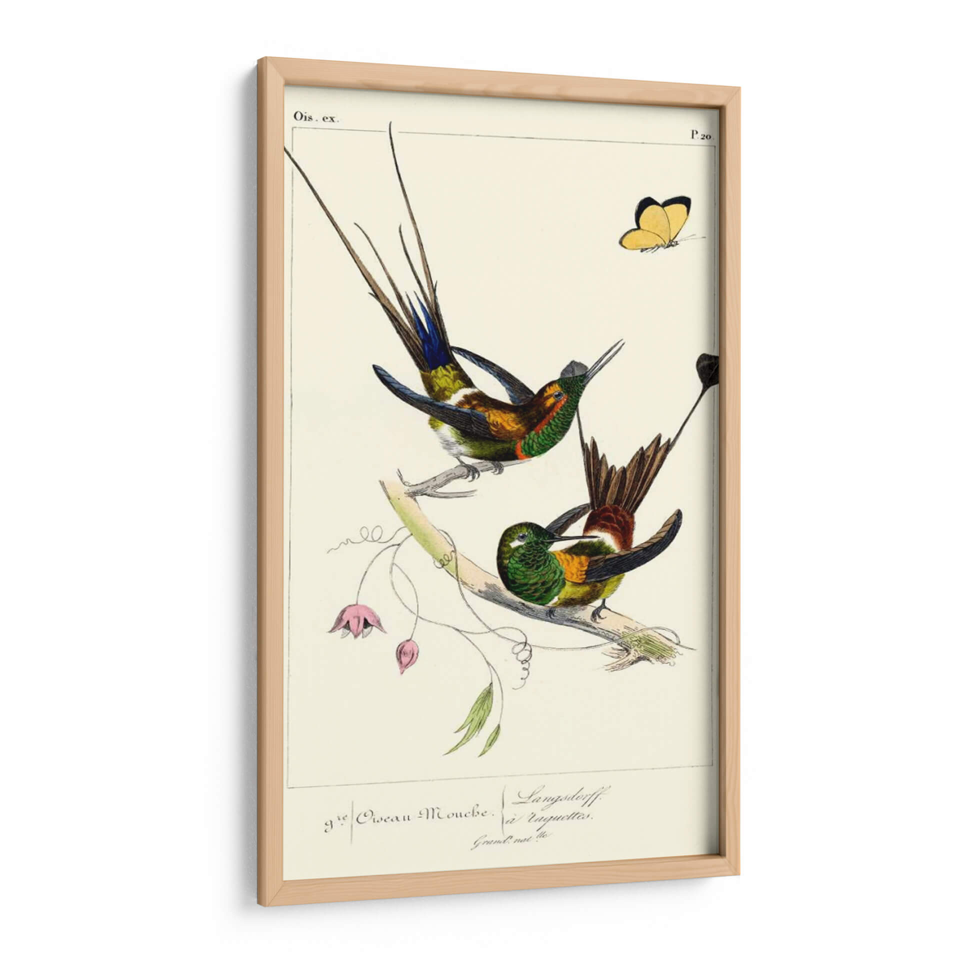 Captura la delicadeza y la belleza de la naturaleza con este exquisito cuadro decorativo 'Lemaire Hummingbirds Iv' de C.L. Lemaire. La obra presenta un par de colibríes detallados, posados sobre una rama con sutiles toques de flores rosadas y hojas verdes, acompañados por una mariposa amarilla que añade un elemento de fantasía al conjunto. Los plumajes de los colibríes despliegan una rica paleta de verdes esmeralda, dorados vibrantes y acentos de azul y naranja, contrastando bellamente con el fondo de tono marfil, que evoca una sensación de calma y elegancia atemporal. El estilo de ilustración científica, propio de las obras de Lemaire, aporta un aire de autenticidad y refinamiento. Este cuadro decorativo es ideal para añadir un toque de sofisticación natural a salones, dormitorios o estudios, creando un punto focal sereno y lleno de vida. Su detallada representación y la delicadeza de los colores lo convierten en una pieza versátil, perfecta para interiores clásicos o contemporáneos que buscan una conexión con la vida silvestre y el arte botánico.