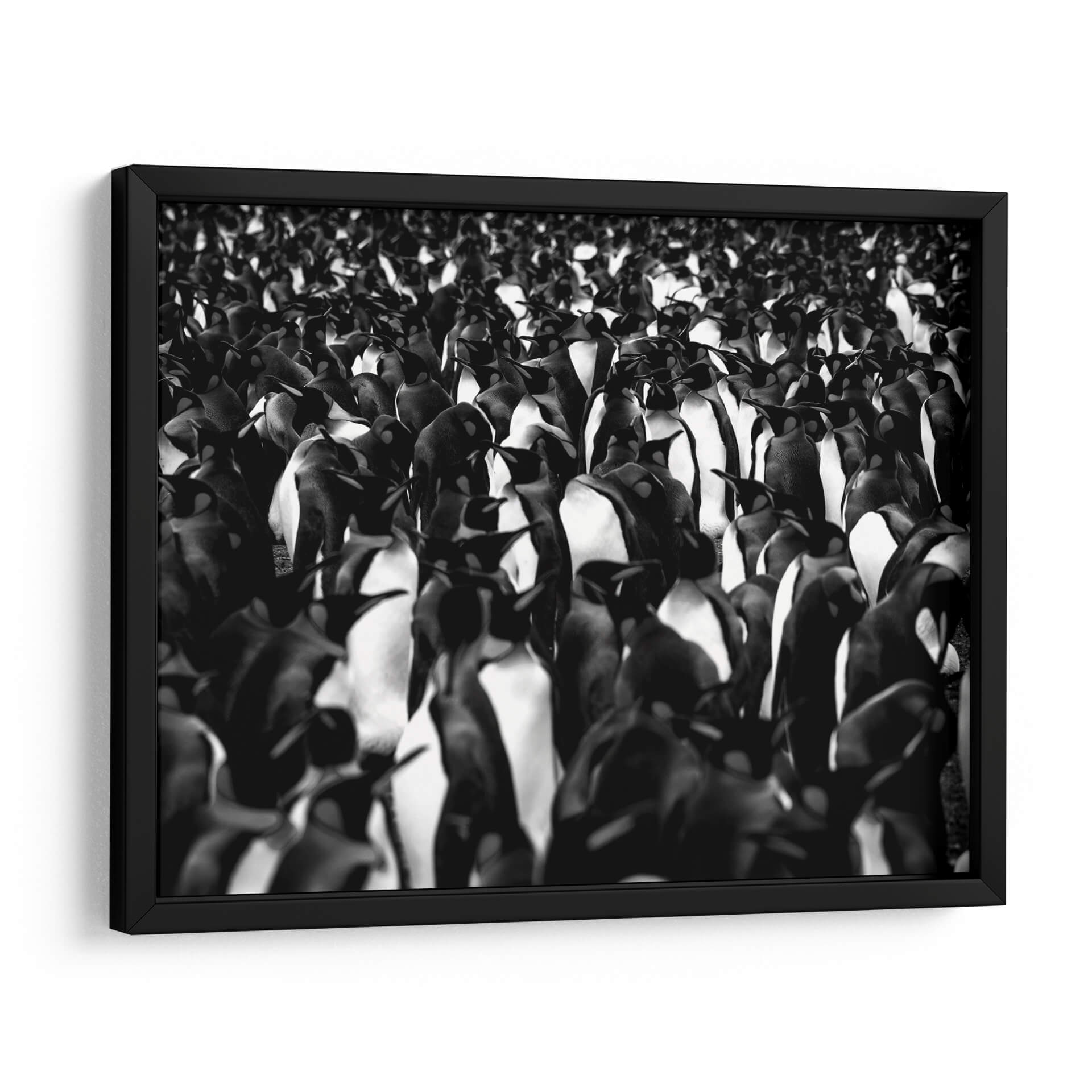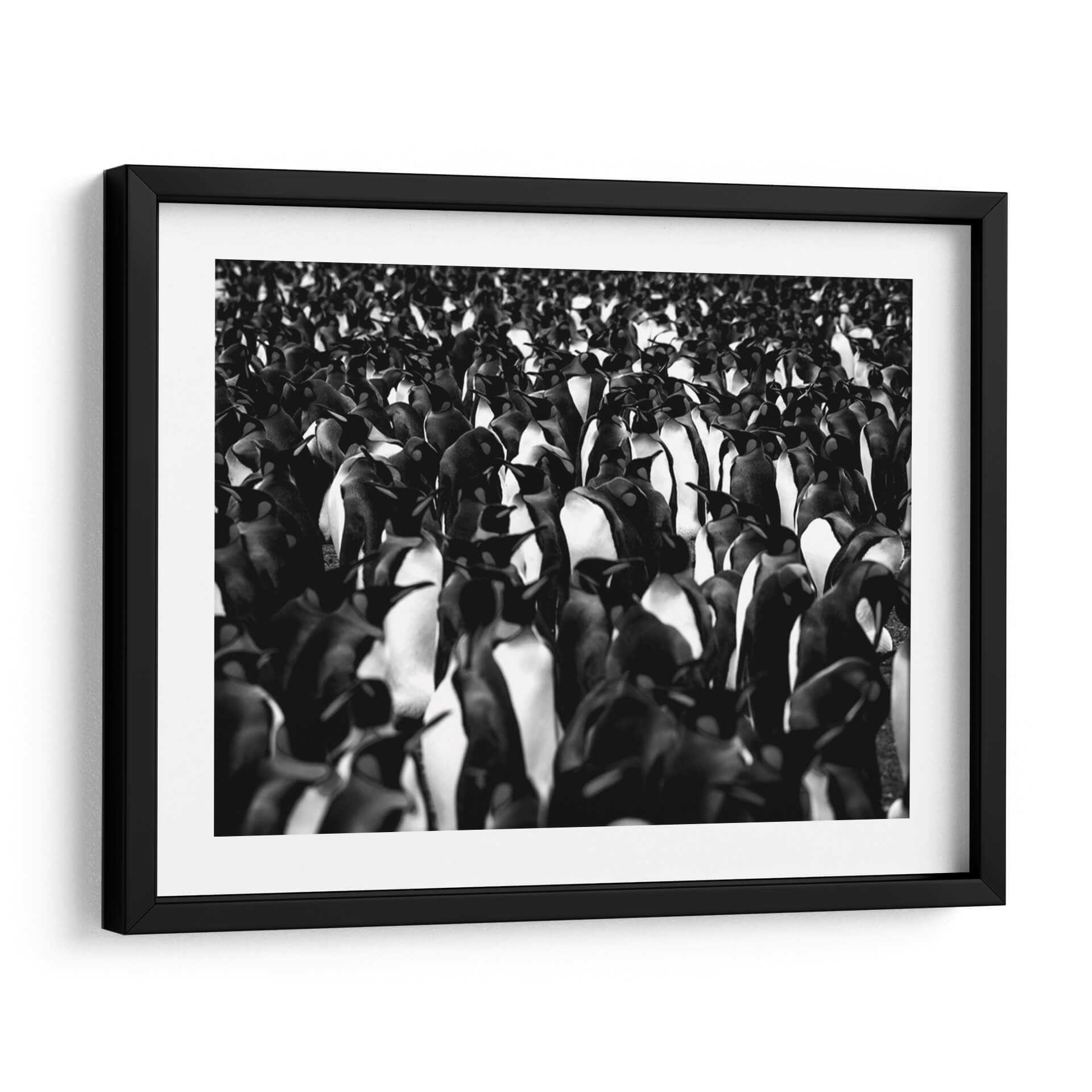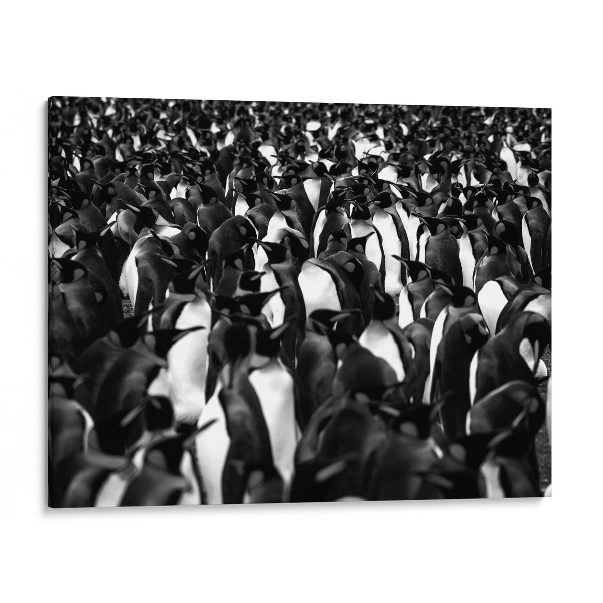 Sumérgete en la cautivadora visión de "Mil pingüinos" de Carlos Montaño, una obra de arte que captura la esencia de la vida salvaje con una estética moderna y impactante. Esta pieza, realizada en una distintiva paleta monocromática en blanco y negro, presenta una multitud densa y cautivadora de pingüinos, cuyas formas se entrelazan creando una textura visual fascinante. La composición se centra en la figura colectiva, generando una sensación de unidad y a la vez de individualidad dentro de la masa. Los contrastes entre luces y sombras aportan profundidad y dramatismo, haciendo que cada pingüino, incluso en la distancia, cobre vida propia. El estilo fotográfico y el uso del blanco y negro confieren a la obra una elegancia atemporal, ideal para espacios que buscan un toque de sofisticación y naturaleza. "Mil pingüinos" es perfecta para añadir un punto focal intrigante a un salón moderno, un estudio o una oficina, evocando la fuerza y la belleza de la naturaleza en su estado más puro. Este cuadro decorativo invita a la contemplación, ofreciendo una perspectiva única sobre la coexistencia y la resiliencia. Su versatilidad cromática permite integrarla fácilmente en diversas decoraciones, aportando carácter y distinción a cualquier ambiente.
