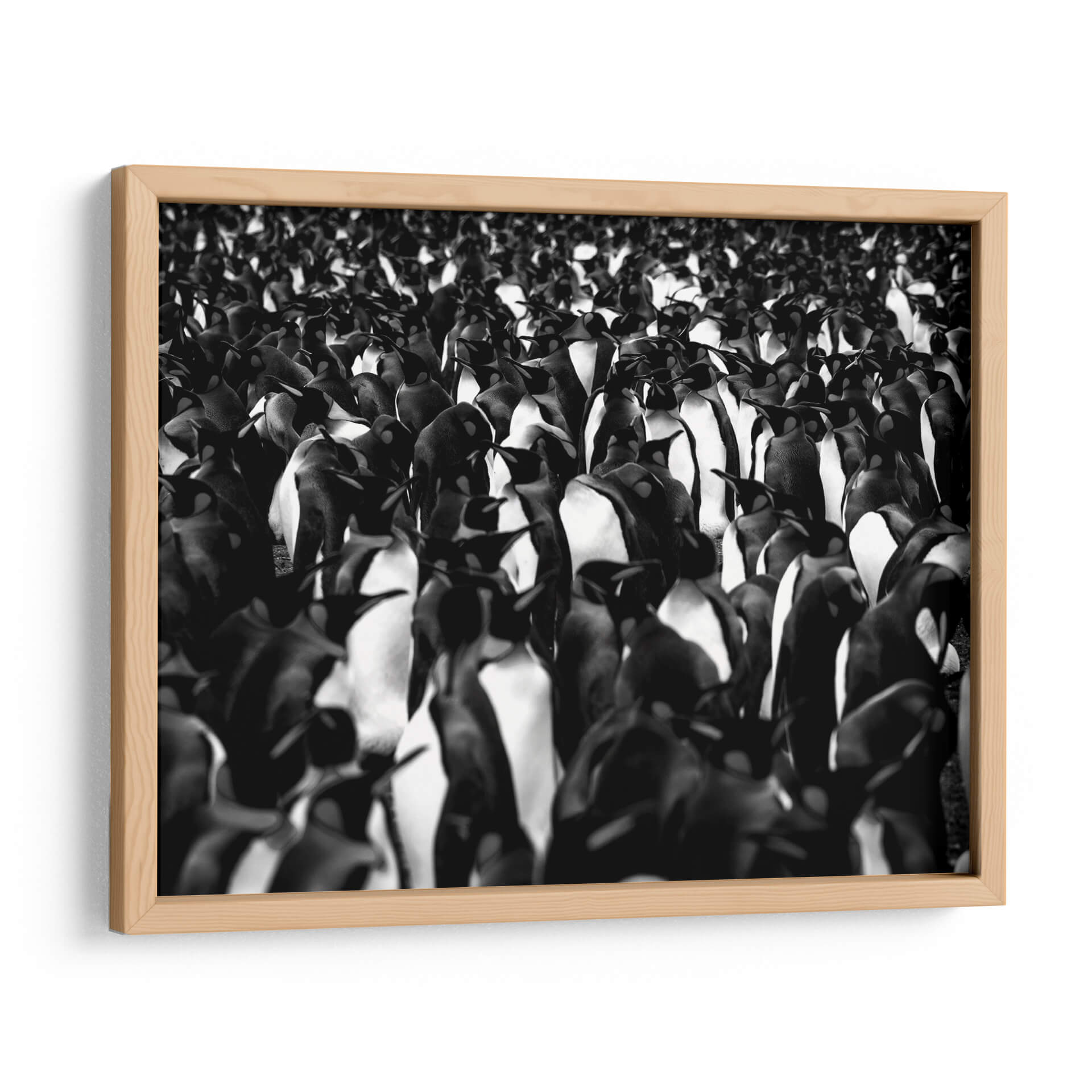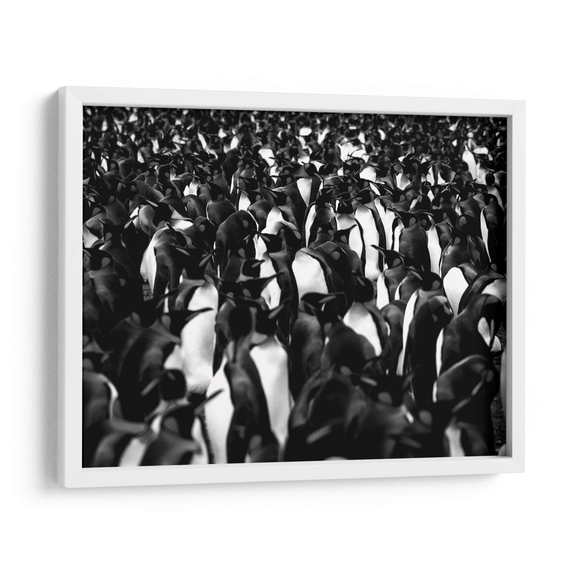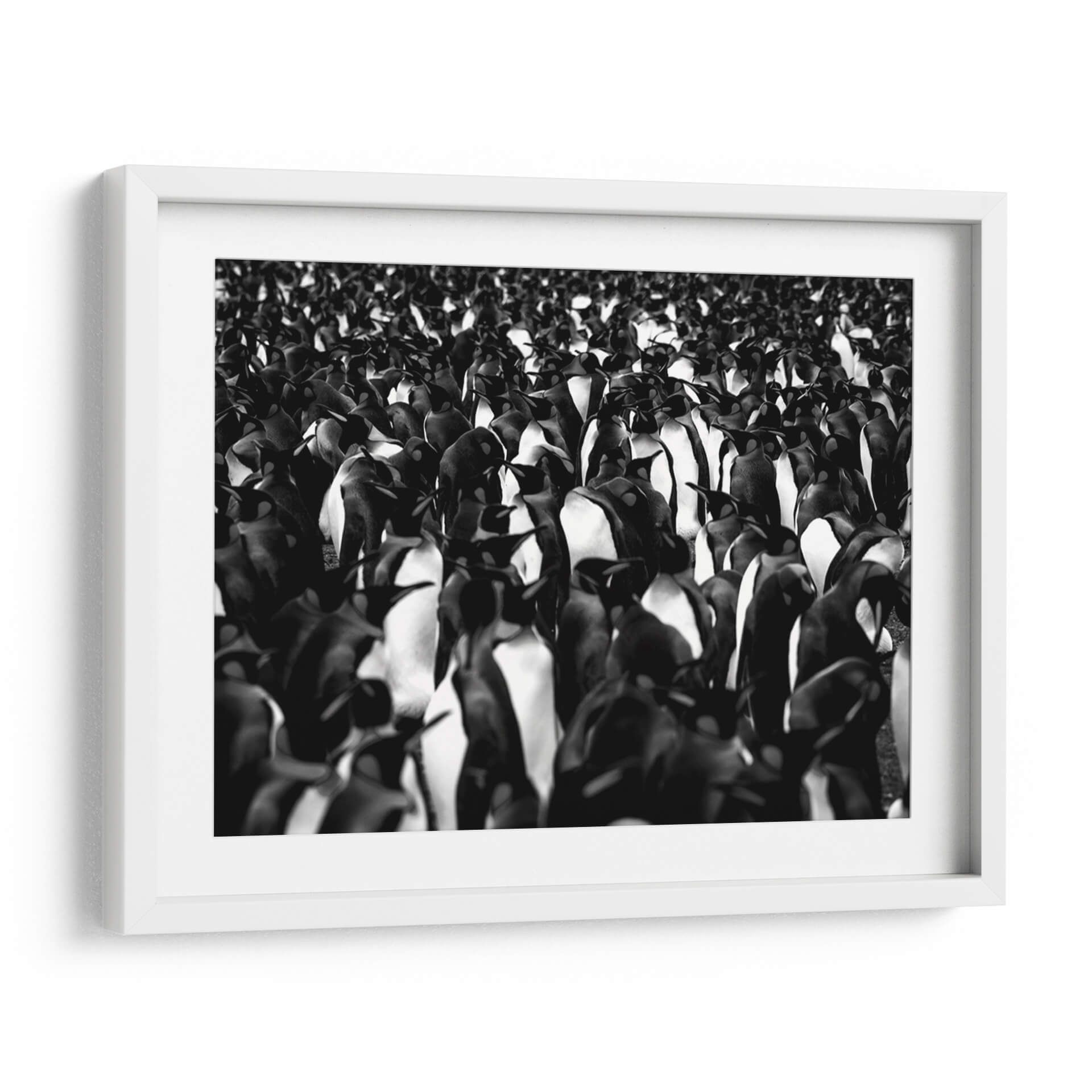 Sumérgete en la cautivadora visión de "Mil pingüinos" de Carlos Montaño, una obra de arte que captura la esencia de la vida salvaje con una estética moderna y impactante. Esta pieza, realizada en una distintiva paleta monocromática en blanco y negro, presenta una multitud densa y cautivadora de pingüinos, cuyas formas se entrelazan creando una textura visual fascinante. La composición se centra en la figura colectiva, generando una sensación de unidad y a la vez de individualidad dentro de la masa. Los contrastes entre luces y sombras aportan profundidad y dramatismo, haciendo que cada pingüino, incluso en la distancia, cobre vida propia. El estilo fotográfico y el uso del blanco y negro confieren a la obra una elegancia atemporal, ideal para espacios que buscan un toque de sofisticación y naturaleza. "Mil pingüinos" es perfecta para añadir un punto focal intrigante a un salón moderno, un estudio o una oficina, evocando la fuerza y la belleza de la naturaleza en su estado más puro. Este cuadro decorativo invita a la contemplación, ofreciendo una perspectiva única sobre la coexistencia y la resiliencia. Su versatilidad cromática permite integrarla fácilmente en diversas decoraciones, aportando carácter y distinción a cualquier ambiente.