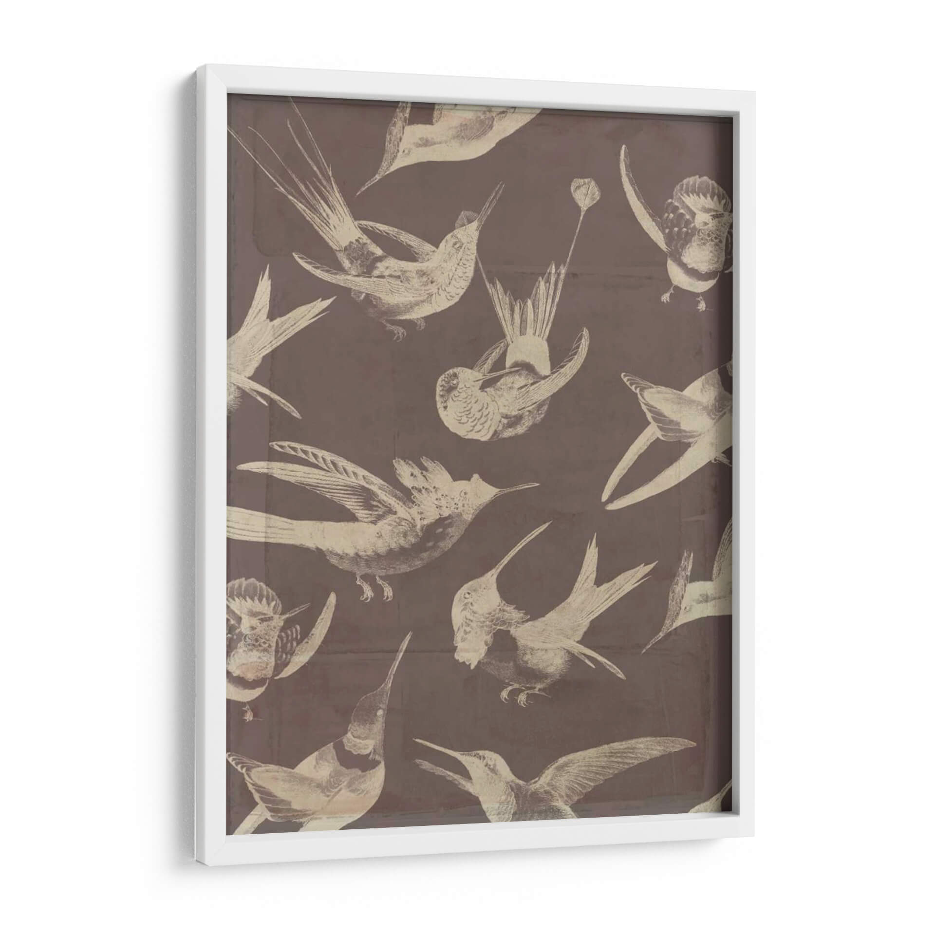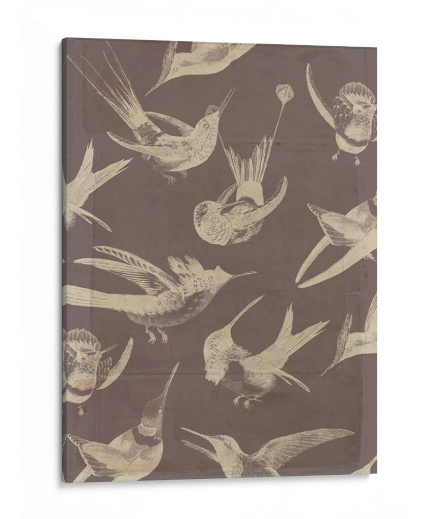 Sumérgete en la delicadeza y el movimiento con "Patrón de Aves IV", una cautivadora obra de arte de Jennifer Goldberger. Este cuadro decorativo presenta una composición encantadora de varias aves en pleno vuelo, capturadas con un estilo que evoca las ilustraciones científicas clásicas, pero con un toque contemporáneo. La paleta de colores, dominada por tonos sepia y un fondo sutilmente texturizado en tono malva, crea una atmósfera serena y nostálgica, ideal para añadir un toque de elegancia natural a cualquier espacio. Cada ave está representada con un detalle exquisito en sus plumas y siluetas, creando un patrón visualmente rico que atrae la mirada y fomenta la contemplación. La disposición dinámica de las aves, algunas en picada y otras ascendiendo, aporta una sensación de vitalidad y libertad. "Patrón de Aves IV" es la elección perfecta para quienes buscan infundir sus hogares u oficinas con una sensación de tranquilidad, belleza natural y un aprecio por el mundo aviar. Este cuadro es una pieza versátil que complementa una amplia gama de estilos decorativos, desde el clásico hasta el ecléctico, añadiendo un punto focal distintivo y un aire de sofisticación. Descubre la armonía y el encanto de la naturaleza a través de esta impresionante creación artística.