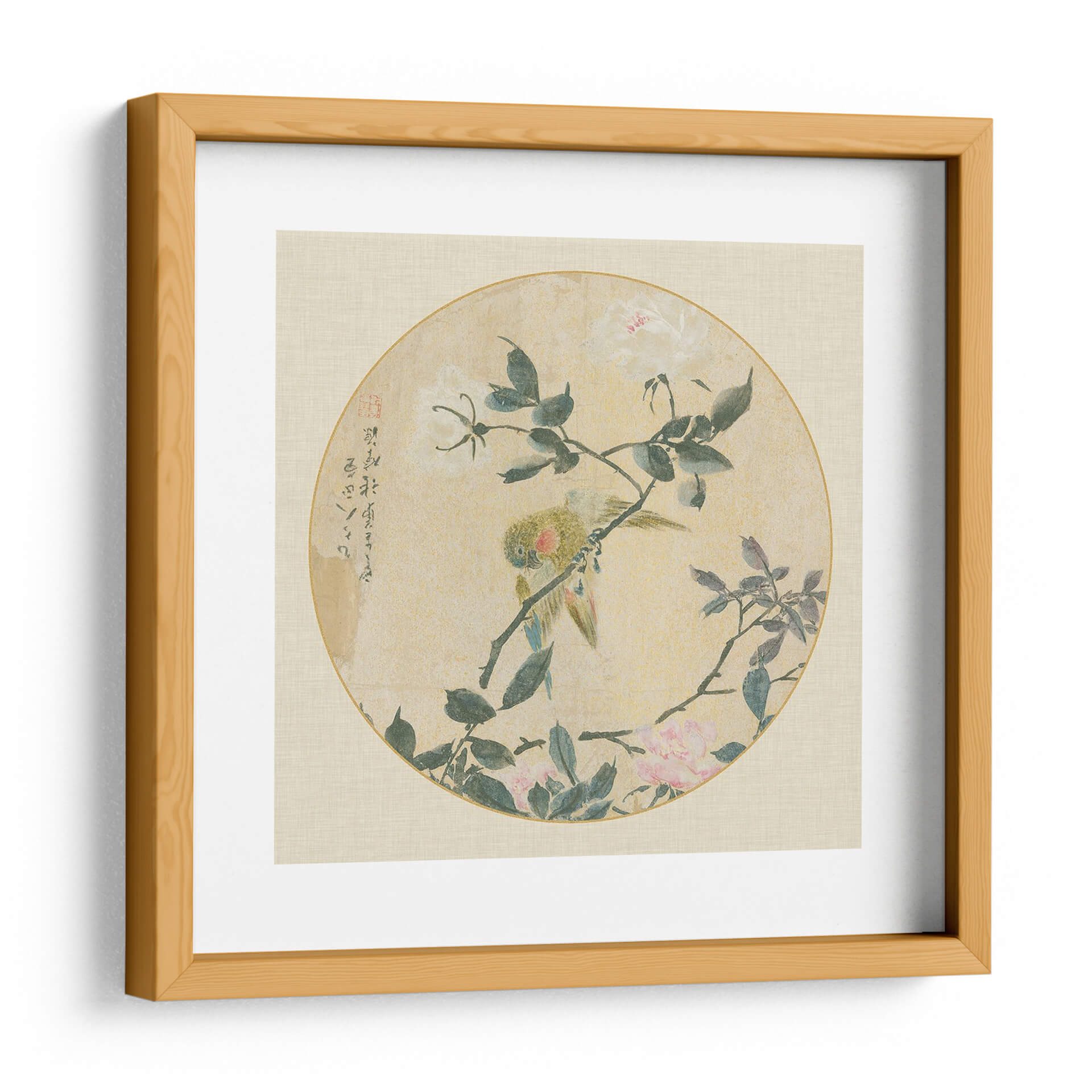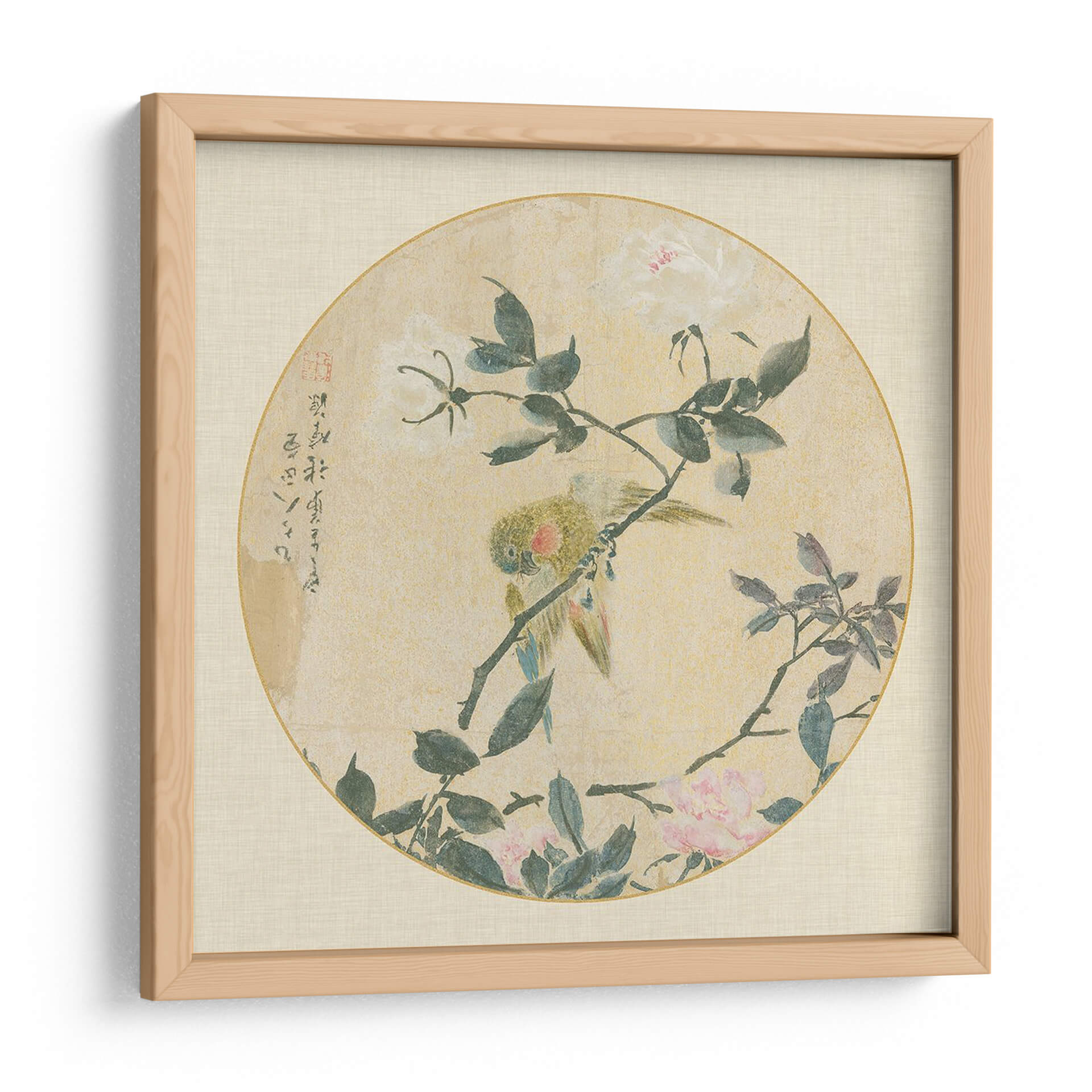 Sumérgete en la serenidad y la delicadeza con nuestro cuadro decorativo "Seda De Aves Oriental I". Esta exquisita obra de arte captura la esencia de la naturaleza con un estilo que evoca la pintura tradicional asiática. La pieza presenta un pájaro vibrante posado en una rama florida, con delicadas pinceladas que dan vida a las hojas en tonos verdes y a las sutiles flores rosadas. La paleta de colores, dominada por tonos tierra, amarillos suaves y acentos de verde y rosa, crea una atmósfera de calma y armonía. El diseño circular enmarca la escena de manera elegante, invitando a la contemplación. Este cuadro es ideal para añadir un toque de sofisticación y tranquilidad a cualquier espacio, ya sea en tu sala de estar, dormitorio u oficina. Su estilo artístico, inspirado en la sutileza oriental, lo convierte en una pieza versátil que complementa tanto decoraciones clásicas como contemporáneas, aportando un aire de refinamiento y conexión con la naturaleza. Transforma tu hogar con esta obra que celebra la belleza efímera y la paz interior, un verdadero tesoro visual para tu colección de arte de pared.