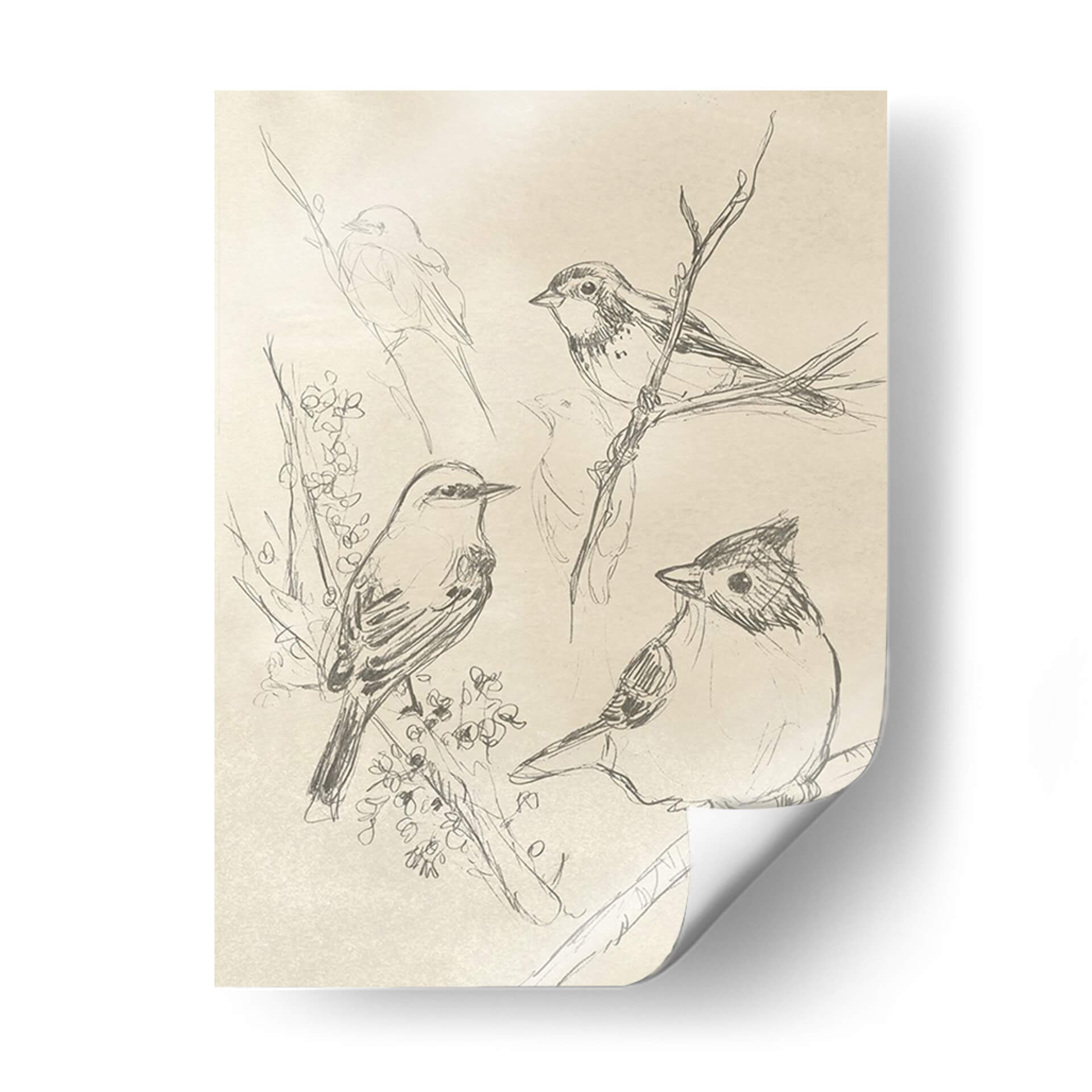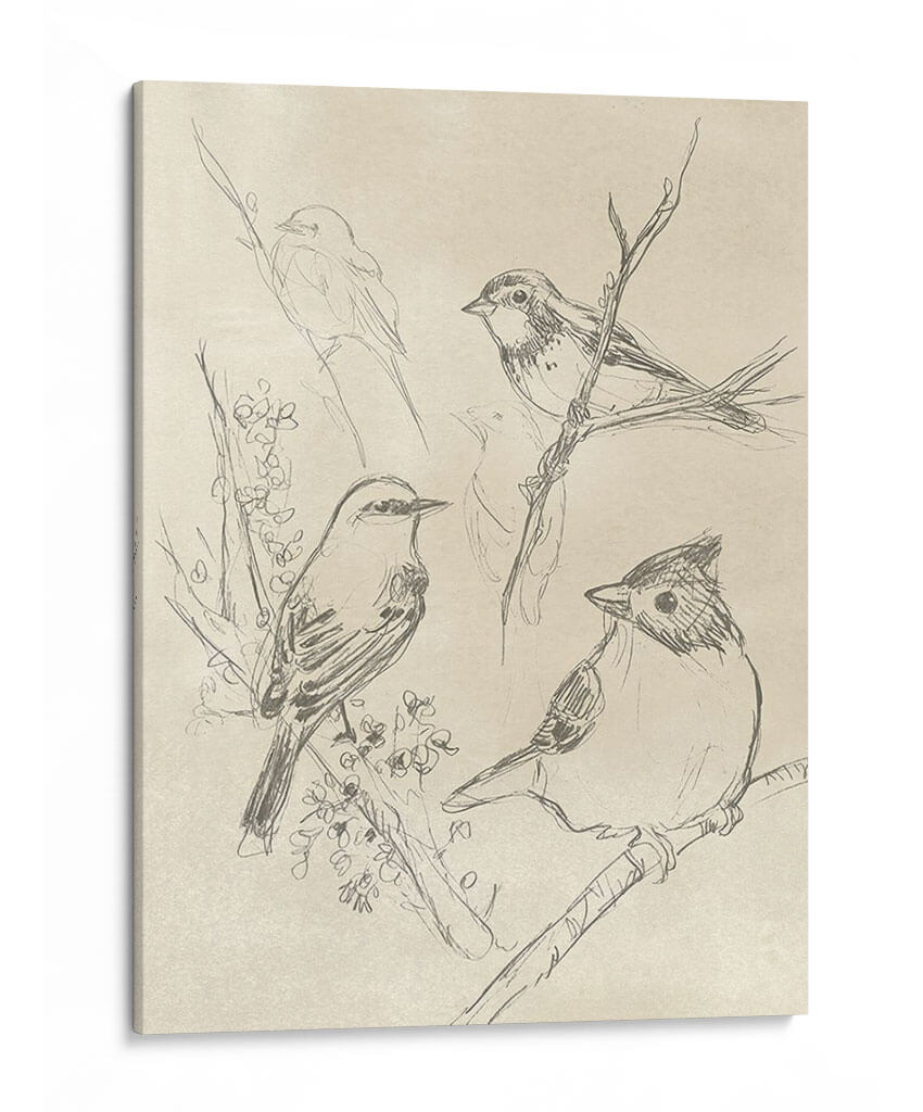 Sumérgete en la delicadeza y el encanto natural con 'Songbird Vintage Boceto I', una obra de arte que captura la esencia de las aves en su hábitat. Este cuadro decorativo presenta una composición de bocetos a lápiz de pájaros posados en ramas, con un estilo que evoca los estudios clásicos de la naturaleza. La paleta de colores neutros y suaves, dominada por tonos sepia y beige, crea una atmósfera de tranquilidad y nostalgia, perfecta para añadir un toque de serenidad a cualquier espacio. Cada trazo del artista June Erica Vess transmite la fragilidad y la vitalidad de estas criaturas, invitando a la contemplación. Ideal para salones, dormitorios o estudios que buscan una conexión con lo orgánico y lo atemporal. Este lienzo es una invitación a redescubrir la belleza en los detalles y a infundir calma en tu hogar u oficina. Transforma tu pared en una ventana a un mundo de paz y elegancia sutil con esta pieza única de arte contemporáneo.