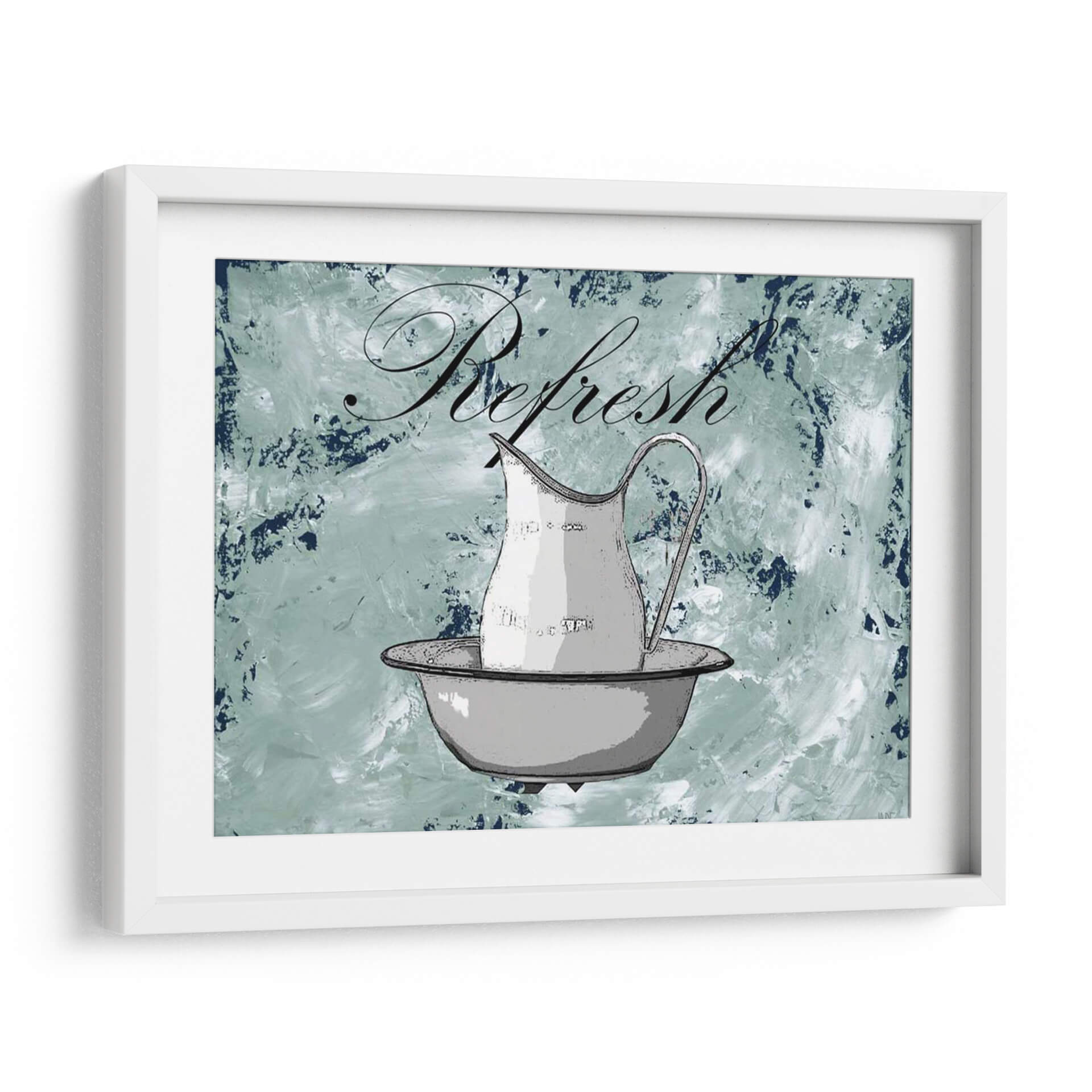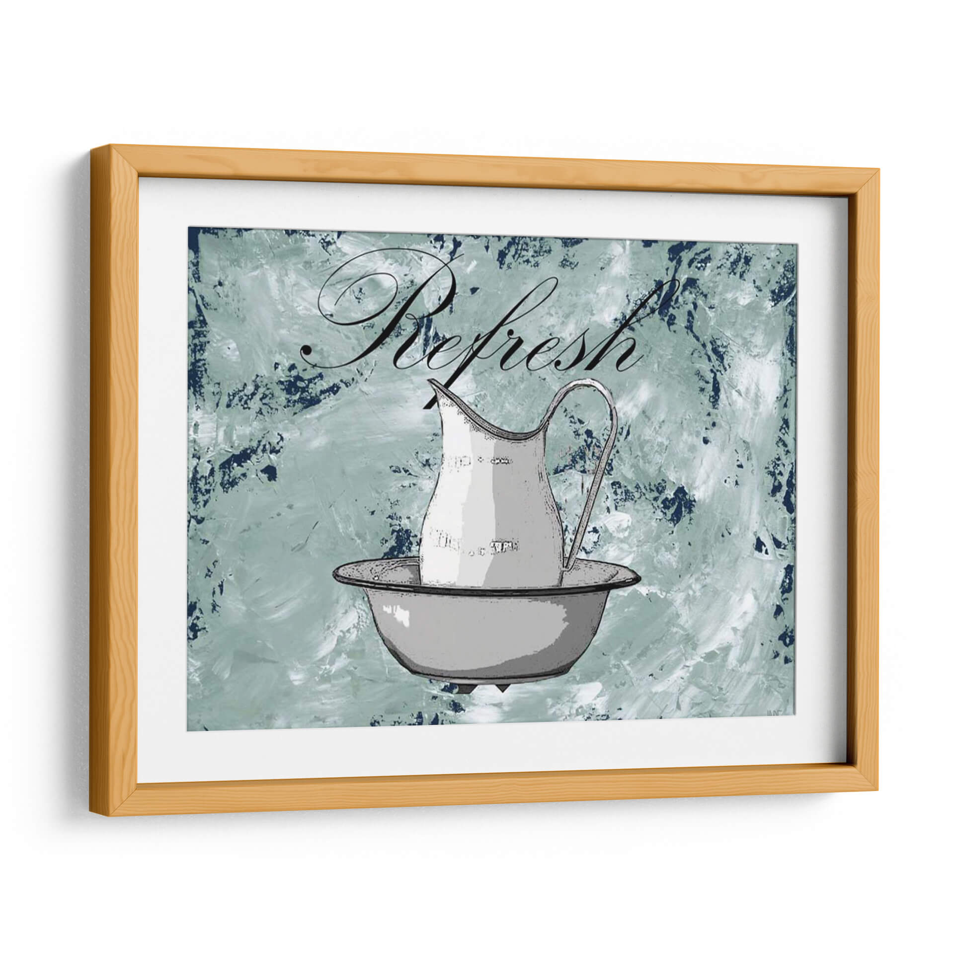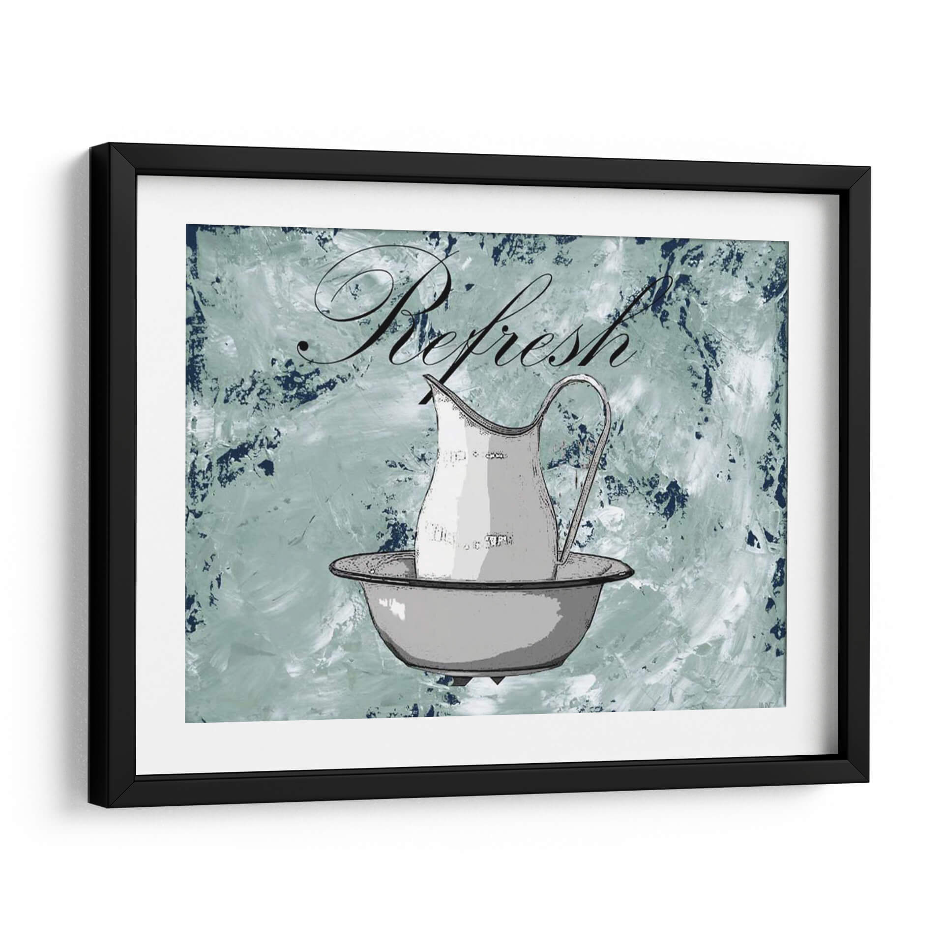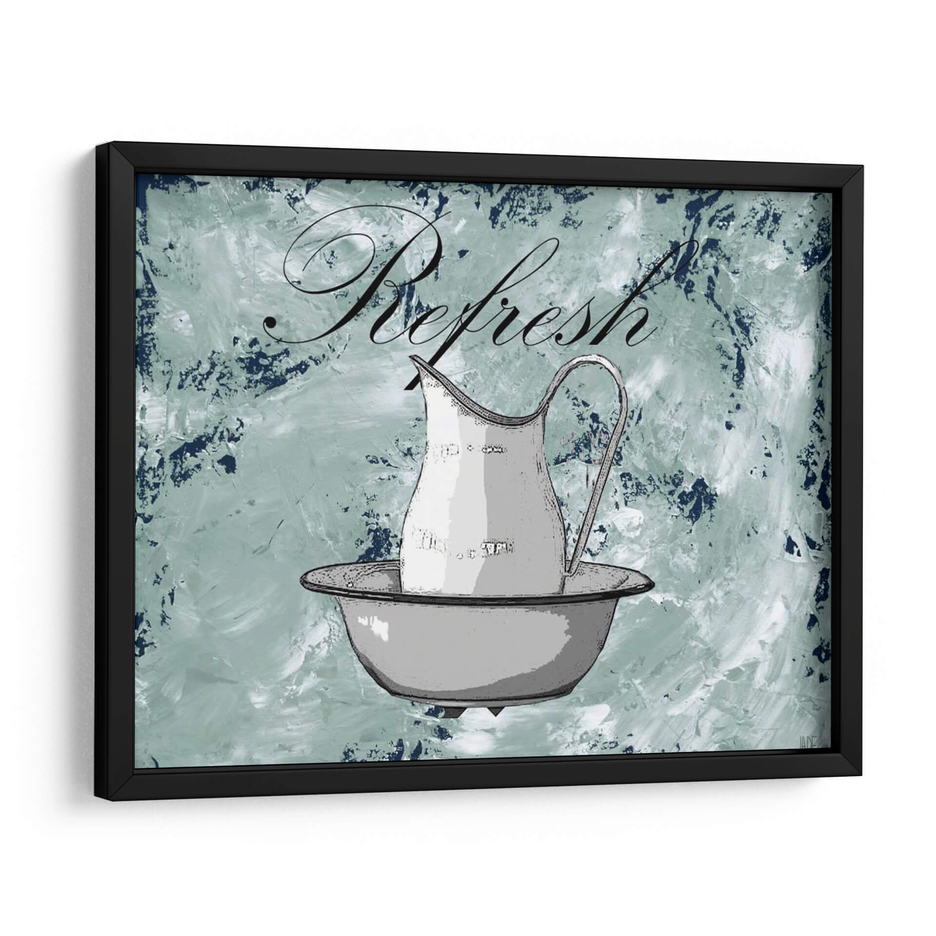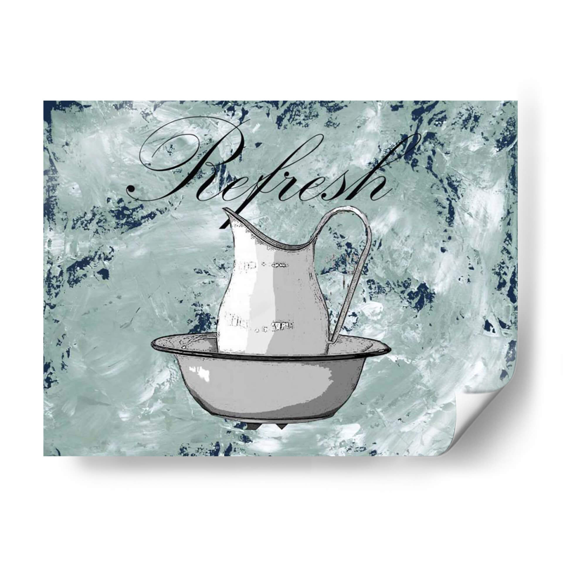 Captura la esencia de la serenidad y la renovación con esta cautivadora obra de arte, 'Relax-Refresco De E' de Jade Reynolds. La pieza presenta un jarrón clásico sobre una palangana, ambos representados en un estilo que evoca los grabados antiguos o dibujos a lápiz, pero con una ejecución digital moderna. El fondo texturizado, en tonos suaves de verde azulado y salpicado de vibrantes toques de azul marino, crea una atmósfera sutilmente dinámica que contrasta con la quietud del sujeto principal. La palabra "Refresh" (Refresco), escrita en una elegante caligrafía en negro, refuerza el tema de la calma y la limpieza. Este cuadro decorativo es perfecto para añadir un toque de tranquilidad y estilo a cualquier espacio, ya sea un baño moderno, una sala de estar relajante o un dormitorio sereno. Su paleta de colores versátil y su composición centrada lo convierten en una adición armoniosa a decoraciones de estilo costero, rústico o contemporáneo. Descubre cómo este cuadro puede transformar tu hogar en un santuario de paz y frescura.