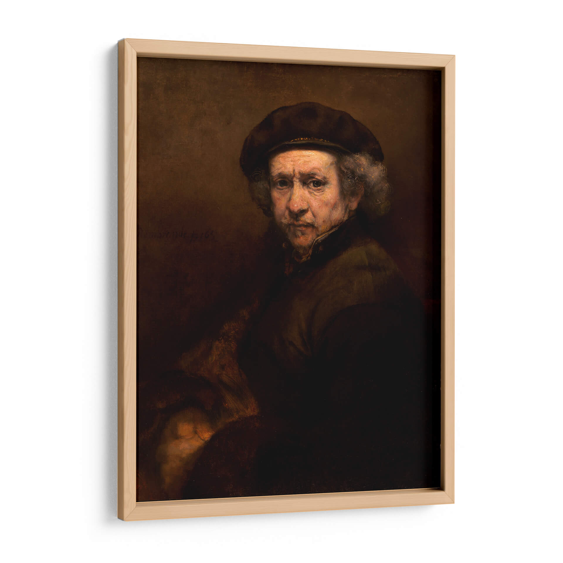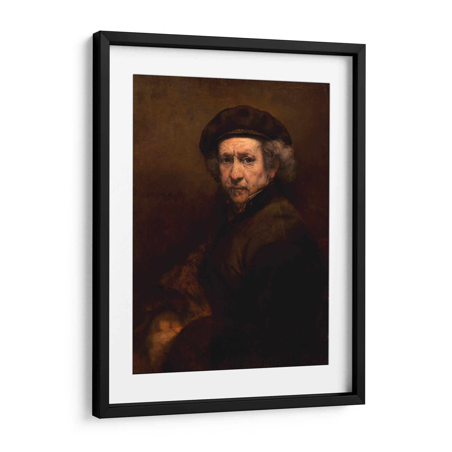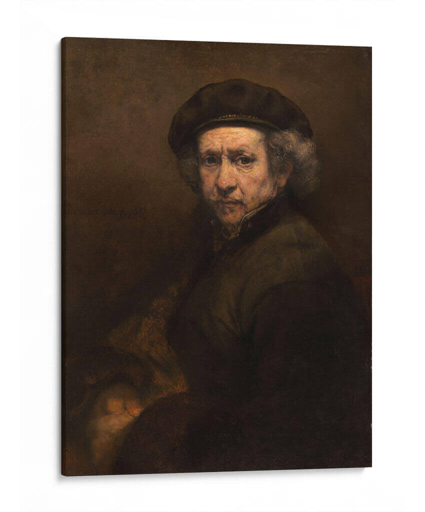 Sumérgete en la profunda introspección de Rembrandt con este cautivador autorretrato de 1659, una obra maestra que trasciende el tiempo para adornar tus espacios con una atmósfera de sabiduría y experiencia. Este cuadro decorativo captura la esencia del maestro holandés, presentando un rostro marcado por la vida, pero con una mirada penetrante que parece dialogar directamente con el espectador. La rica paleta de tonos tierra y marrones profundos, junto con el uso magistral del claroscuro, crea un juego de luces y sombras que añade dramatismo y realismo a la composición. La textura sutil y el detalle en el ropaje y el gorro berenjena invitan a una contemplación prolongada, transmitiendo una sensación de calma reflexiva y profunda humanidad. Ideal para tu estudio, biblioteca o sala de estar, este retrato clásico aportará un toque de elegancia atemporal y sofisticación. Transforma tu hogar en una galería personal con esta pieza icónica del arte barroco, perfecta para aquellos que aprecian la maestría técnica y la profundidad emocional en la decoración de paredes.
