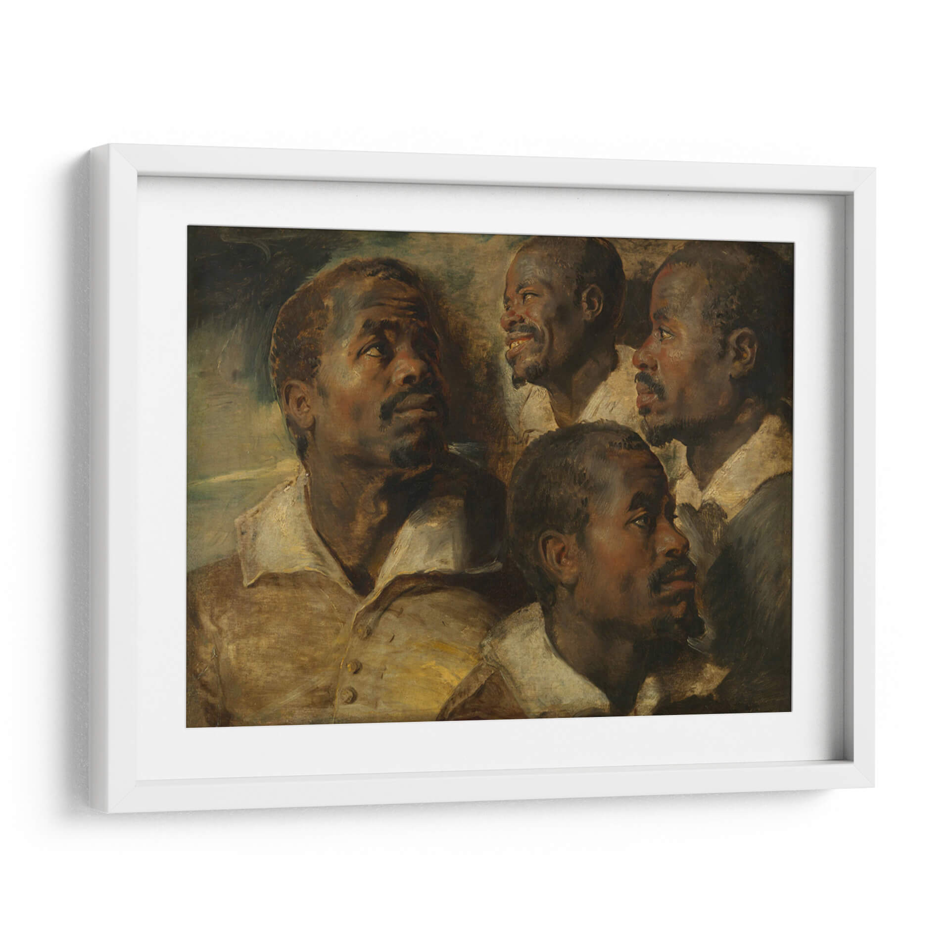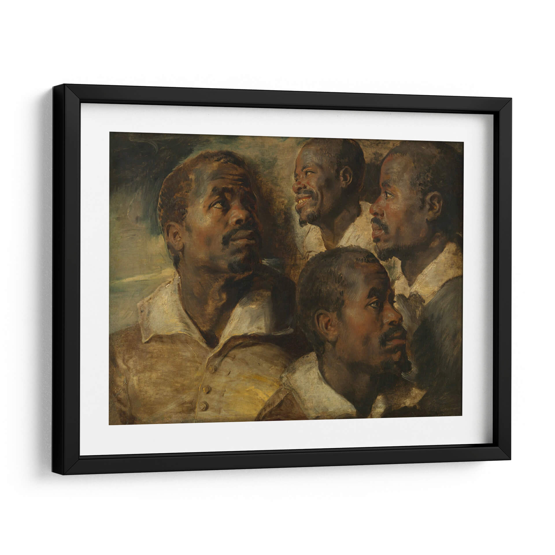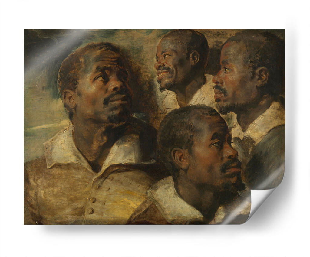 Sumérgete en la profundidad expresiva de "Cuatro estudios de una cabeza de un moro", una obra maestra que captura la intensidad y la humanidad a través de la maestría de Peter Paul Rubens. Este cuadro decorativo presenta un estudio detallado de rostros masculinos, cada uno con una expresión única que invita a la contemplación. La paleta de colores cálidos, dominada por tonos tierra y dorados, junto con un juego de luces y sombras dramático, confiere a la pieza una atmósfera rica y envolvente. El estilo barroco se manifiesta en la pincelada suelta y la composición dinámica, creando una sensación de movimiento y vida. Ideal para añadir un toque de clasicismo y profundidad a tu sala de estar, estudio u oficina, esta obra trasciende el tiempo, ofreciendo una conexión emocional y un punto focal de gran carácter. Es una pieza que inspira diálogo y aprecio por el arte clásico, aportando elegancia y sofisticación a cualquier espacio moderno o tradicional.