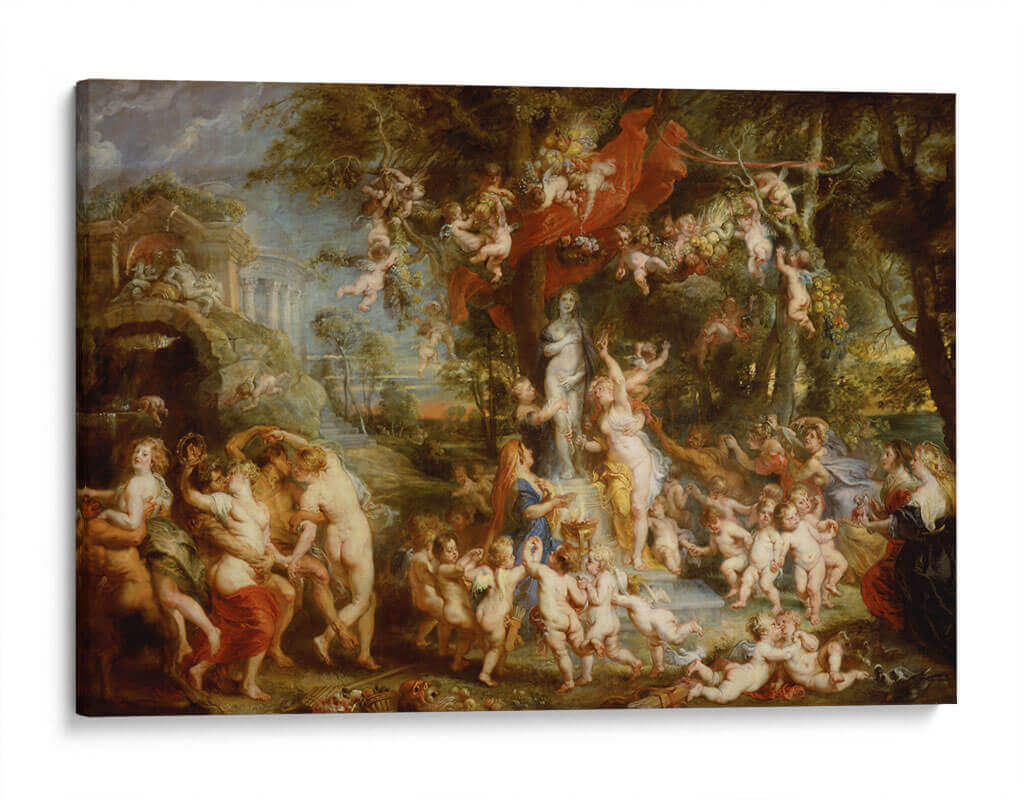 Sumérgete en la opulencia y el regocijo de "El banquete de Venus", una obra maestra de Peter Paul Rubens, reinterpretada para tu espacio. Este cuadro decorativo captura la esencia del Barroco con una vibrante escena mitológica llena de figuras humanas y amorcillos danzantes en un entorno idílico y exuberante. La paleta de colores rica, dominada por tonos cálidos, verdes profundos y toques de rojo carmesí, crea una atmósfera de celebración y vitalidad. La composición dinámica, repleta de movimiento y energía, invita a la contemplación de la belleza, el amor y la abundancia. Ideal para quienes buscan infundir a su hogar u oficina una sensación de lujo, alegría y un toque de clasicismo reinventado. Este cuadro decorativo es perfecto para convertirse en el punto focal de tu sala de estar, un comedor elegante o un estudio inspirador. Transforma cualquier ambiente con la magnificencia y el arte atemporal de Rubens, añadiendo un elemento de sofisticación y una narrativa visual cautivadora a tu decoración.