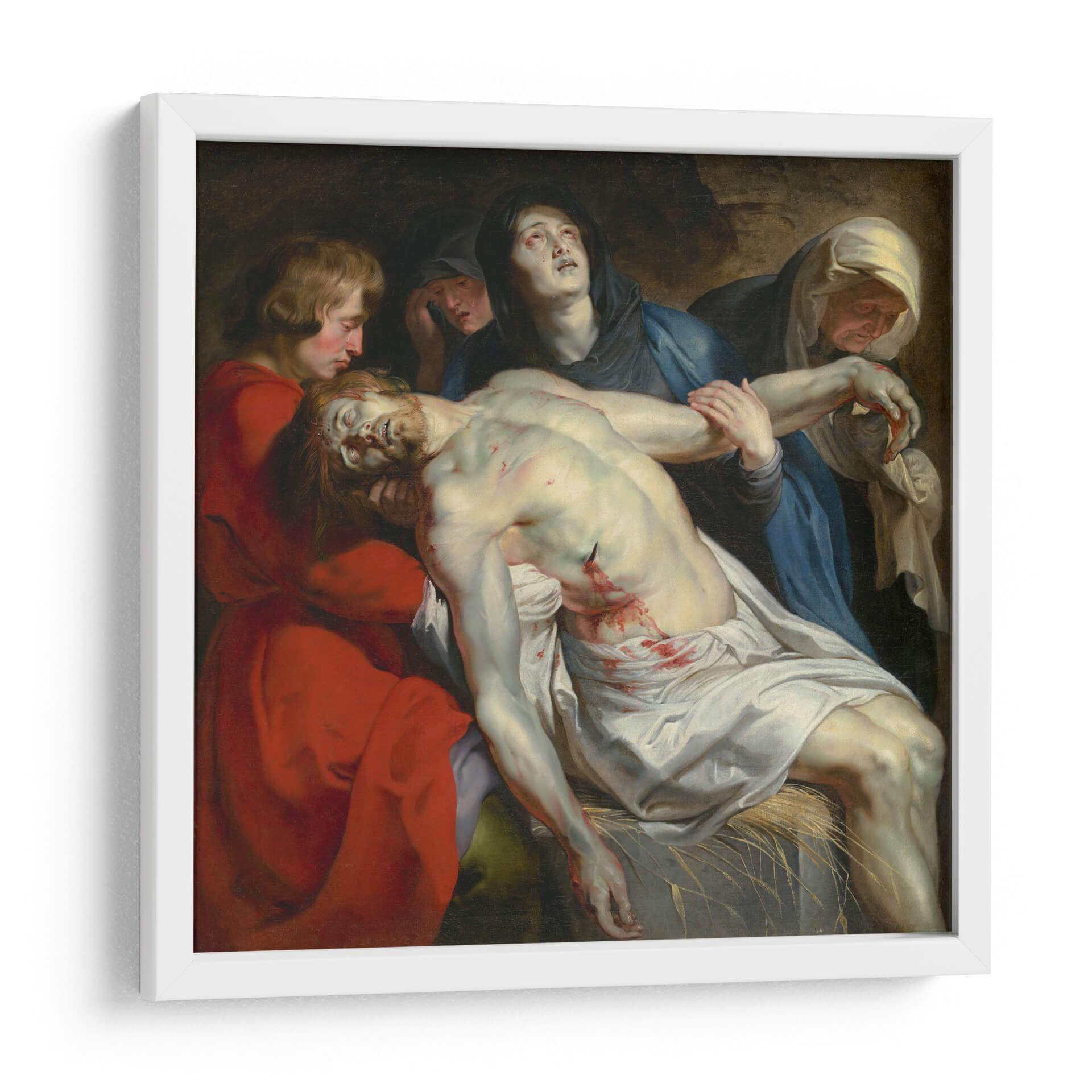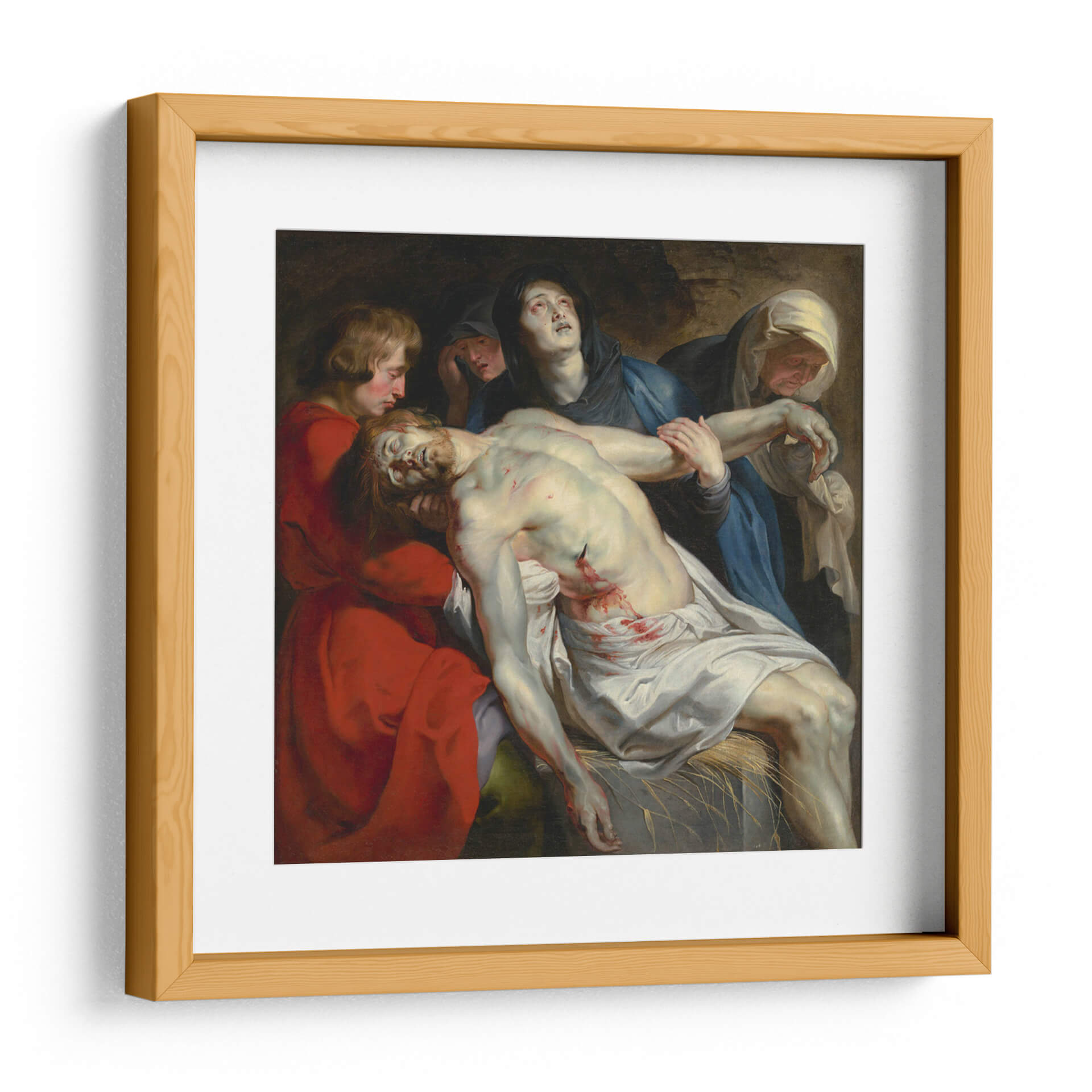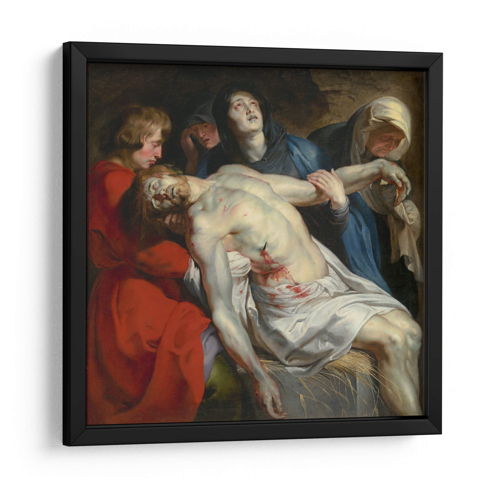 Sumérgete en la profunda emotividad y el arte barroco con este cuadro decorativo 'El entierro' de Peter Paul Rubens. La obra captura con maestría el momento culminante de dolor y devoción, presentando la figura de Cristo descendido de la cruz, sostenido por sus seguidores con una ternura palpable. La intensa paleta de colores, dominada por rojos vibrantes, azules profundos y tonos terrosos, crea una atmósfera de solemnidad y tragedia, acentuada por el juego de luces y sombras que modela las figuras con un dramatismo característico del Barroco. La composición, centrada en la expresividad de los rostros y la tensión de los cuerpos, invita a la reflexión sobre temas universales como la fe, el sacrificio y la compasión. Este cuadro decorativo es una pieza de arte clásico que aportará profundidad y carácter a cualquier espacio, ideal para salones, estudios o lugares de recogimiento donde se valore la historia del arte y la expresión emocional intensa. Una reproducción fiel de una obra maestra que trasciende el tiempo y el espacio para enriquecer tu decoración.