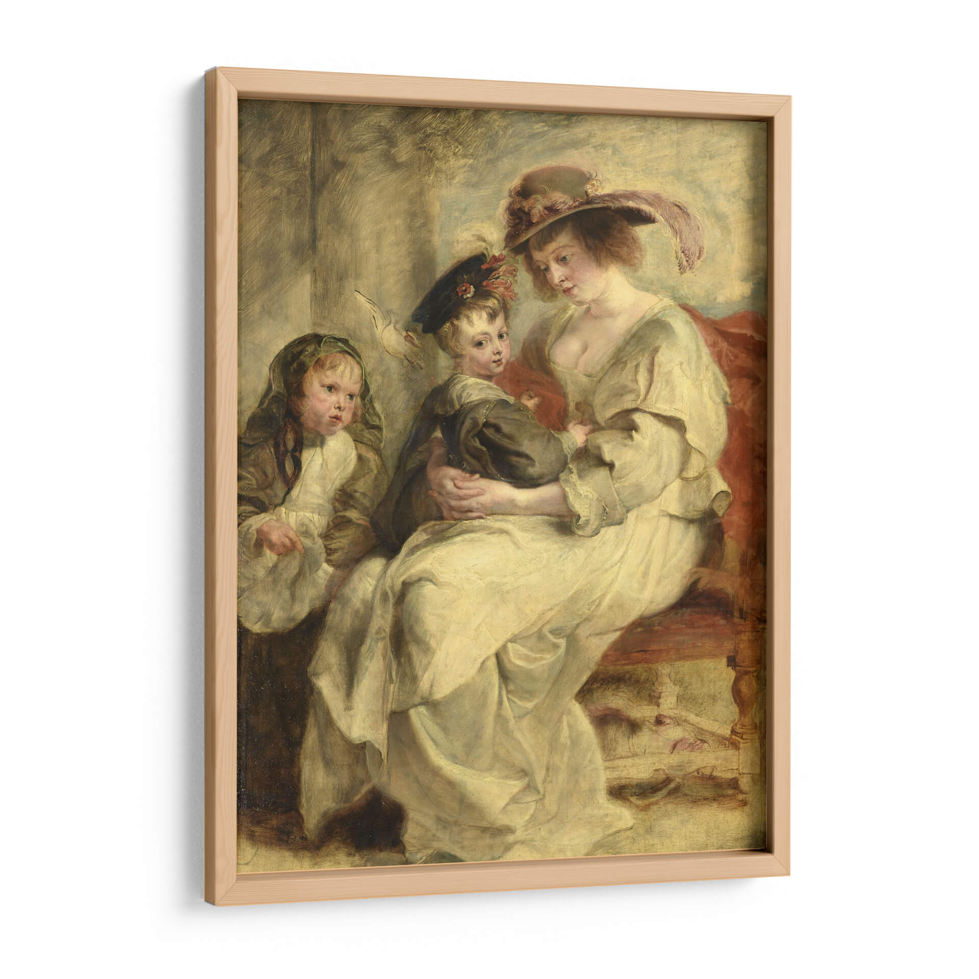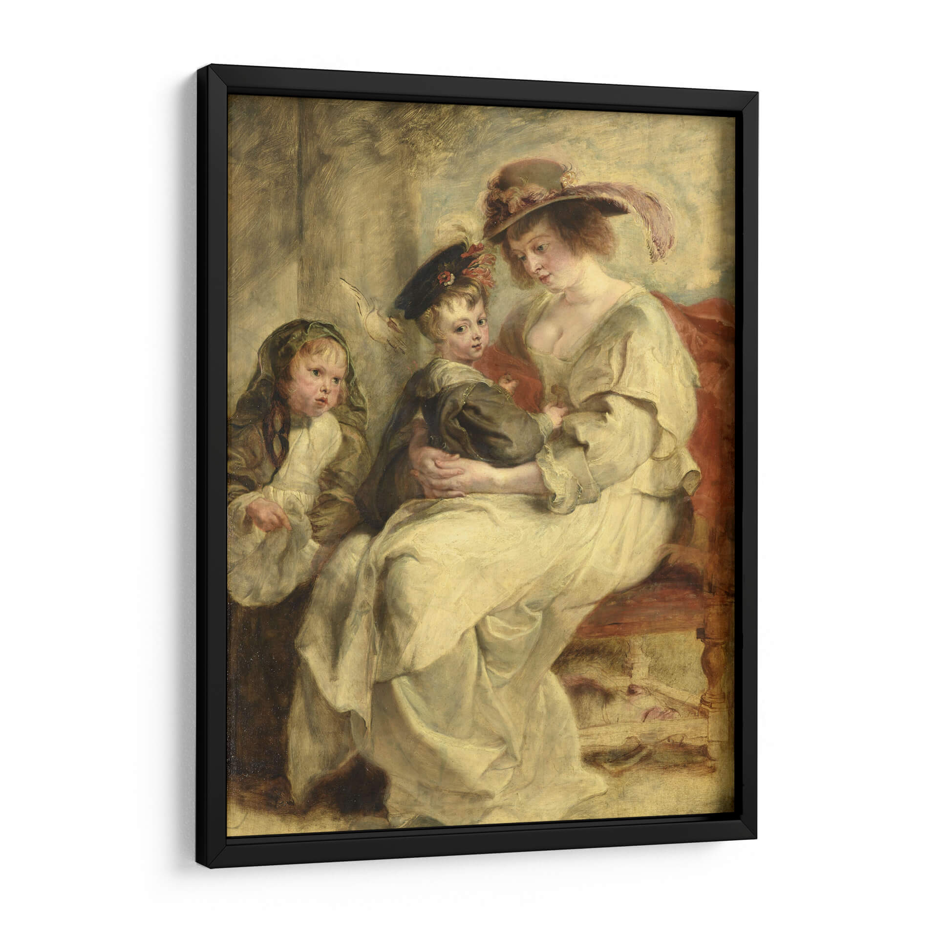 Sumérgete en la calidez y el encanto de "Helena Fourment con dos de sus hijos", una obra maestra de Peter Paul Rubens, ahora disponible como un exquisito cuadro decorativo. Esta pieza evoca un ambiente tierno y familiar, capturando un momento íntimo entre una madre y sus pequeños. La paleta de colores, dominada por tonos suaves y cálidos, crea una atmósfera acogedora y serena, perfecta para cualquier espacio que busque un toque de elegancia clásica y emotividad. La composición, fluida y natural, destaca la dulzura de las figuras y la delicadeza de sus vestimentas, invitando a la contemplación. El estilo barroco, característico de Rubens, se manifiesta en la riqueza de los detalles y la expresividad de los rostros, aportando profundidad y carácter a la obra. Este cuadro decorativo es ideal para añadir un punto focal de ternura y sofisticación a tu sala de estar, dormitorio o incluso a un estudio, transformando cualquier ambiente en un rincón de belleza atemporal. Descubre la maestría de Rubens y lleva a tu hogar una pieza que inspira conexión y confort.