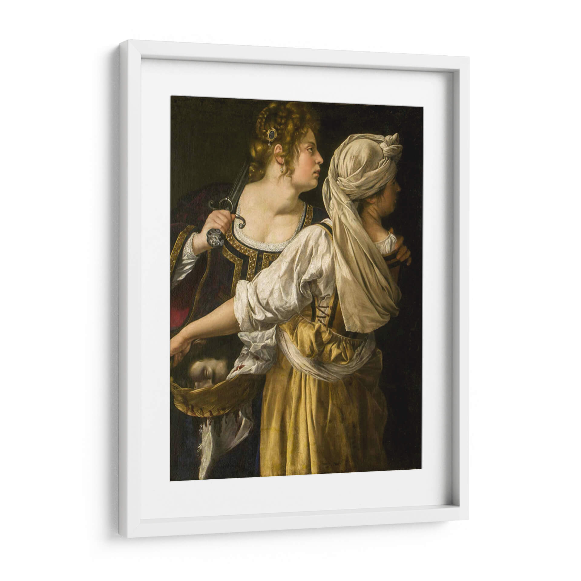 Sumérgete en la intensidad dramática de "Judit y su doncella" de Artemisia Gentileschi, una obra maestra del barroco que captura un momento de poder y audacia. Este cuadro decorativo representa la icónica escena bíblica con una fuerza visual impactante, destacando la determinación de Judit mientras su sirvienta la asiste. La rica paleta de colores, dominada por profundos tonos terrosos y contrastes de luz y sombra, crea una atmósfera de tensión y valentía que atrae la mirada. La composición, con las figuras centradas y la mirada fija en un punto invisible, genera un aura de misterio y propósito. Ideal para espacios que buscan un toque de historia, drama y empoderamiento femenino, este cuadro es perfecto para salas de estar, estudios o comedores, añadiendo profundidad y conversación a tu decoración. La maestría de Gentileschi en el manejo del claroscuro y la expresión de las emociones hace de esta pieza un elemento decorativo excepcional que trasciende el tiempo y añade un carácter inconfundible a cualquier ambiente.