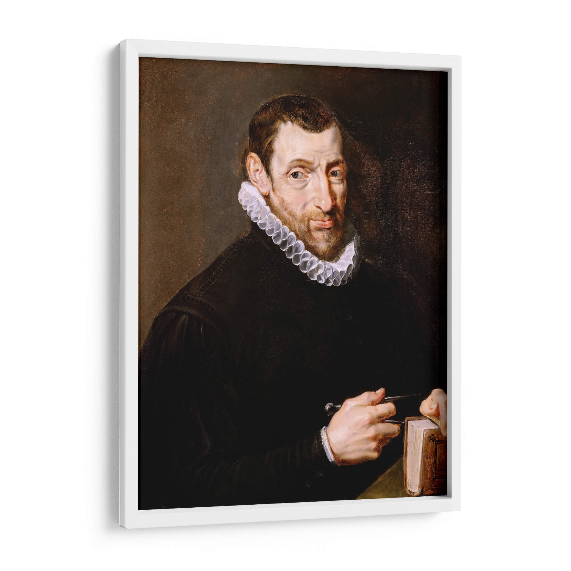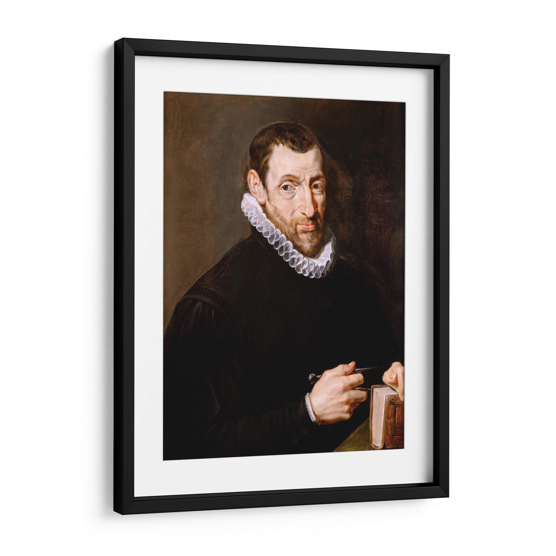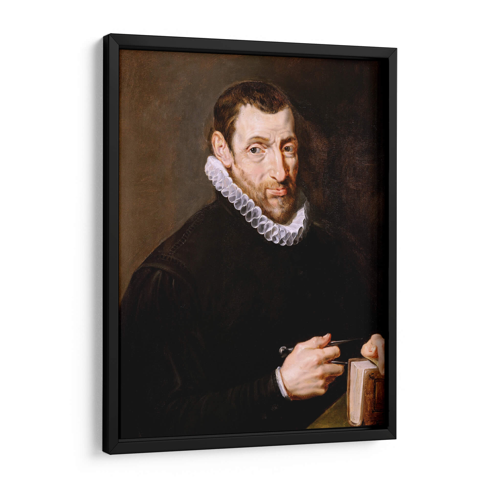 Sumérgete en la maestría del Barroco con este cautivador retrato de Christoffel Plantin, obra del genio Peter Paul Rubens. Esta pieza, cargada de historia y carácter, presenta a un hombre de mirada penetrante y expresión serena, ataviado con una indumentaria de época que realza su estatus. La sutil interacción de luces y sombras, característica del tenebrismo, modela el rostro y el atuendo, creando una atmósfera de profundidad y realismo. Los tonos cálidos y terrosos predominan en el fondo, contrastando elegantemente con el blanco nítido del cuello plisado y la sobriedad del vestuario oscuro. La composición se centra en el sujeto, invitando a una conexión íntima con su figura, mientras que los detalles como las manos que sostienen un instrumento y reposan sobre un libro, añaden capas de narrativa y simbolismo. Este cuadro decorativo es una invitación a poseer un fragmento de la historia del arte, ideal para añadir un toque de distinción, cultura y un aire de erudición a tu estudio, biblioteca u oficina. Su presencia transformará cualquier espacio en una galería personal, evocando conversaciones y admiración. Una elección perfecta para amantes del arte clásico y la decoración con carácter.