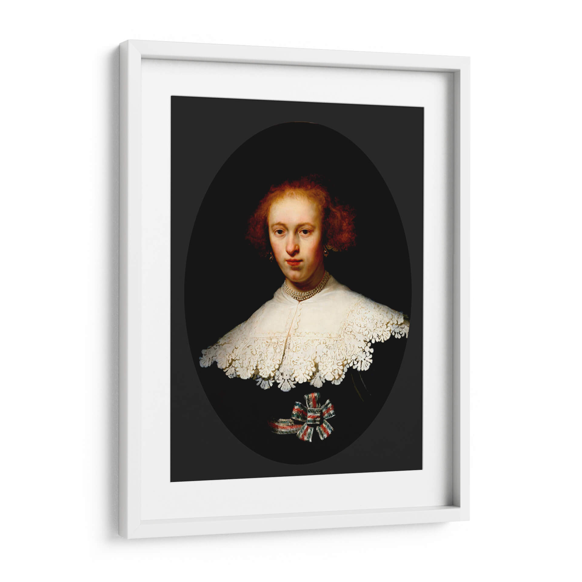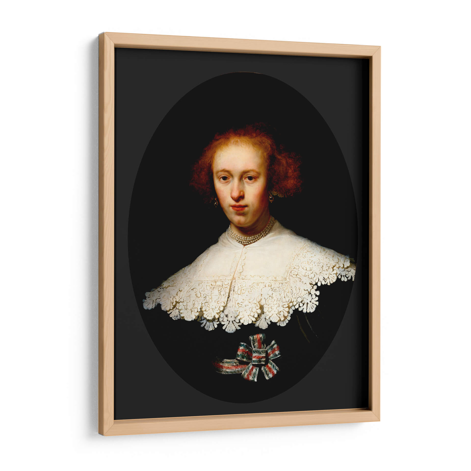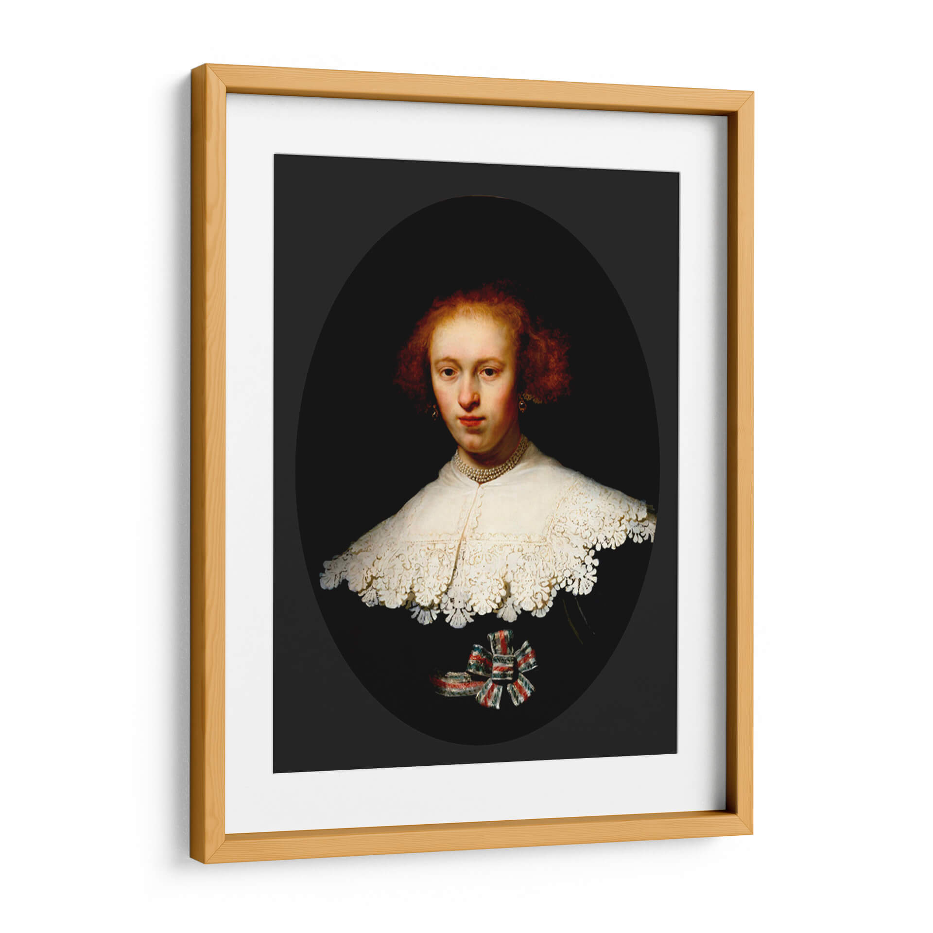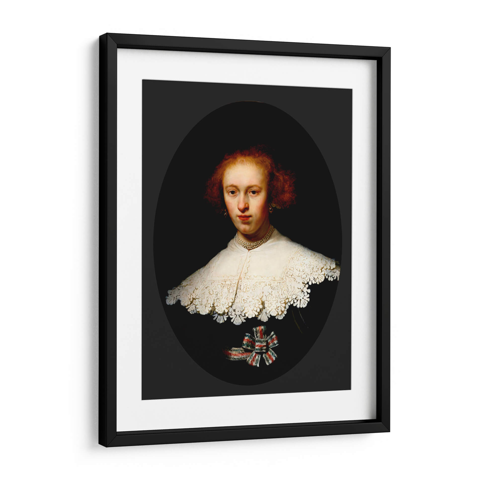 Sumérgete en la elegancia atemporal con este cautivador retrato de una joven mujer, una obra maestra que evoca la profundidad y la maestría de Rembrandt. La artista captura con una delicadeza excepcional la mirada penetrante y la expresión serena de la retratada, invitando a la reflexión y al asombro. La paleta de colores, dominada por tonos cálidos y contrastes sutiles, junto con el detallado trabajo en encajes y joyas, crea una atmósfera de sofisticación y misterio. Este cuadro decorativo es una pieza central ideal para cualquier espacio que busque un toque de clasicismo refinado, añadiendo carácter y un aire de historia al hogar u oficina. Su composición ovalada, enmarcada por un fondo oscuro, dirige la atención a la figura central, haciendo que cada detalle sea apreciado. Transforma tu entorno en una galería personal con esta representación clásica que sigue cautivando siglos después, una adición perfecta para amantes del arte y decoradores que buscan piezas con alma y narración.