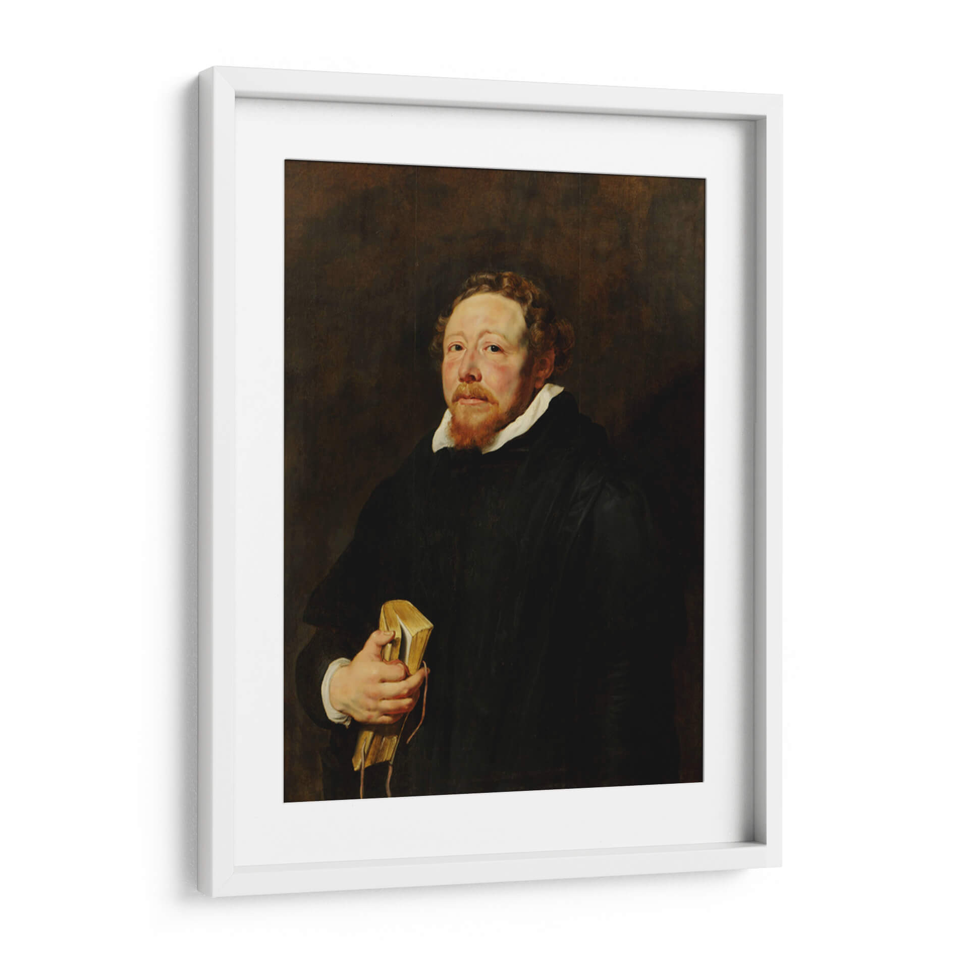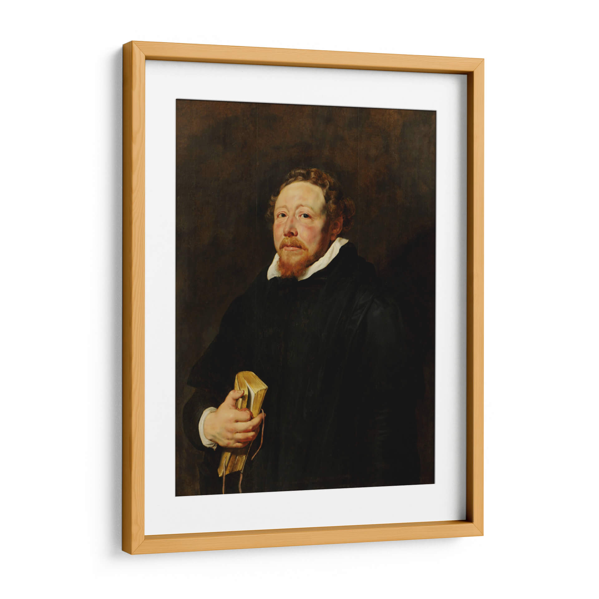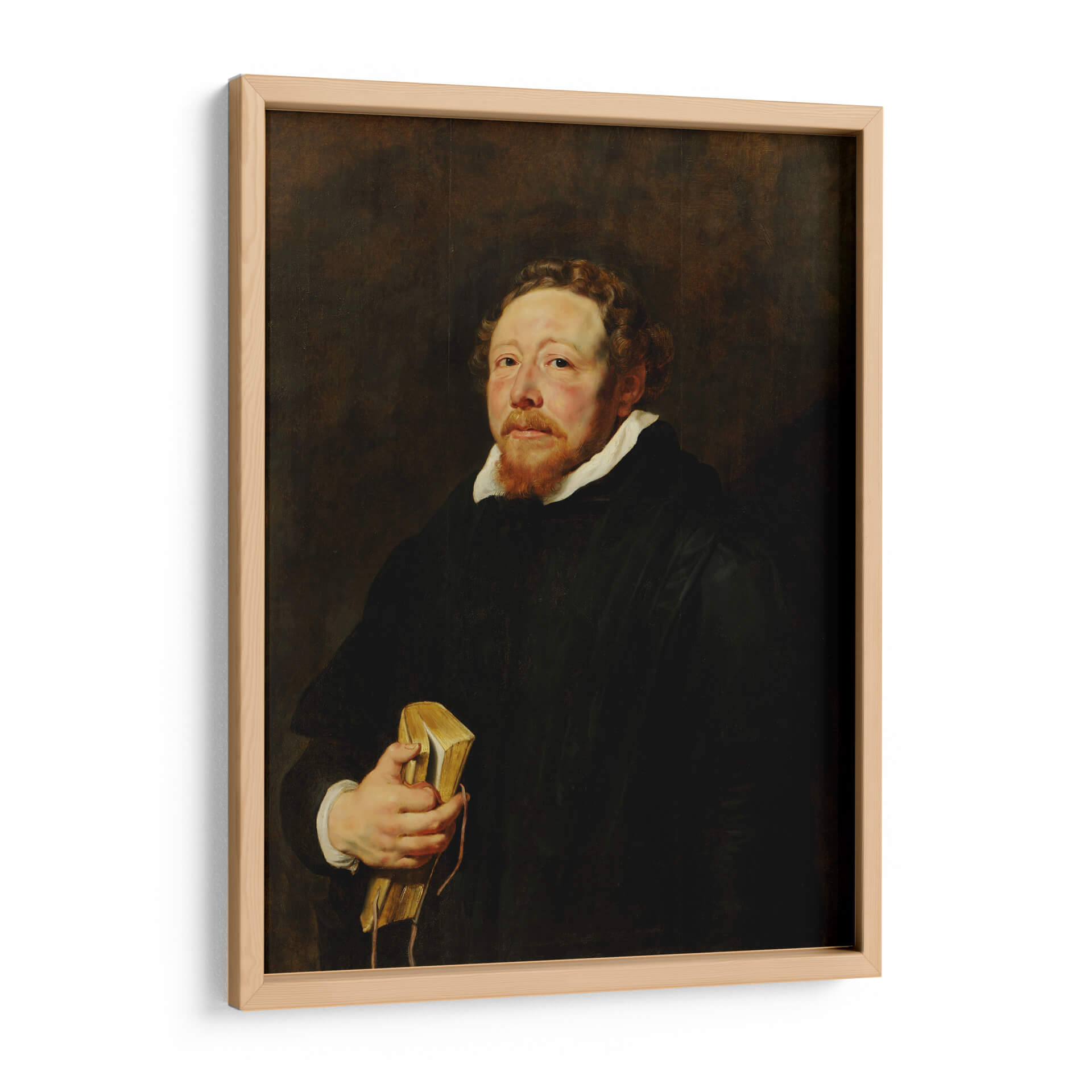 Sumérgete en la profundidad y el carácter de este cautivador retrato, una obra maestra que evoca la sabiduría y la presencia de su sujeto. El cuadro decorativo "Retrato del padre Jan Neyen", inspirado en el estilo inconfundible de Peter Paul Rubens, presenta a un hombre de mirada penetrante y barba rojiza, ataviado con una sobria vestimenta oscura y un cuello blanco que contrasta sutilmente. Sostiene un libro dorado, símbolo de conocimiento y reflexión, que añade un toque de color y profundidad a la composición. La paleta de colores se centra en tonos oscuros y terrosos, con sutiles luces que resaltan el rostro y las manos, creando una atmósfera de solemnidad y autoridad. La técnica pictórica, rica en detalles y texturas, captura la esencia del Barroco, ofreciendo un realismo que invita a la contemplación. Este retrato clásico es ideal para añadir un toque de distinción y cultura a cualquier espacio, ya sea un estudio, una biblioteca o una sala de estar. Su presencia imponente pero serena lo convierte en un punto focal que dialoga con la historia y el arte, aportando elegancia atemporal a tu decoración.