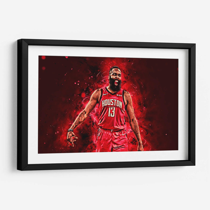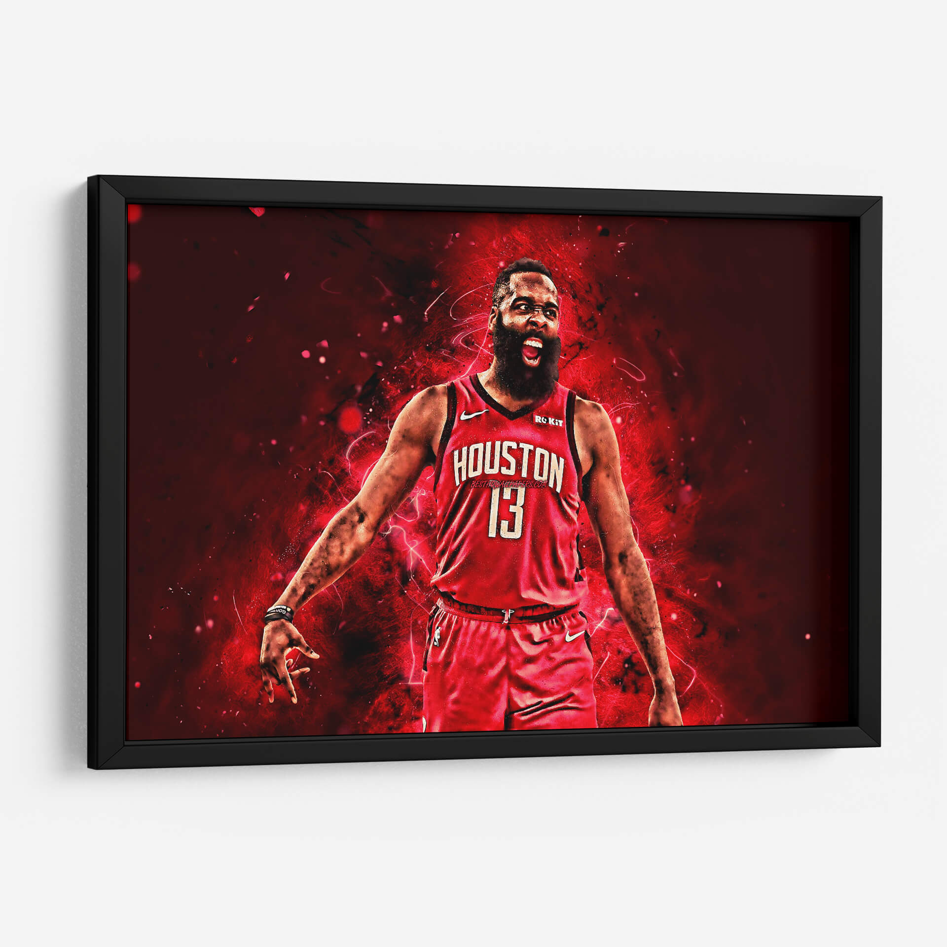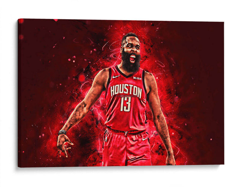 Sumérgete en la intensidad del baloncesto con este vibrante cuadro decorativo que captura la esencia de James Harden en su icónica etapa con los Rockets de Houston. La obra de arte destaca al jugador en medio de una explosión de energía roja y negra, con un aura dinámica que envuelve su figura. Los tonos profundos de rojo y las texturas granuladas crean una atmósfera de poder y determinación, perfecta para cualquier aficionado al deporte o para aquellos que buscan una pieza de arte con un fuerte impacto visual. Este cuadro es ideal para inyectar vitalidad y un espíritu competitivo en salas de estar, oficinas o cualquier espacio que necesite un toque de inspiración deportiva. La composición dinámica y la paleta de colores audaces hacen de esta pieza un punto focal inconfundible, evocando la pasión y el dinamismo del juego. Añade esta obra maestra a tu colección y siente la energía de la cancha en tu hogar.