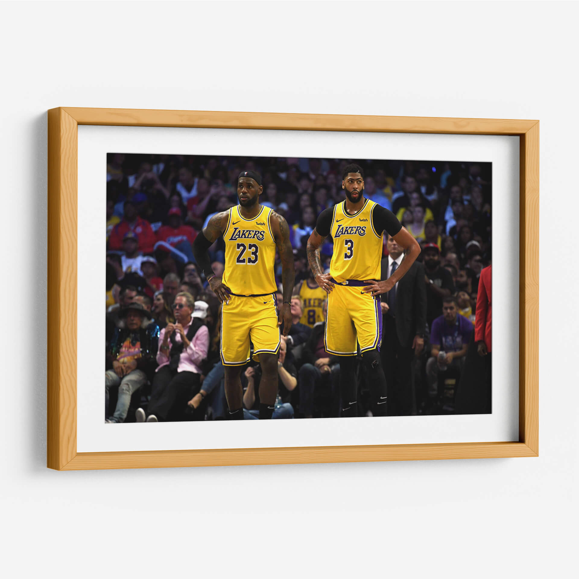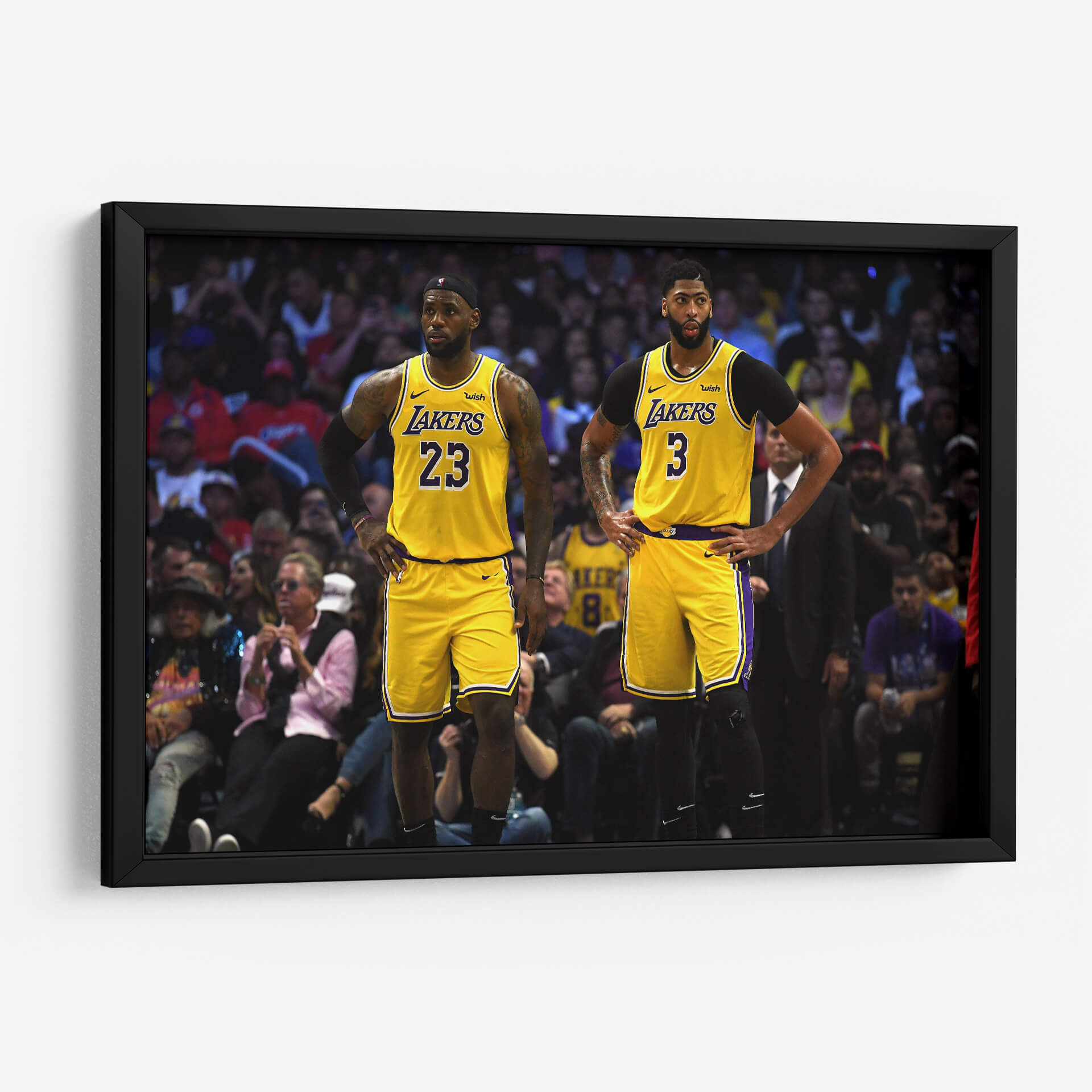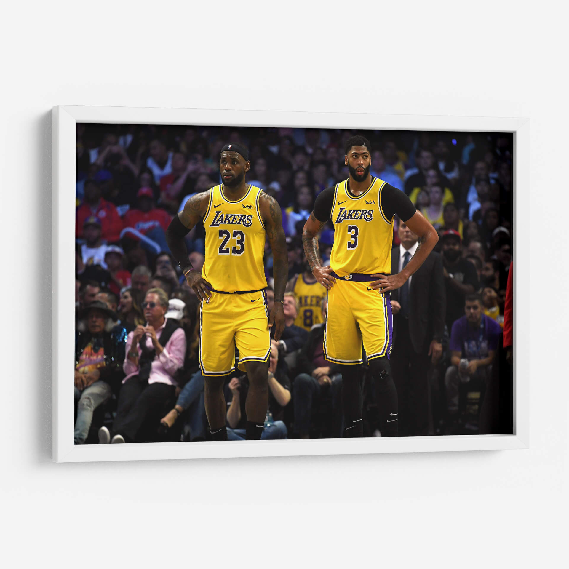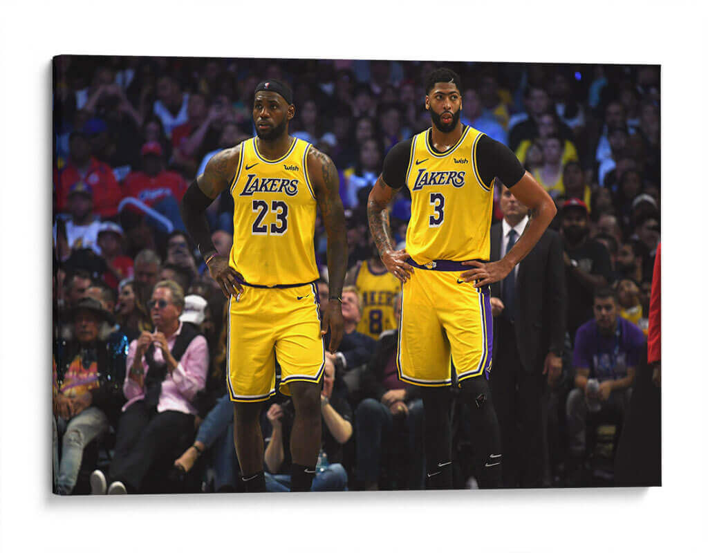 Captura la energía y la pasión del baloncesto con este vibrante cuadro decorativo. La obra, titulada "Lebron playing", presenta a dos icónicas figuras del deporte, LeBron James y Anthony Davis, en plena acción o en un momento de concentración. Los colores vivos, dominados por el amarillo y el púrpura de los Lakers, crean una atmósfera dinámica y emocionante, perfecta para los aficionados que desean añadir un toque deportivo y motivacional a sus espacios. La composición, centrada en los jugadores y con el público de fondo, transmite la intensidad de un partido y la camaradería del equipo. Este cuadro es ideal para cualquier habitación, desde una sala de estar o un estudio hasta un gimnasio en casa, añadiendo un punto focal lleno de historia y deportividad. Su estilo fotorealista, capturando la esencia de estos atletas, lo convierte en una pieza de arte contemporáneo que inspira grandeza y determinación. Transforma tu pared con este homenaje al deporte rey.