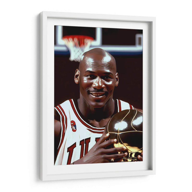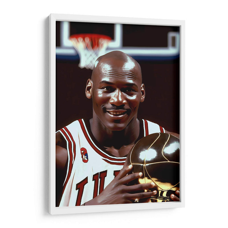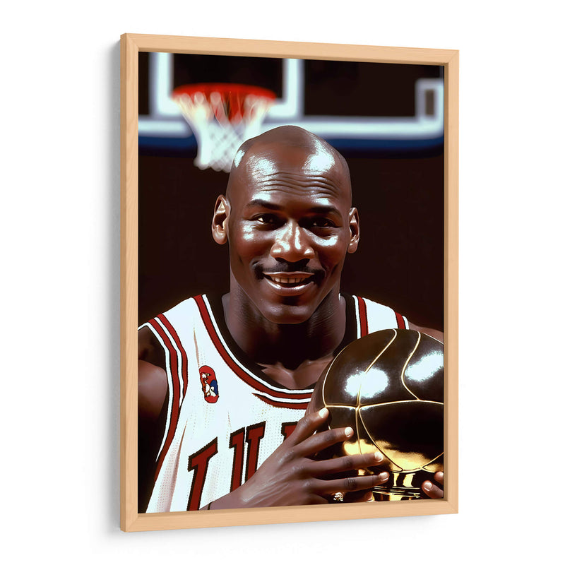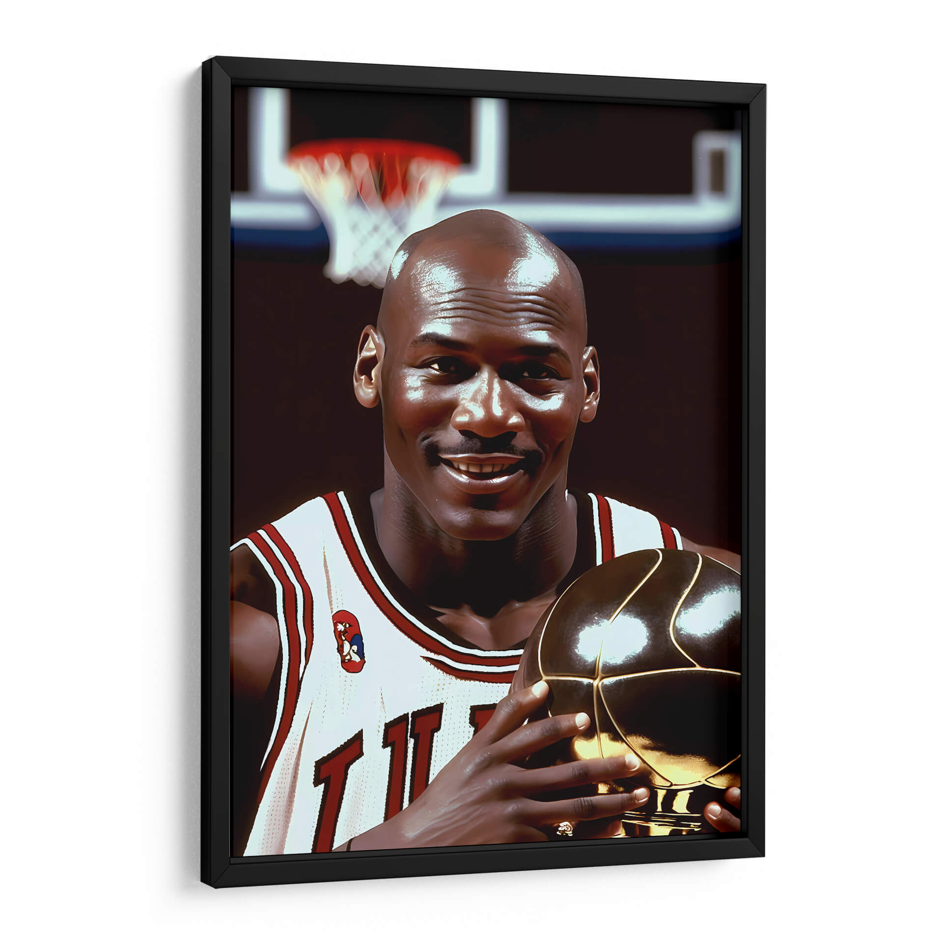 Celebra la grandeza con este impactante cuadro decorativo que captura la esencia de la leyenda del baloncesto, Michael Jordan, sosteniendo un trofeo dorado. La obra, titulada "The GOAT con trofeo", presenta un retrato íntimo del icónico atleta, con su mirada penetrante y una sonrisa confiada que evoca éxito y determinación. La paleta de colores, dominada por tonos cálidos y oscuros, crea una atmósfera de prestigio y logro, resaltada por los brillos del trofeo y la textura de su icónica equipación. El estilo fotorrealista, con un enfoque en la expresión del deportista, añade una dimensión de autenticidad y admiración. Este cuadro es perfecto para inspirar y motivar en cualquier espacio, ya sea una oficina, una sala de estar o un rincón de coleccionista. Su presencia añade un toque de historia deportiva y elegancia atemporal, convirtiéndose en un punto focal que celebra la perseverancia y la victoria. Ideal para fanáticos del baloncesto y amantes del arte deportivo, esta pieza decorativa es una oda al máximo rendimiento y al legado imborrable de uno de los más grandes de todos los tiempos. Añade un toque de campeón a tu hogar o negocio con esta obra maestra.