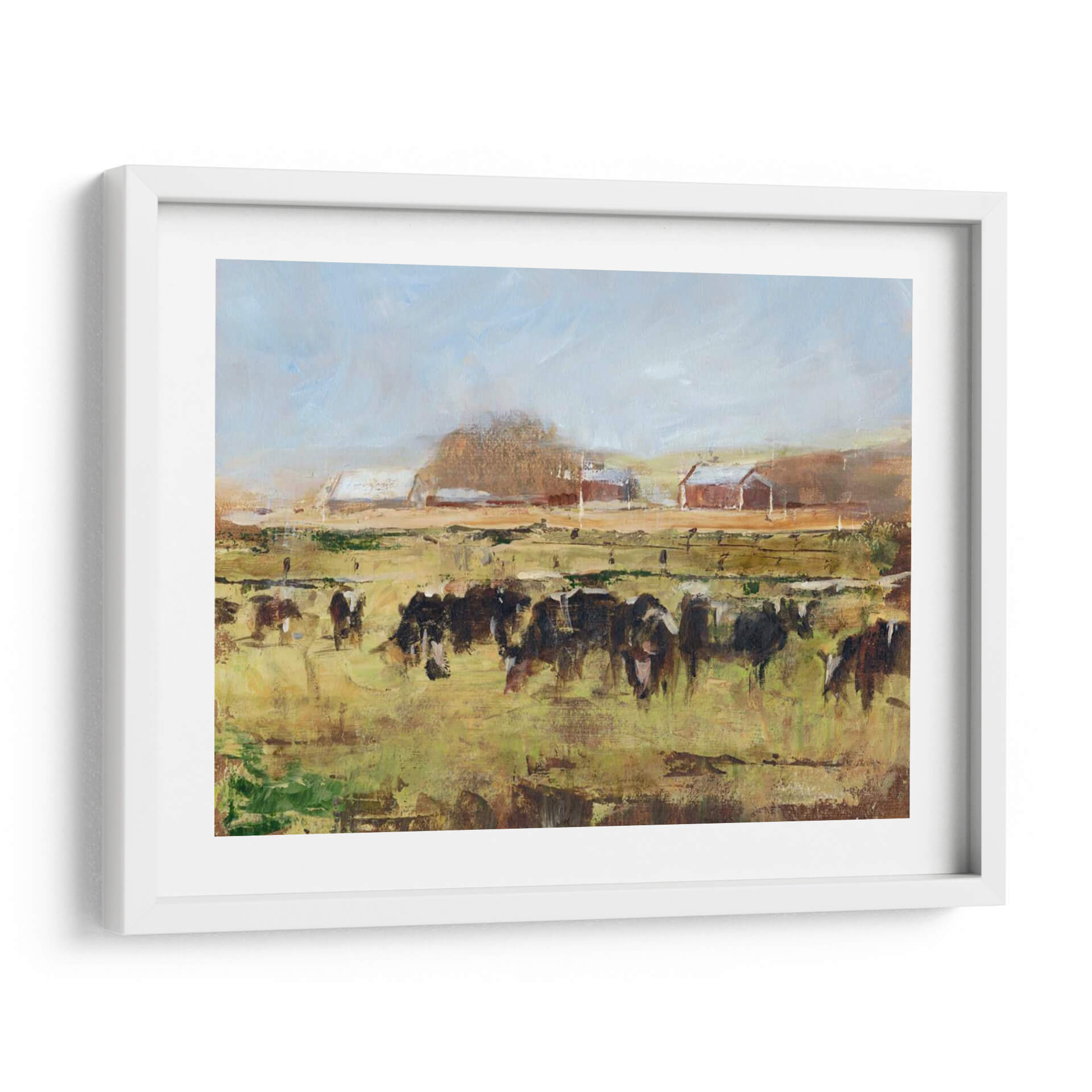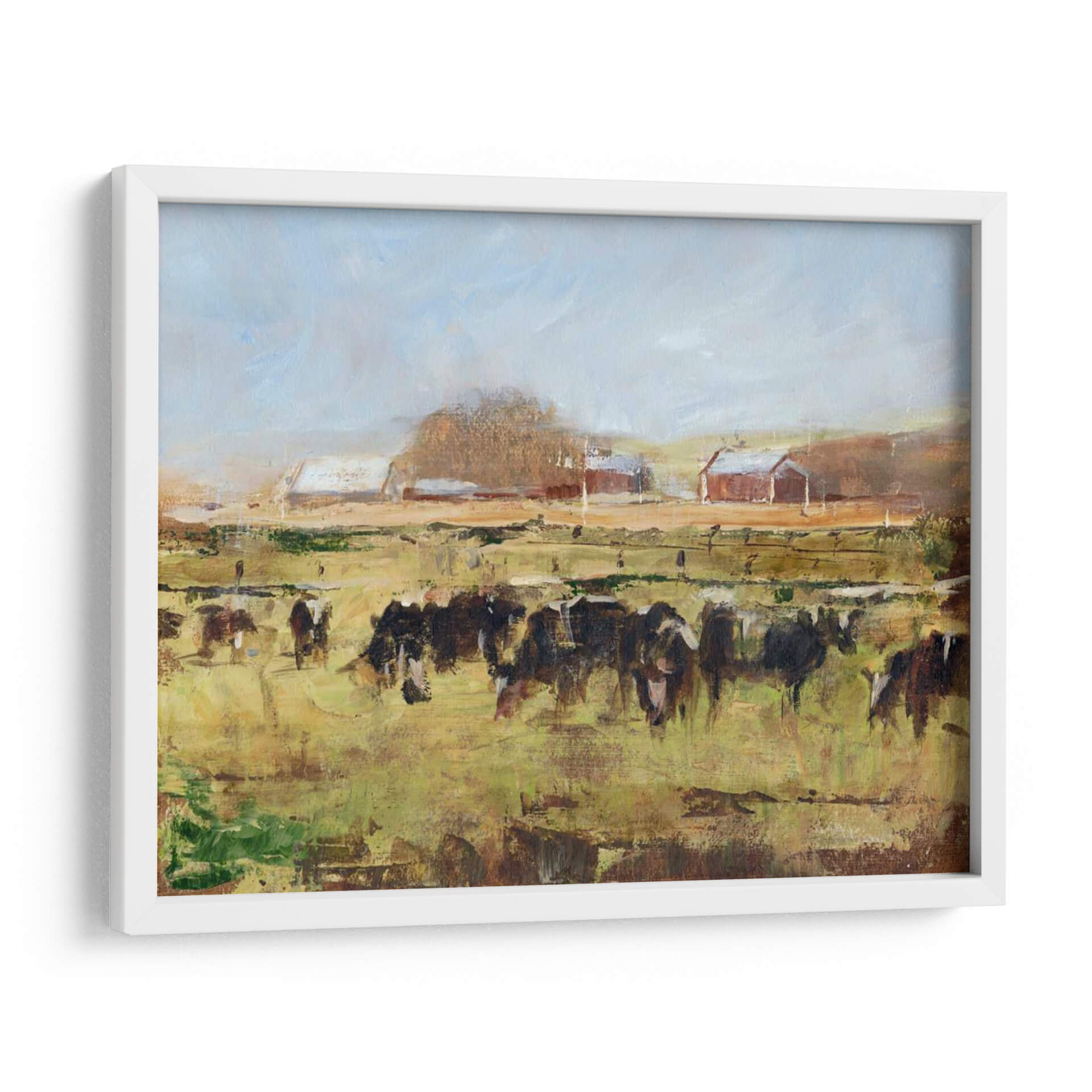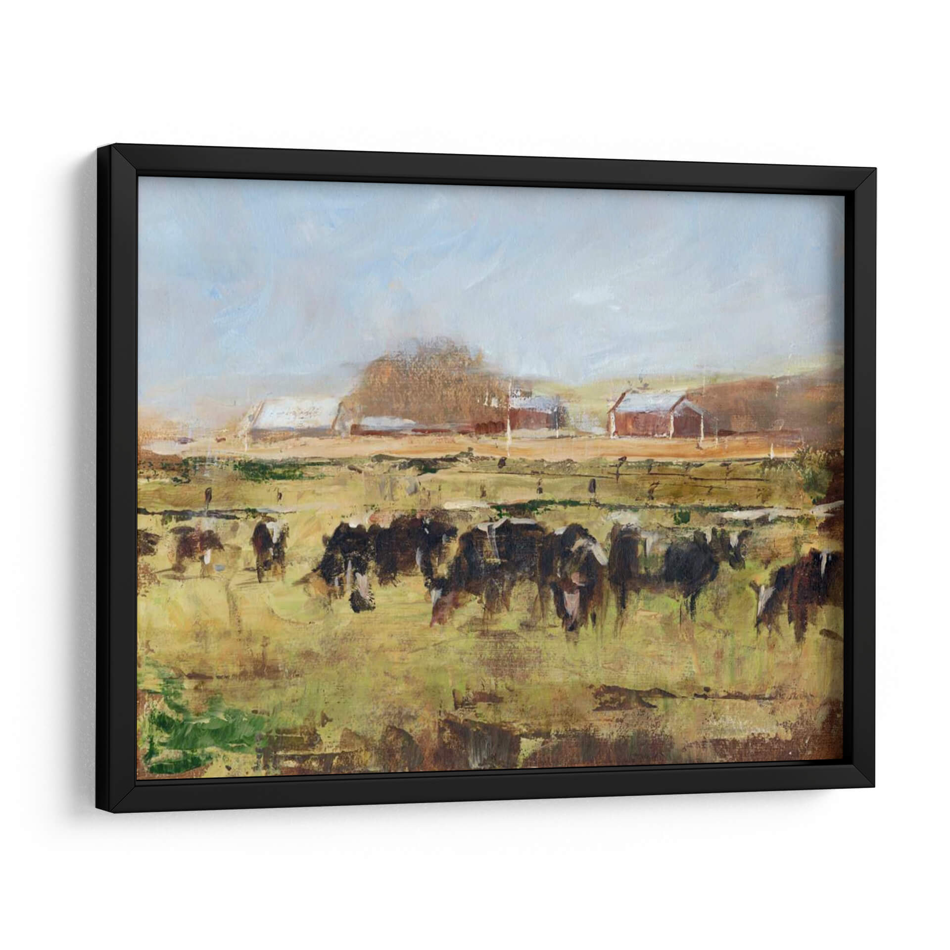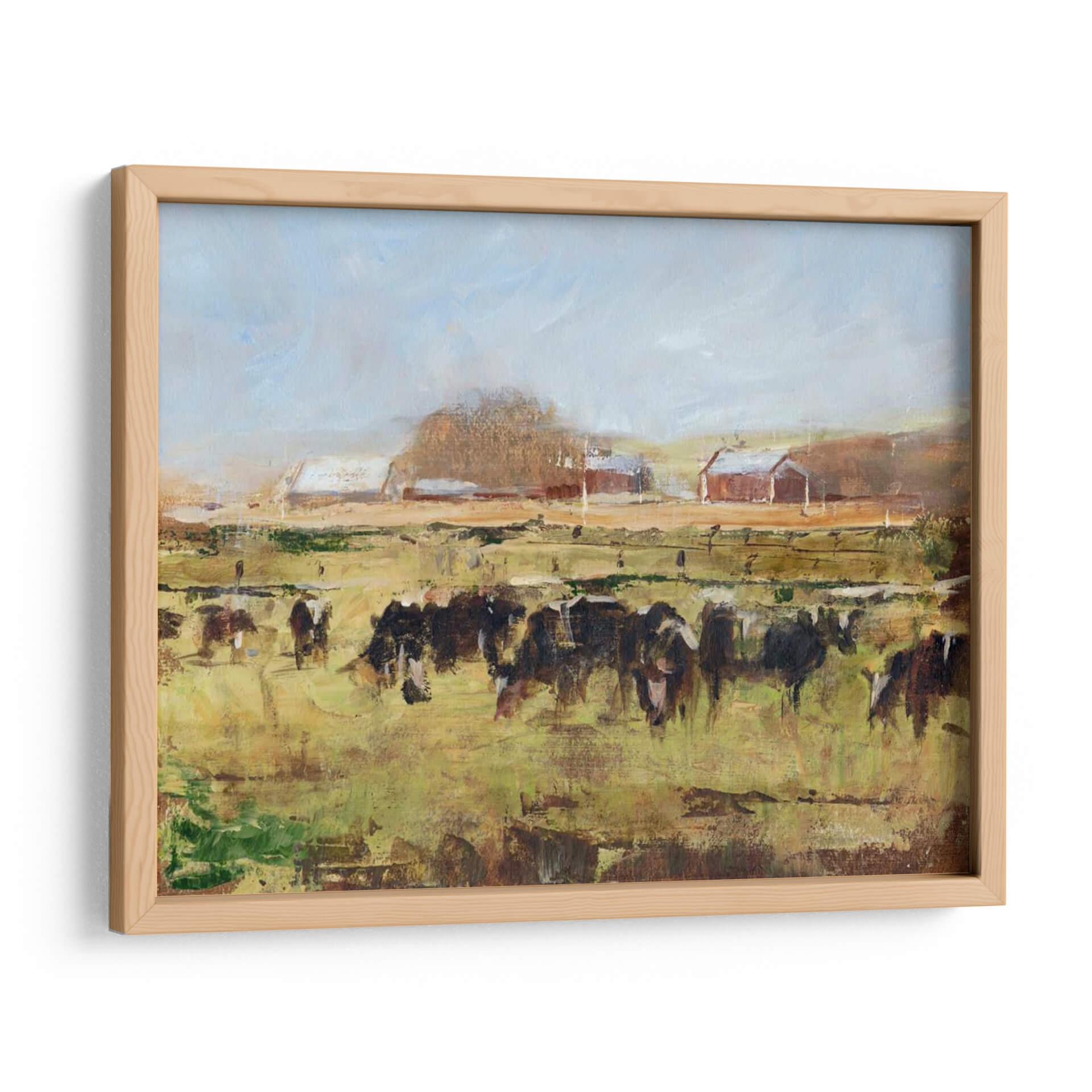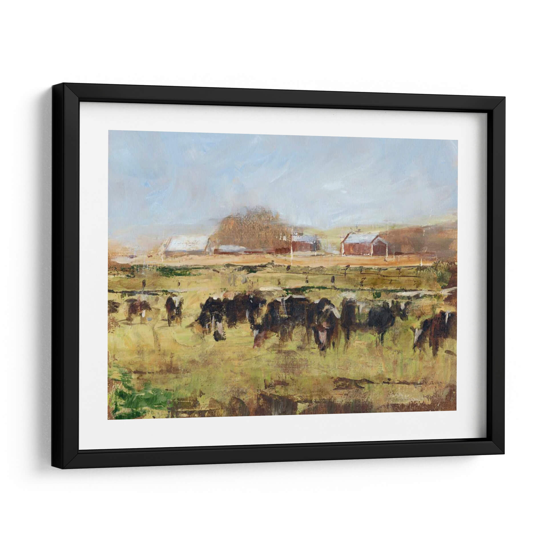Sumérgete en la serenidad del campo con "A Pasto Ii", una cautivadora obra de arte de Ethan Harper. Este cuadro decorativo captura la esencia de una vida rural tranquila, con una manada de vacas pastando apaciblemente en un prado bañado por la luz del día. La paleta de colores, dominada por tonos tierra, verdes profundos y un cielo azul claro y etéreo, crea una atmósfera de calma y naturalidad. El estilo impresionista de Harper se manifiesta en pinceladas sueltas y expresivas que dan vida a la escena, sugiriendo el movimiento del viento entre la hierba y la textura rústica de los graneros al fondo. Esta pieza es perfecta para aquellos que buscan infundir sus espacios con una sensación de paz y conexión con la naturaleza. Ideal para salones, comedores o incluso oficinas, "A Pasto Ii" se convierte en un punto focal que invita a la contemplación y al relax, transformando cualquier habitación en un refugio de tranquilidad. Añade un toque de autenticidad y belleza campestre a tu hogar con este cuadro decorativo que evoca la simplicidad y el encanto de la vida rural.
