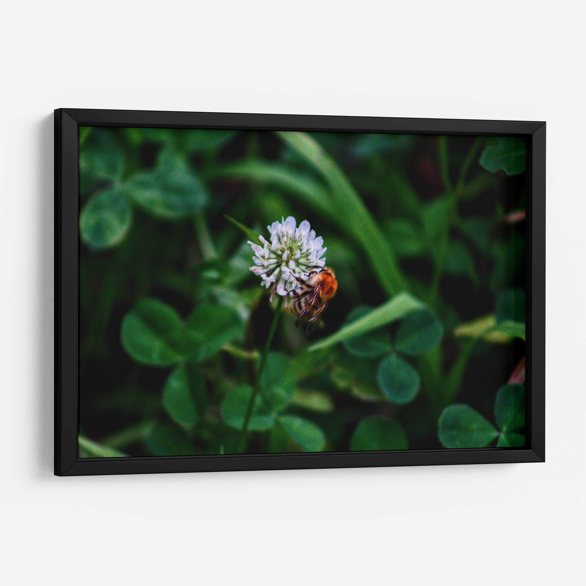 Sumérgete en la delicadeza de la naturaleza con "Abeja Gorda", una obra de arte que captura un instante efímero en el reino de las flores y los insectos. Este cuadro decorativo presenta una abeja robusta posada sobre una flor de trébol blanca y delicada, rodeada de un exuberante follaje verde. La fotografía resalta el pelaje detallado de la abeja y la suavidad de los pétalos, creando una imagen íntima y serena. Los tonos verdes profundos del fondo contrastan bellamente con los cálidos tonos anaranjados y amarillos del insecto, y el blanco puro de la flor, aportando profundidad y vitalidad a la composición. La luz suave y difusa baña la escena, generando una atmósfera de tranquilidad y asombro ante la vida diminuta. Este cuadro es perfecto para añadir un toque de conexión con la naturaleza a cualquier espacio, ya sea un salón moderno, una acogedora sala de estar, una oficina inspiradora o un dormitorio sereno. Su realismo y el enfoque en un momento cotidiano pero fascinante lo convierten en una pieza de conversación que evoca la belleza de lo simple y la importancia de estos pequeños polinizadores. Decora tus paredes con esta obra que celebra la vida y la resiliencia del mundo natural, aportando una dosis de calma y color a tu hogar u oficina.