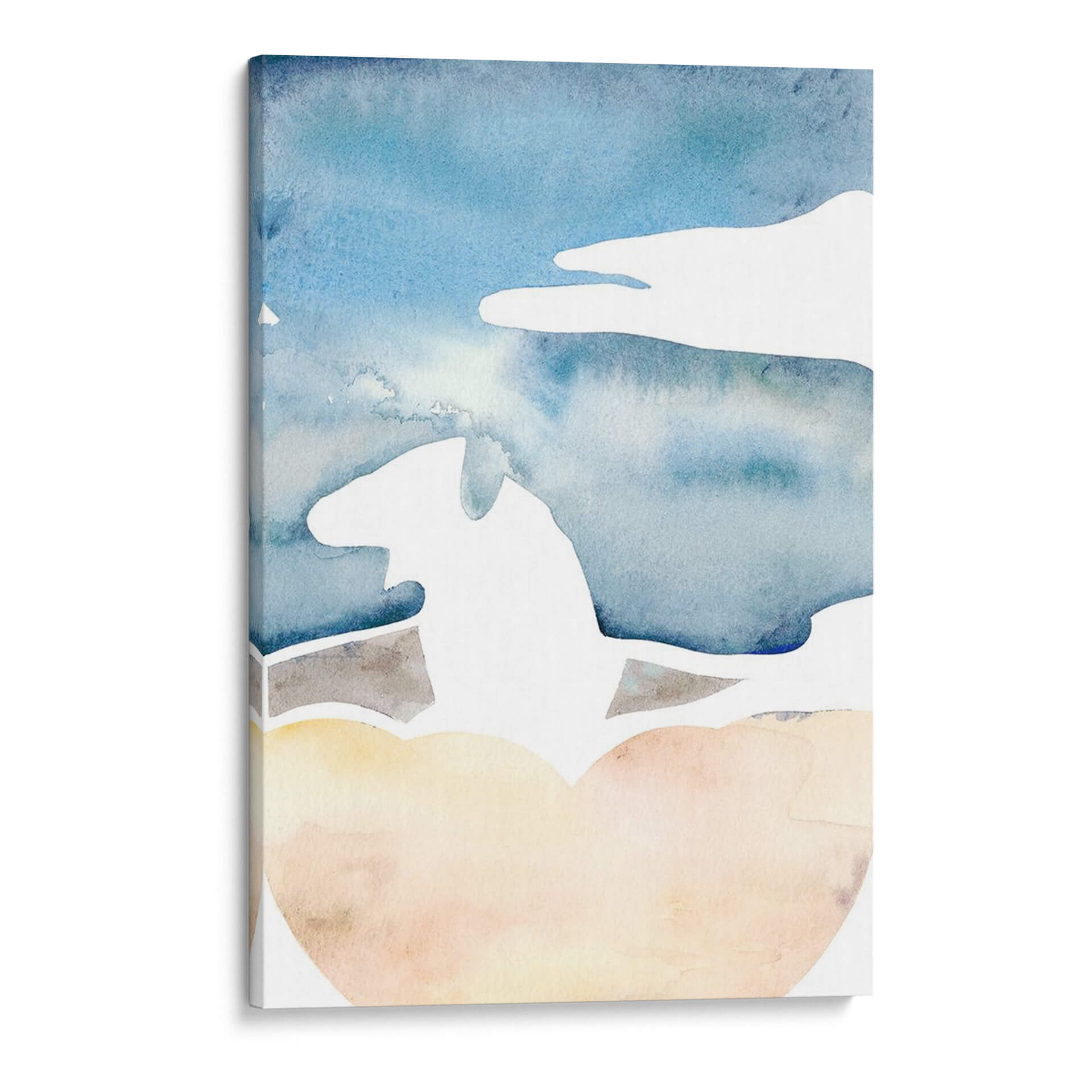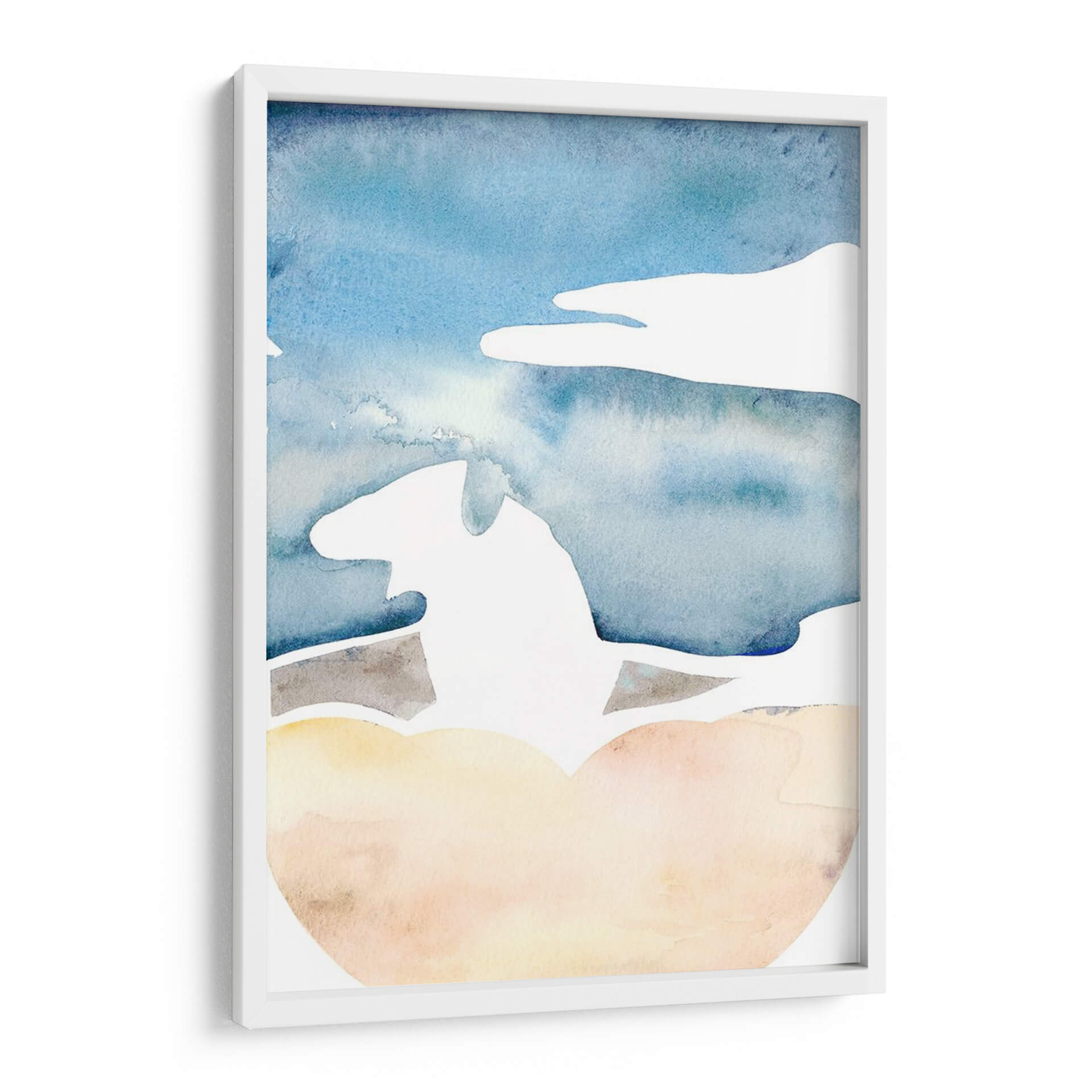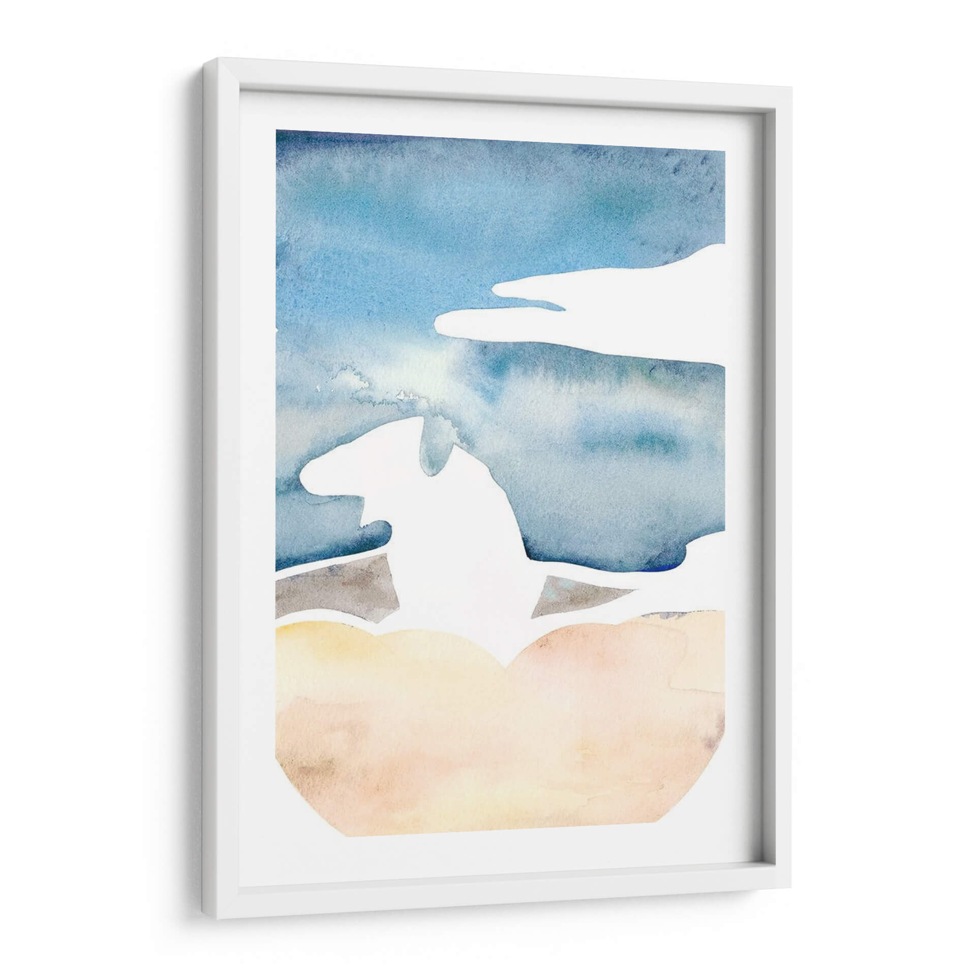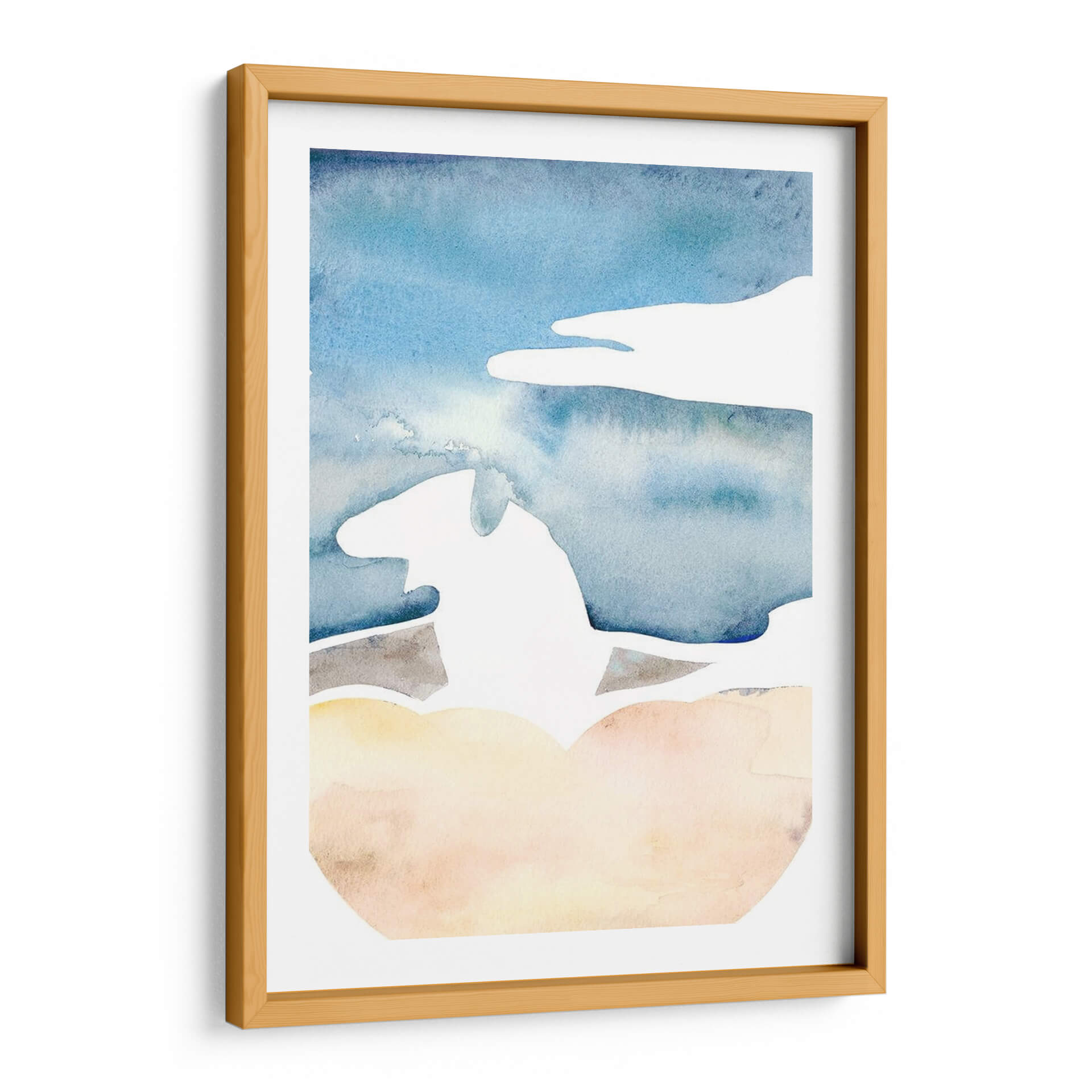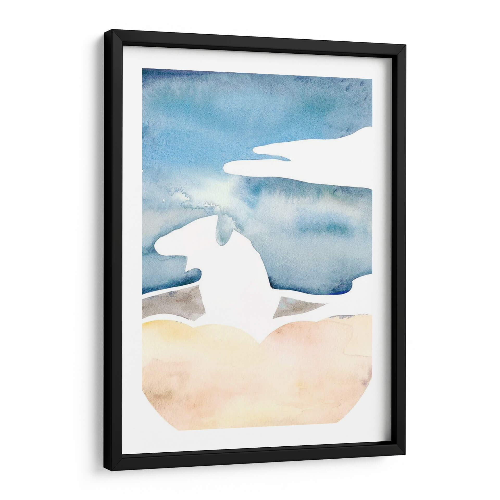 Sumérgete en la serena belleza de "Abstracción De Campo Traviesa I", una obra cautivadora de Natasha Chabot que redefine la decoración de interiores con su estilo etéreo y contemporáneo. Este cuadro decorativo presenta una delicada acuarela que evoca la tranquilidad de un paisaje soñado, donde formas abstractas en blanco puro contrastan suavemente con un fondo degradado de azules celestes y grises suaves. La paleta de colores, dominada por tonos azules profundos y sutiles toques de ocre y melocotón en la base, crea una atmósfera de calma y contemplación. La composición fluida y las pinceladas sueltas invitan a la meditación, haciendo de esta pieza una adición perfecta para cualquier espacio que busque un toque de serenidad y sofisticación. Ideal para salones, dormitorios o estudios, este lienzo abstracto es una invitación a la paz interior y al disfrute del arte sutil. Añade una dimensión de calma y elegancia a tu hogar con esta pieza única que inspira tranquilidad y una conexión con la naturaleza abstracta.