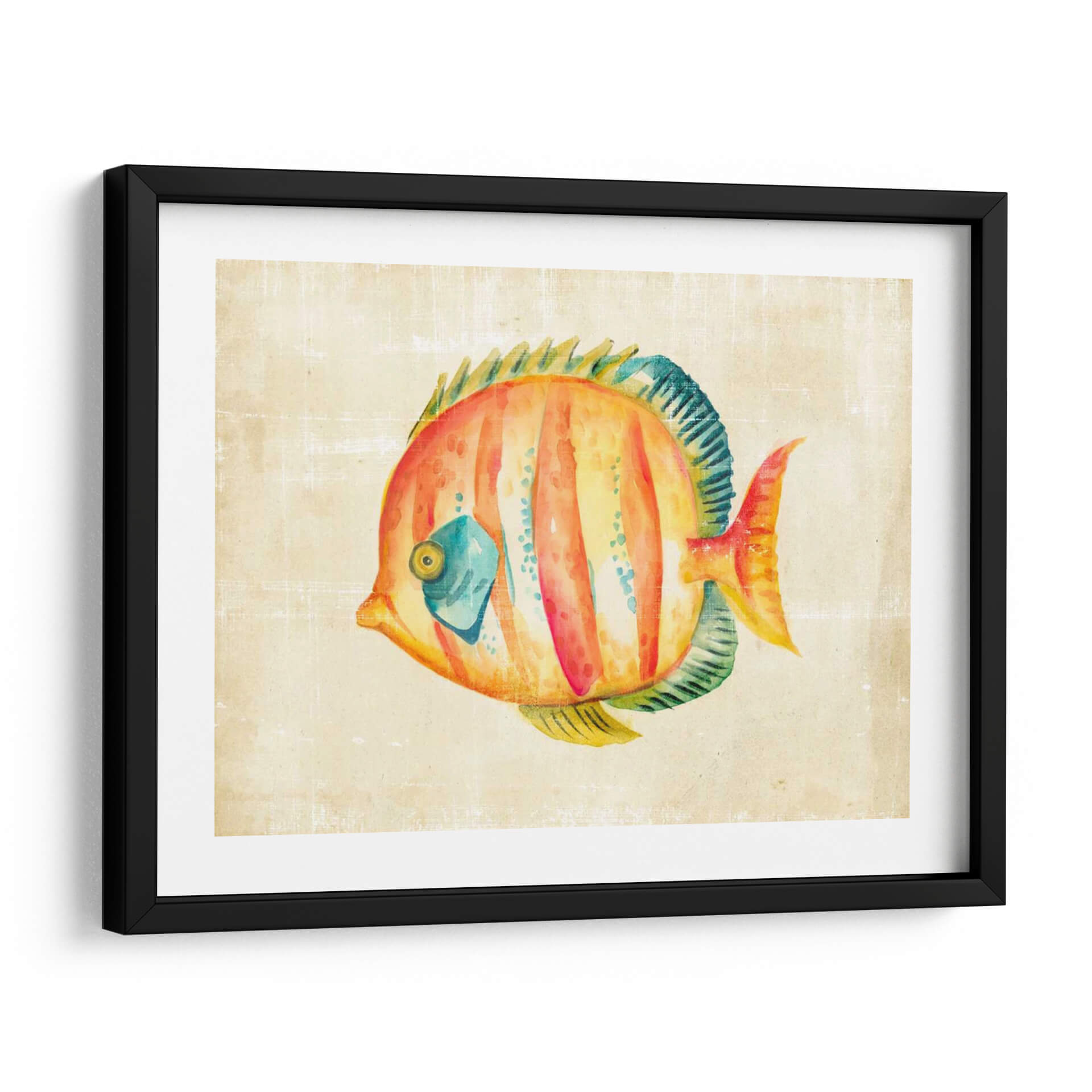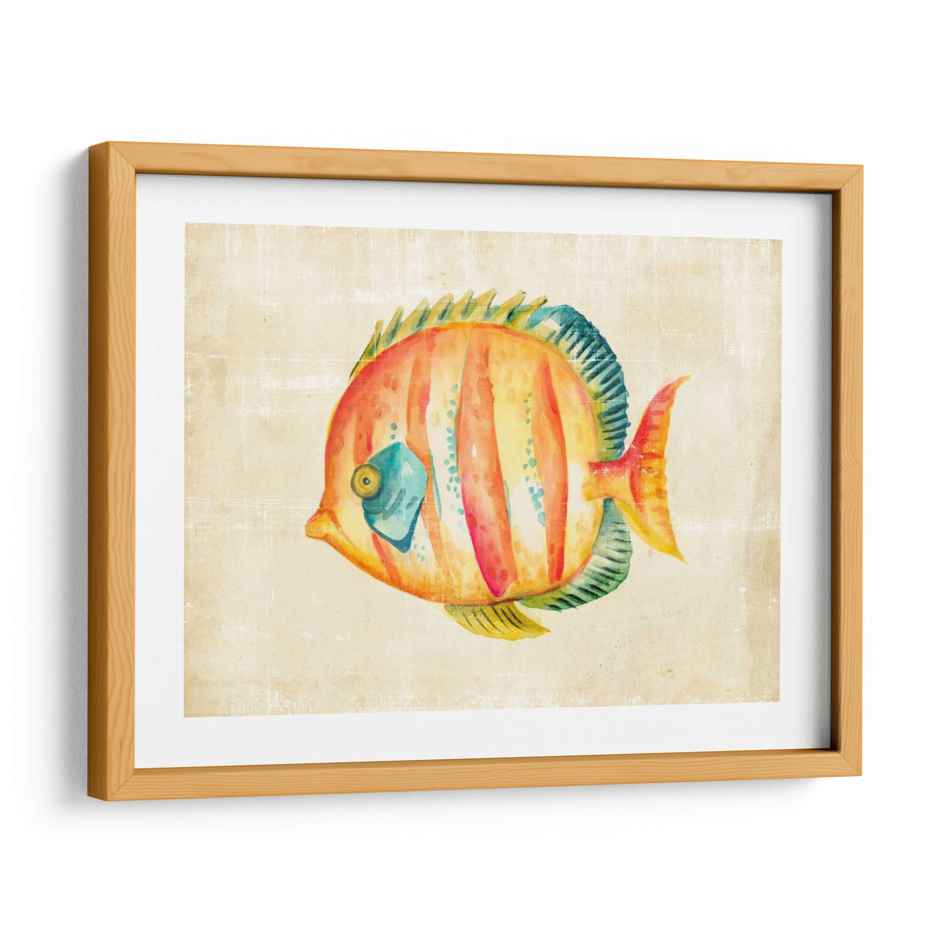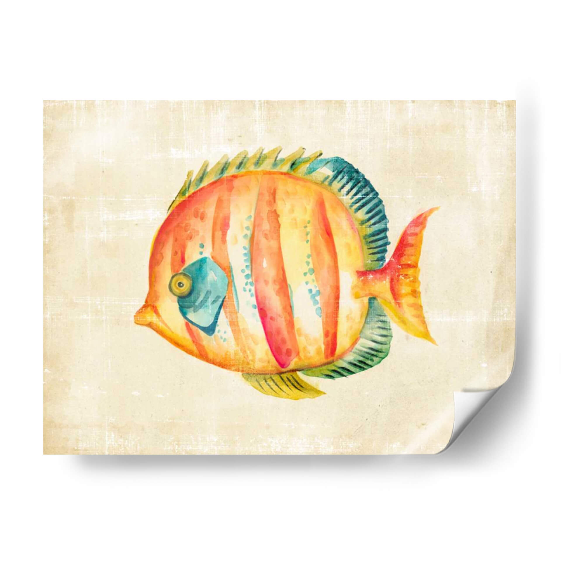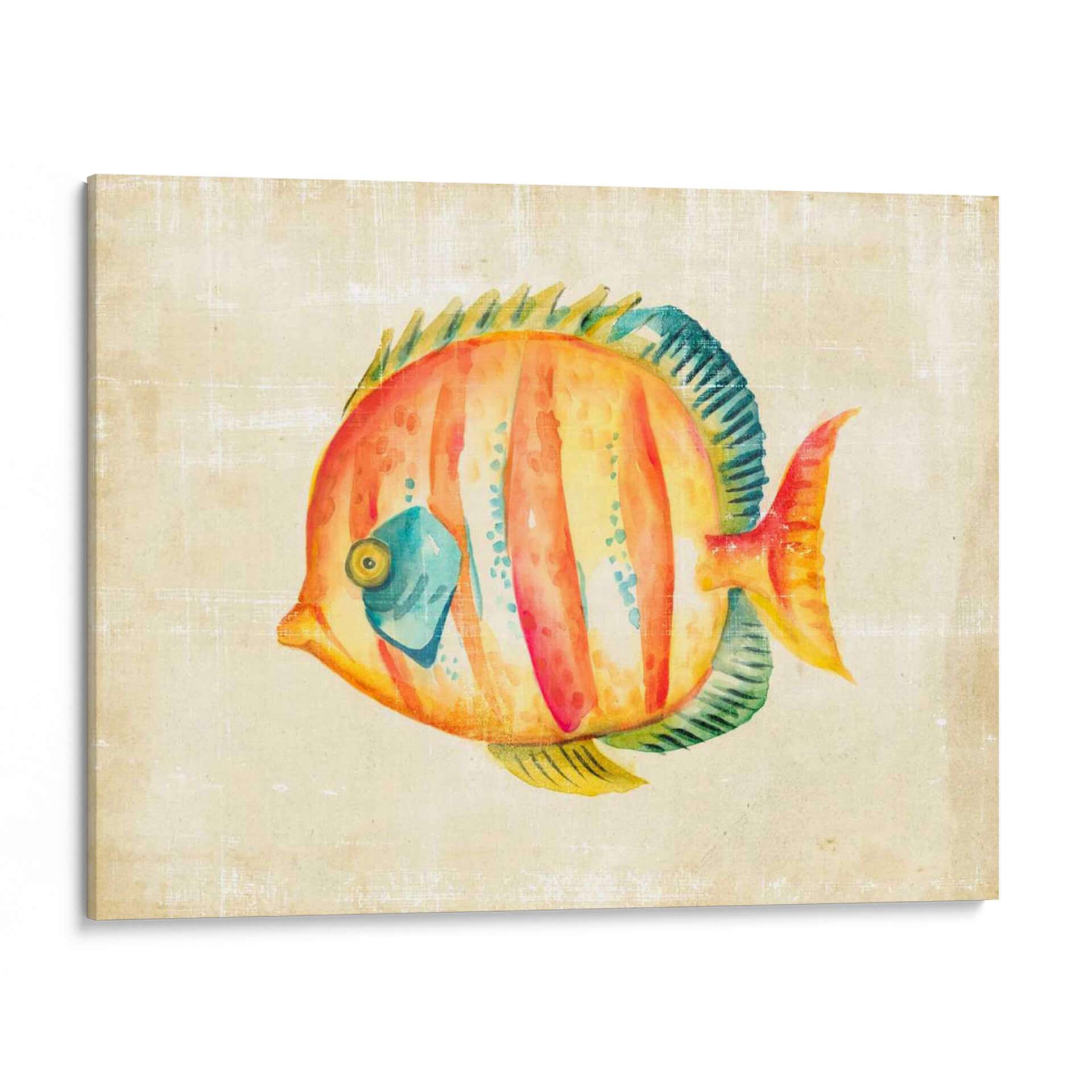 Sumérgete en la serenidad del océano con "Acuario Fish II", una obra de arte cautivadora de Chariklia Zarris. Este cuadro decorativo captura la vibrante belleza de un pez tropical, representado con una técnica que evoca la delicadeza de la acuarela, sobre un fondo texturizado que simula pergamino envejecido. Los tonos cálidos de naranja y amarillo dominan la figura central del pez, acentuados por sutiles toques de azul turquesa y verde en sus aletas y detalles, creando un contraste visual armonioso y llamativo. La composición se centra en la forma estilizada del pez, con líneas suaves y un ligero movimiento que insinúan su vida acuática. "Acuario Fish II" es más que una simple representación; es una invitación a la calma y a la contemplación, perfecta para añadir un toque de color y vida a tu sala de estar, dormitorio o incluso a un espacio de oficina que necesite un respiro visual. Ideal para amantes de la naturaleza marina, el arte costero o simplemente para quienes buscan una pieza que evoque alegría y tranquilidad. Integra este cuadro decorativo en tu hogar y deja que la magia del mundo submarino transforme tu ambiente.